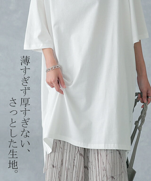 バーゲン 【メガT】 大きい Tシャツ レディース ■一部7月上旬入荷 カットソー チュニック 半袖 ビッグシルエット ビッグ ゆる ドロップショルダー 大きいサイズ Uネック 無地 ボックスT 白T ティーシャツ ロング スリット お尻が隠れる 二の腕カバー 黒 春 夏 HUG.U