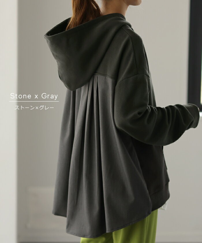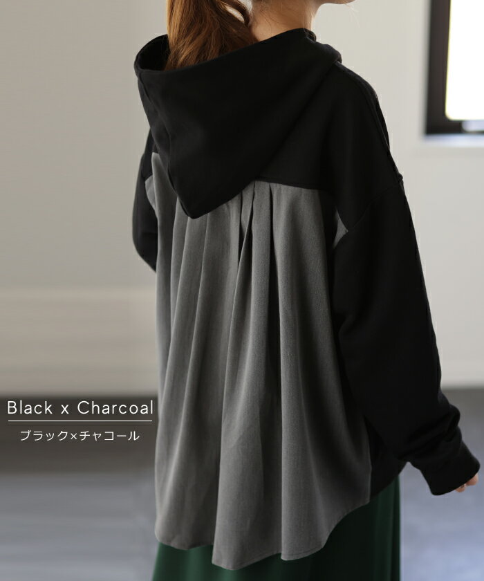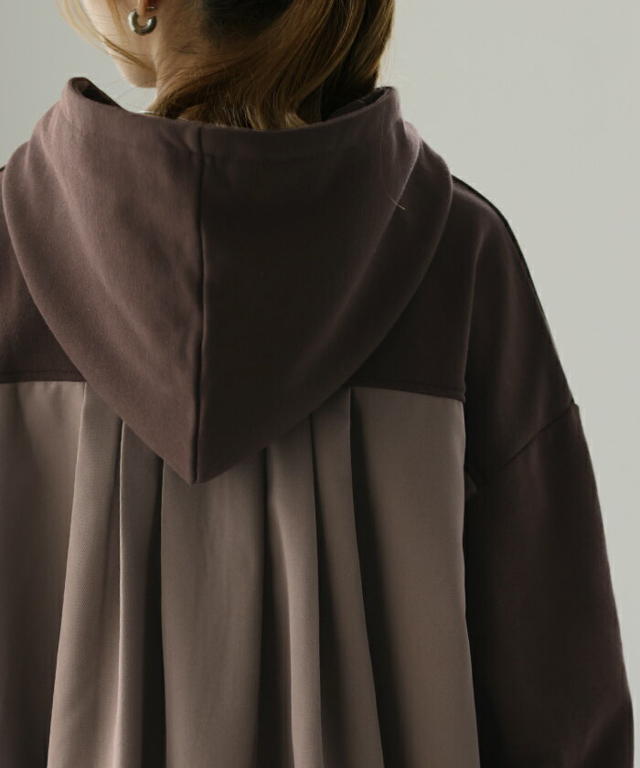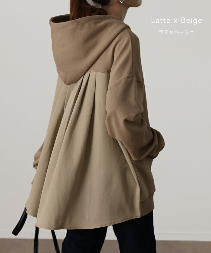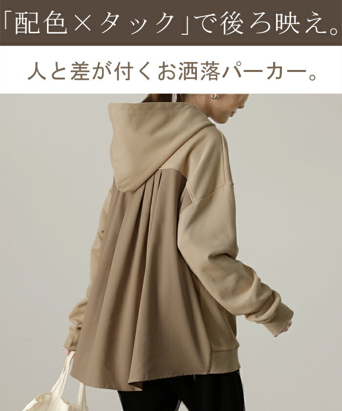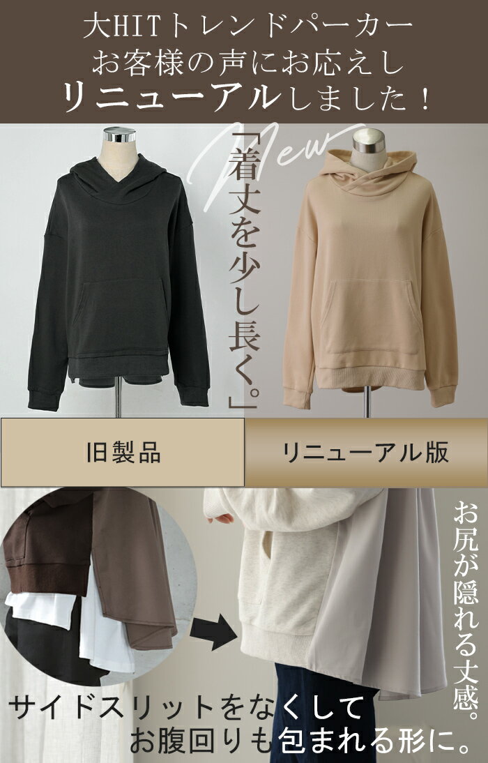 後ろ姿で魅せる「フリルより甘すぎないフレアタック 」パーカー レディース トップス 【あす楽】 フーディー 長袖 プルオーバー ロング トレーナー スウェット 切替 お尻が隠れる 無地 シンプル 配色 大きいサイズ 春 夏 HUG.U
