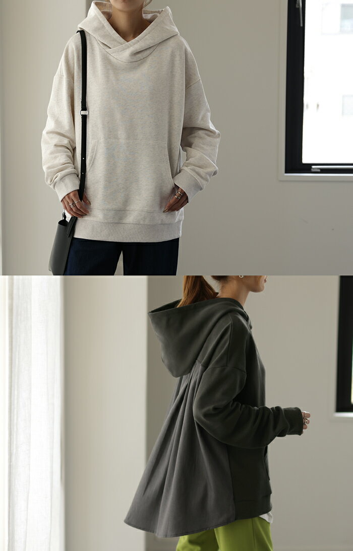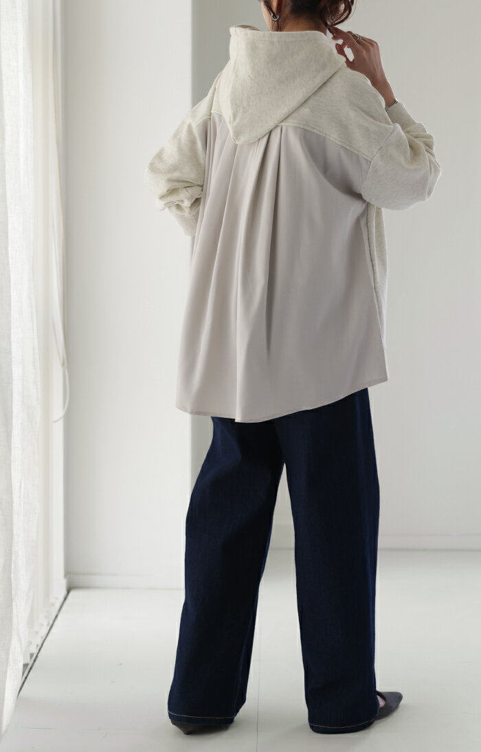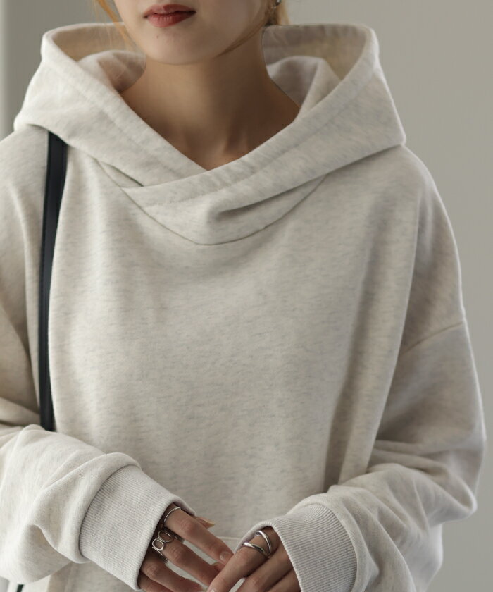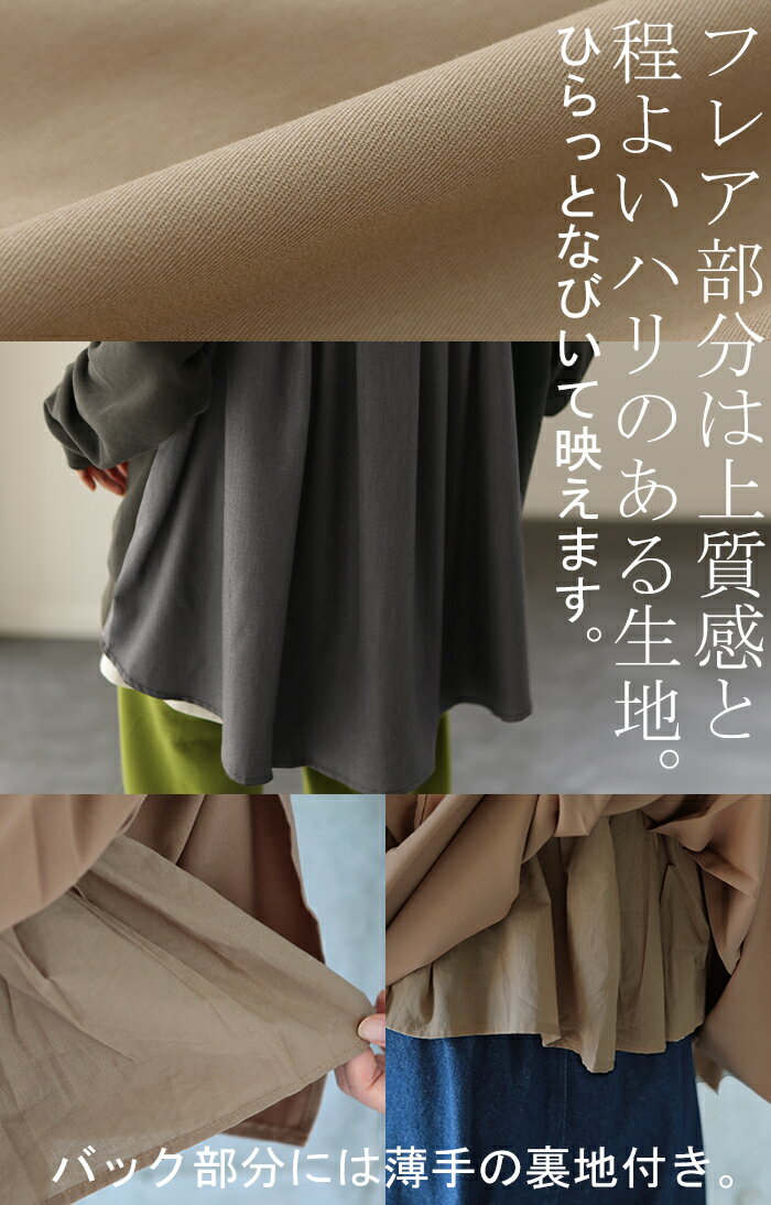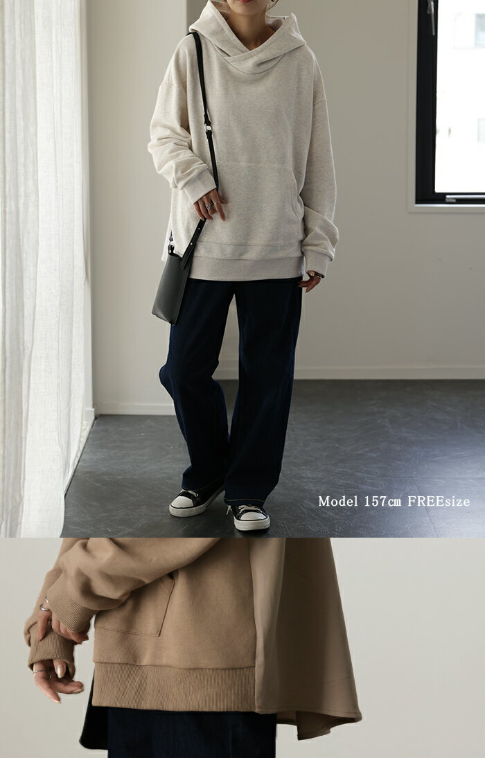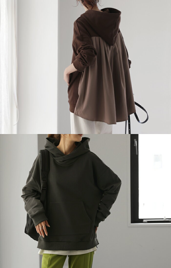 後ろ姿で魅せる「フリルより甘すぎないフレアタック 」パーカー レディース トップス 【あす楽】 フーディー 長袖 プルオーバー ロング トレーナー スウェット 切替 お尻が隠れる 無地 シンプル 配色 大きいサイズ 春 夏 HUG.U
