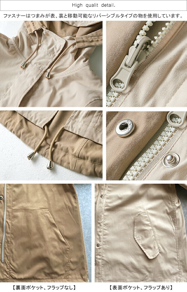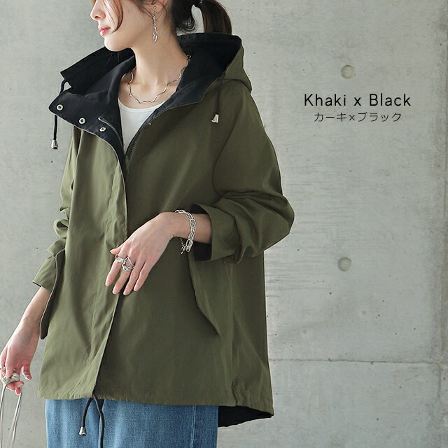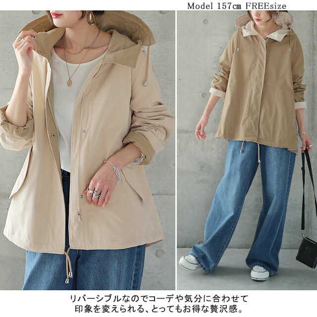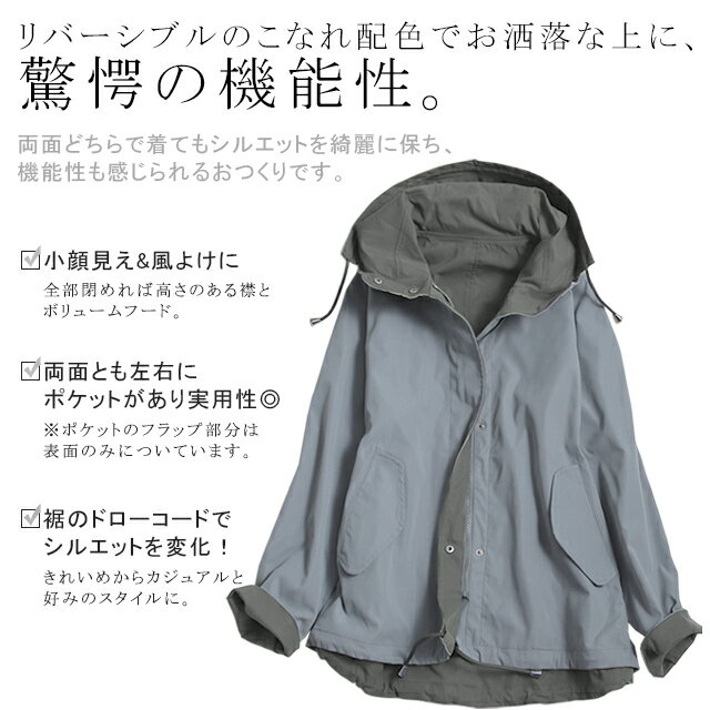 賢いチョイス 2way リバーシブル マウンテンパーカー 【あす楽】 アウター レディース パーカー ジャケット ブルゾン ミリタリージャケット ミリタリー 長袖 アウトドア 小顔 大きいサイズ ジャンバー ミディアム ライトアウター お尻が隠れる 春 夏 HUG.U