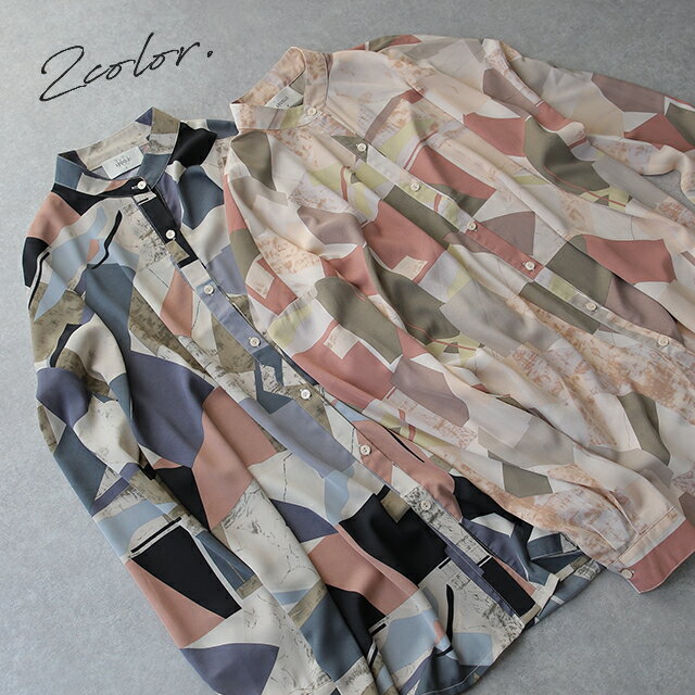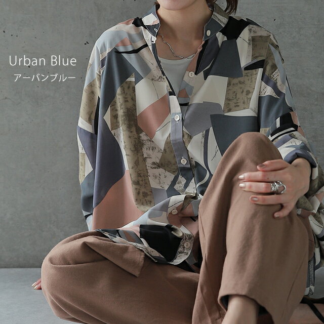 とろみユル。アート柄×シアーシャツ シャツ シアーシャツ レディース トップス ロング ブラウス チュニック バンドカラー 体型カバー レイヤード オーバーサイズ 総柄 柄 長袖 羽織 大きいサイズ 秋 冬 HUG.U