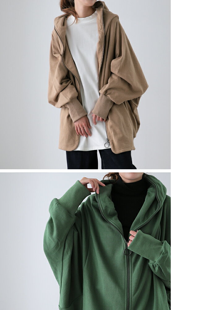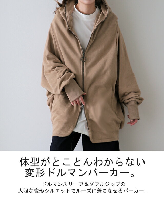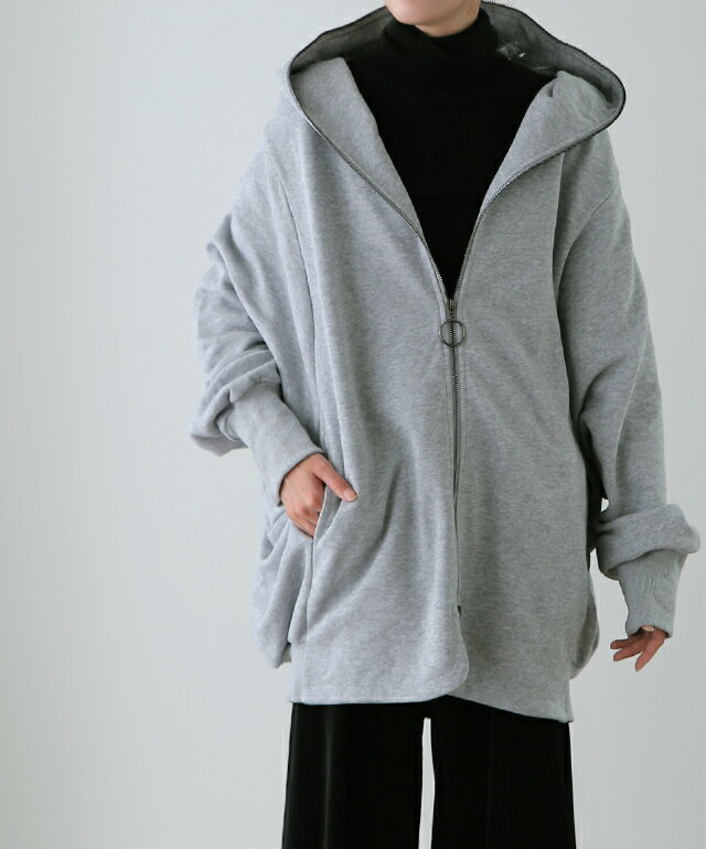 最強「 小顔 × 体型カバー 」 【あす楽】 パーカー アウター レディース ライトアウター トップス トレーナー スウェット スエット フーディー ドロップショルダー ビッグ ドルマン ドルマンスリーブ 変形 大きいサイズ ブラック グレー 黒 春 夏 HUG.U