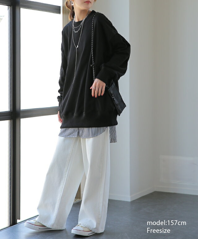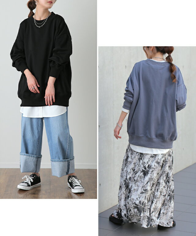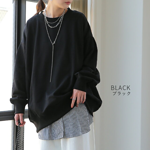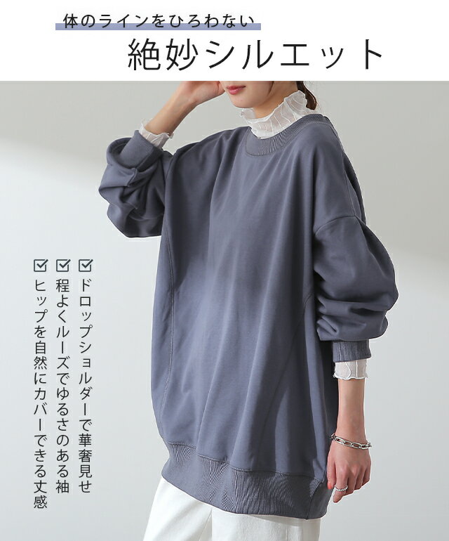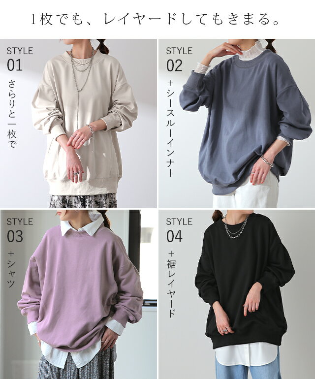 トレーナー 「袖タックが効く」 レディース スウェット 【あす楽】 トップス 大きいサイズ 無地 ドルマンスリーブ スエット タック プルオーバー ビッグ ドロップショルダー ビッグシルエット コクーン ゆったり 長袖 紫 黒 グレー 大きめ 春 夏 HUG.U
