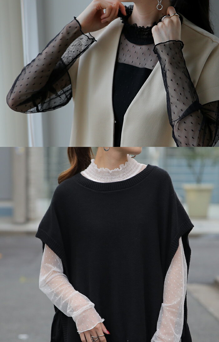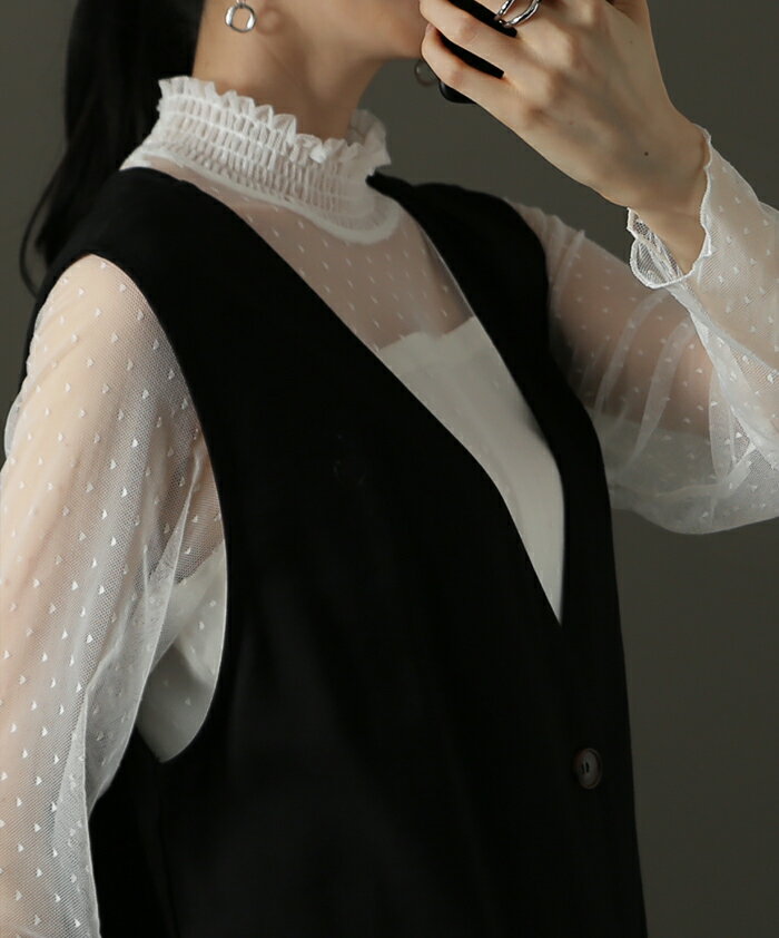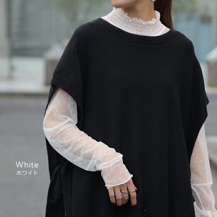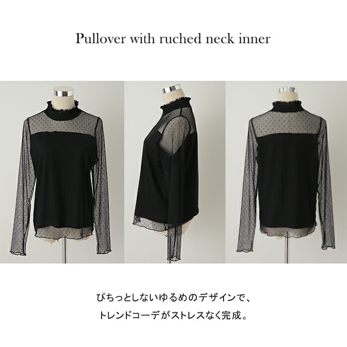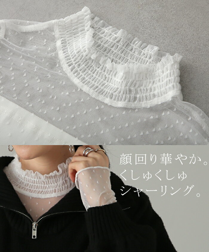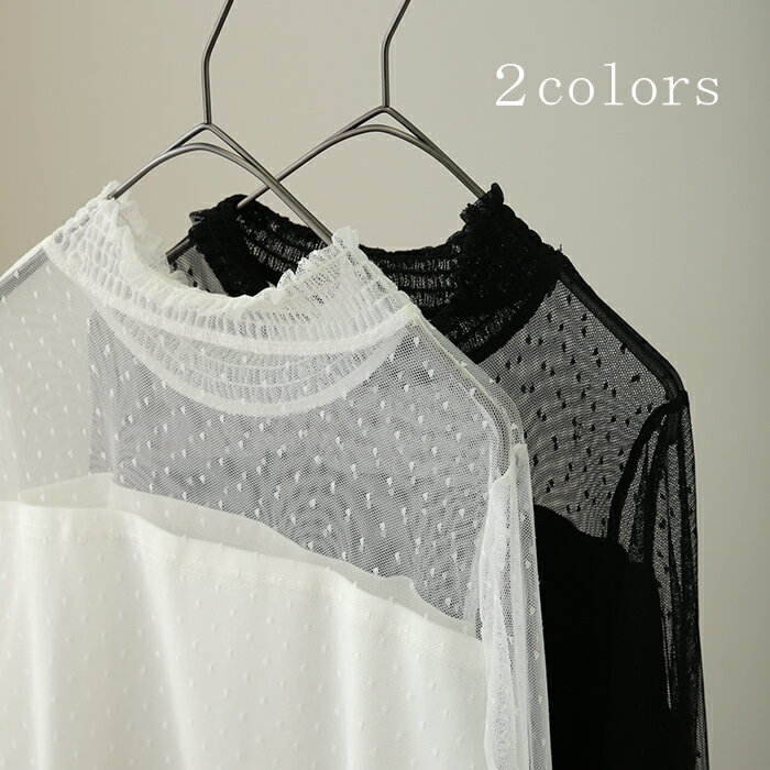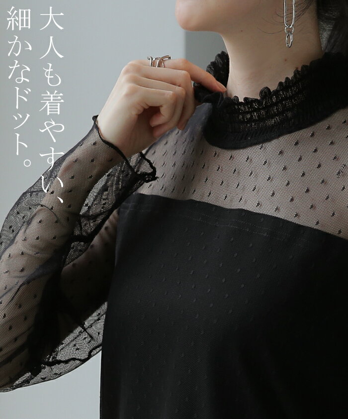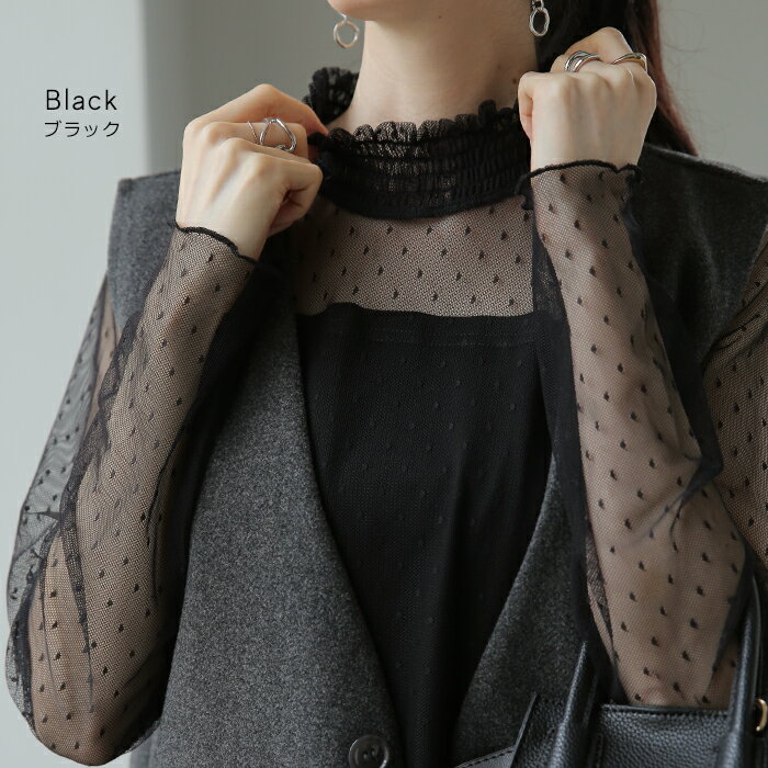 ゆったりめ 「 ドット 」 シースルー トップス レディース シアー チュール ドット シアーインナー レイヤード ハイネック インナー 長袖 透け 重ね着 薄手 タートル メロウ きれいめ 体型カバー 大きいサイズ ストレッチ 黒 白 緑 春 夏 HUG.U