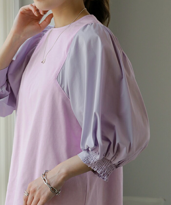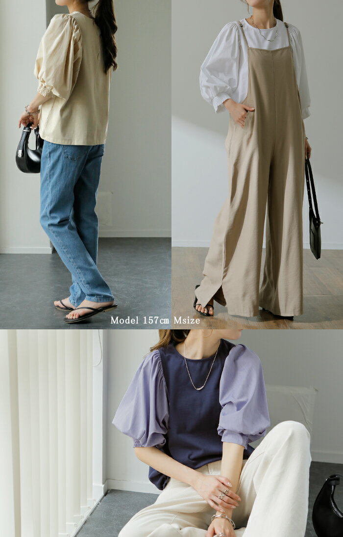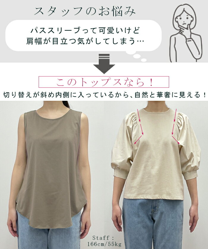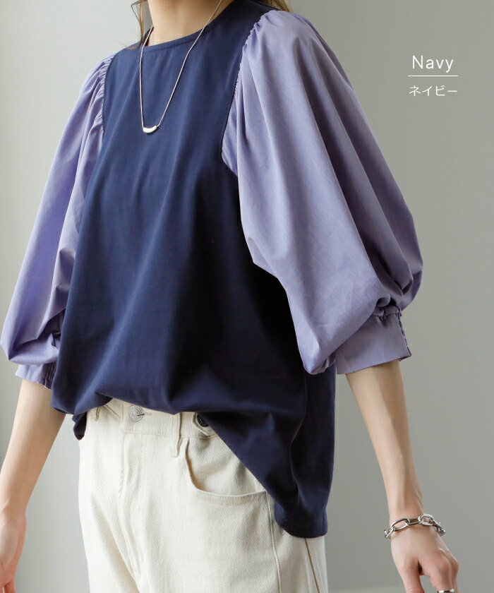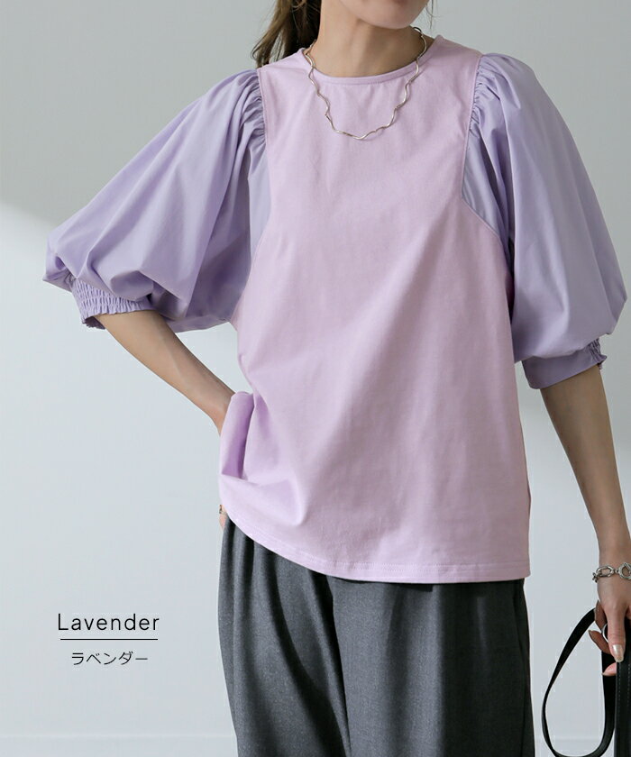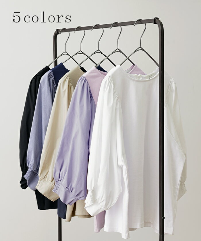 Tシャツ感覚「 パフ T 」 ■一部7月上旬入荷 袖 ぽわん ドッキング カットソー ブラウス 重ね着 レイヤード 半袖 ティーシャツ パフスリーブ バルーンスリーブ トップス レディース きれいめ シンプル 体型カバー ボリューム 白 黒 シャツ 春 夏 HUG.U