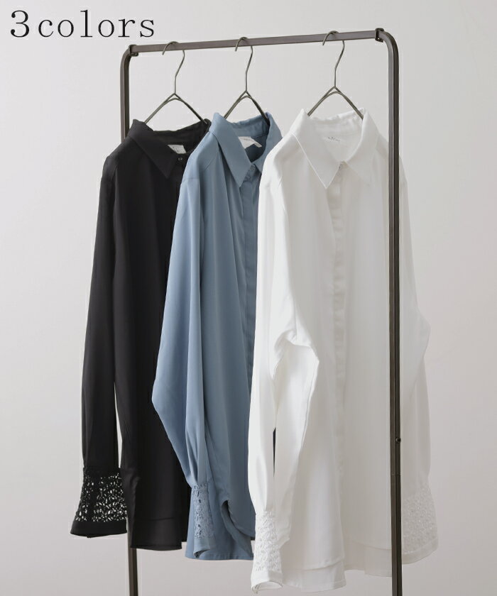 数センチのお洒落。「 レース袖口 」 シャツ レース 【即納】 袖 トップス レディース レイヤード チュニック シフォン ブラウス レースインナー 羽織 長袖 大きいサイズ 体型カバー ロングシャツ ロング お尻が隠れる きれいめ 無地 重ね着 白 黒 秋 冬 HUG.U