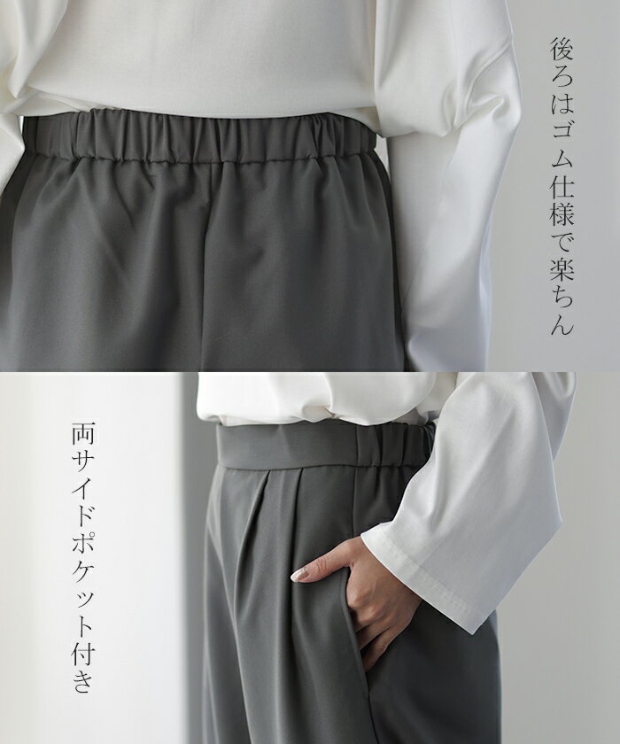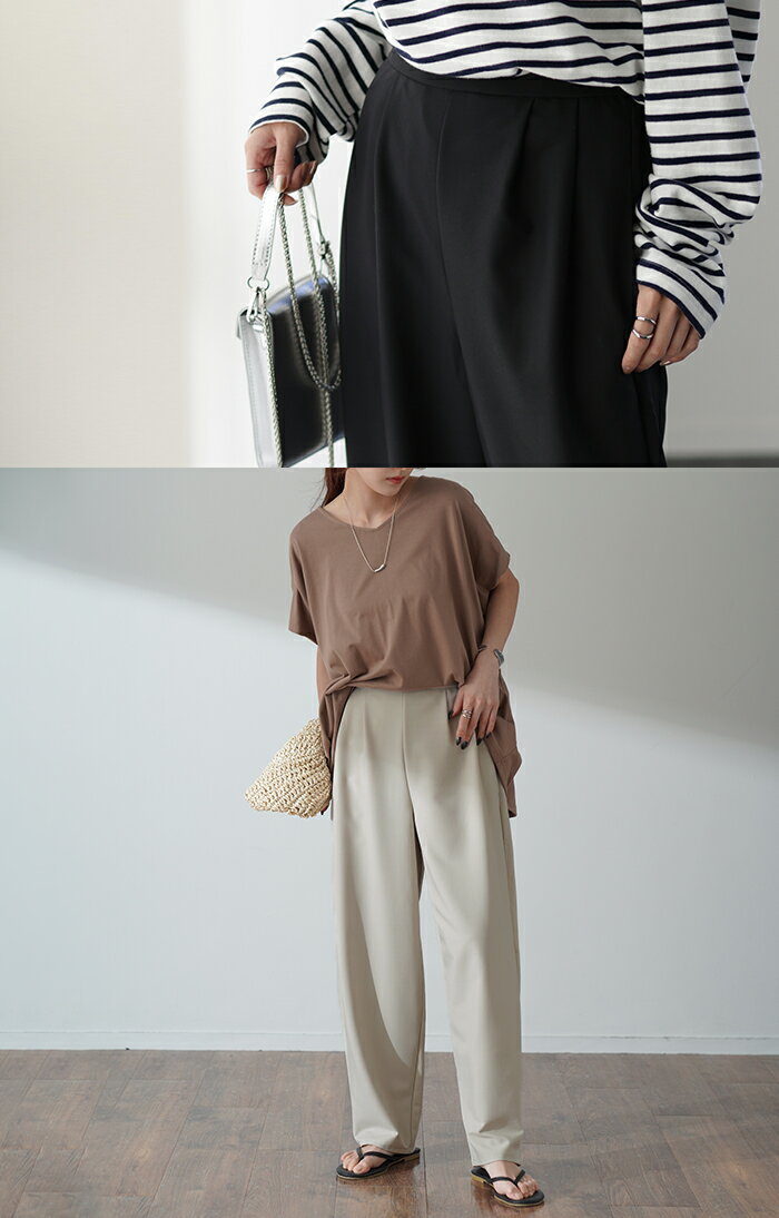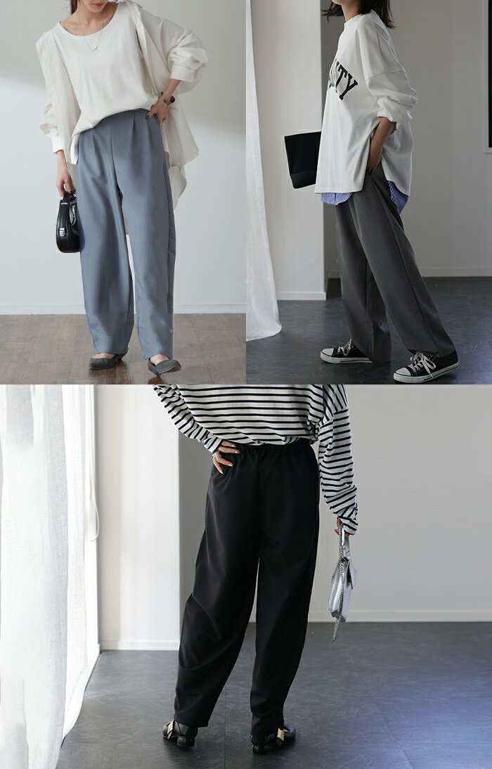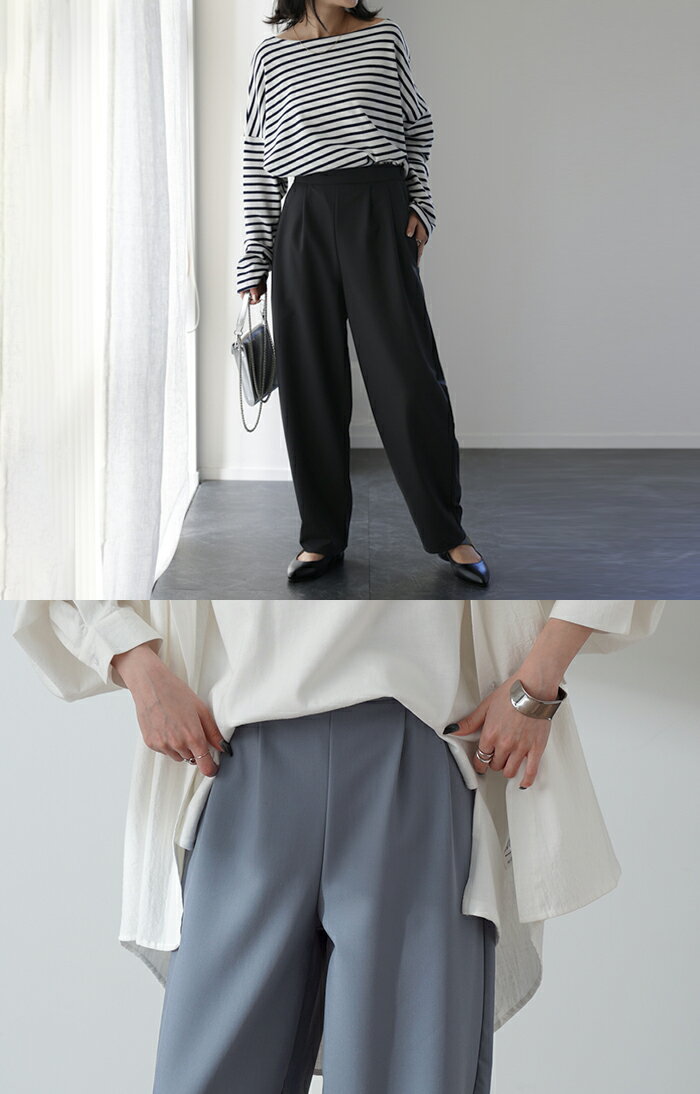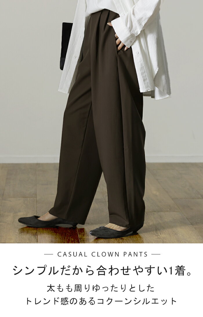 「 気になる太もも。」 ゆったり カバー タックパンツ パンツ カーブパンツ ワイドパンツ サーカスパンツ ワイド レディース スラックス テーパード ジョガーパンツ テーパードパンツ ボトムス ロング ボトム 体型カバー ブラック 春 夏 HUG.U