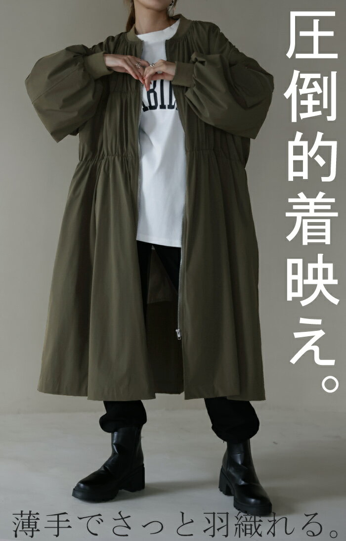 出会えた。「 最高傑作 MA-1 」 【あす楽】 ジャンパー レディース ロング アウター ロングMA-1 ミリタリーコート ミリタリー ライトアウター アウトドア ブルゾン ファスナー 体型カバー 長袖 伸縮 ナイロン 大きいサイズ きれいめ 羽織 春 夏 HUG.U
