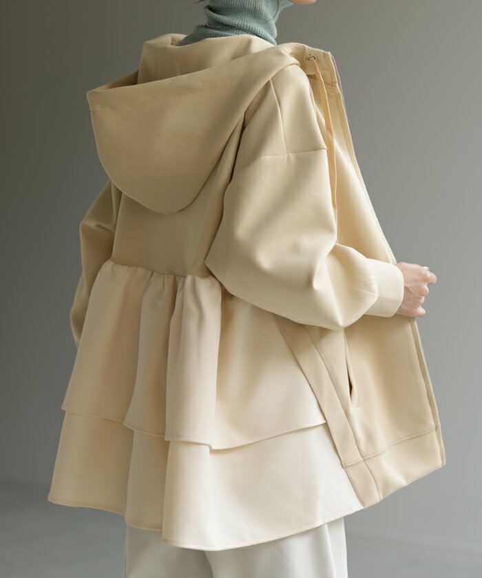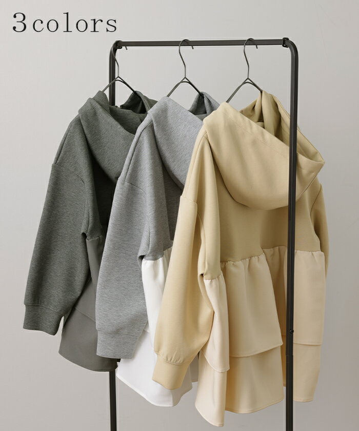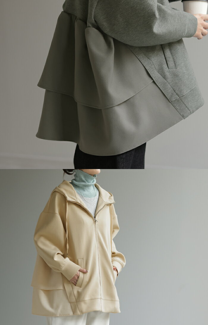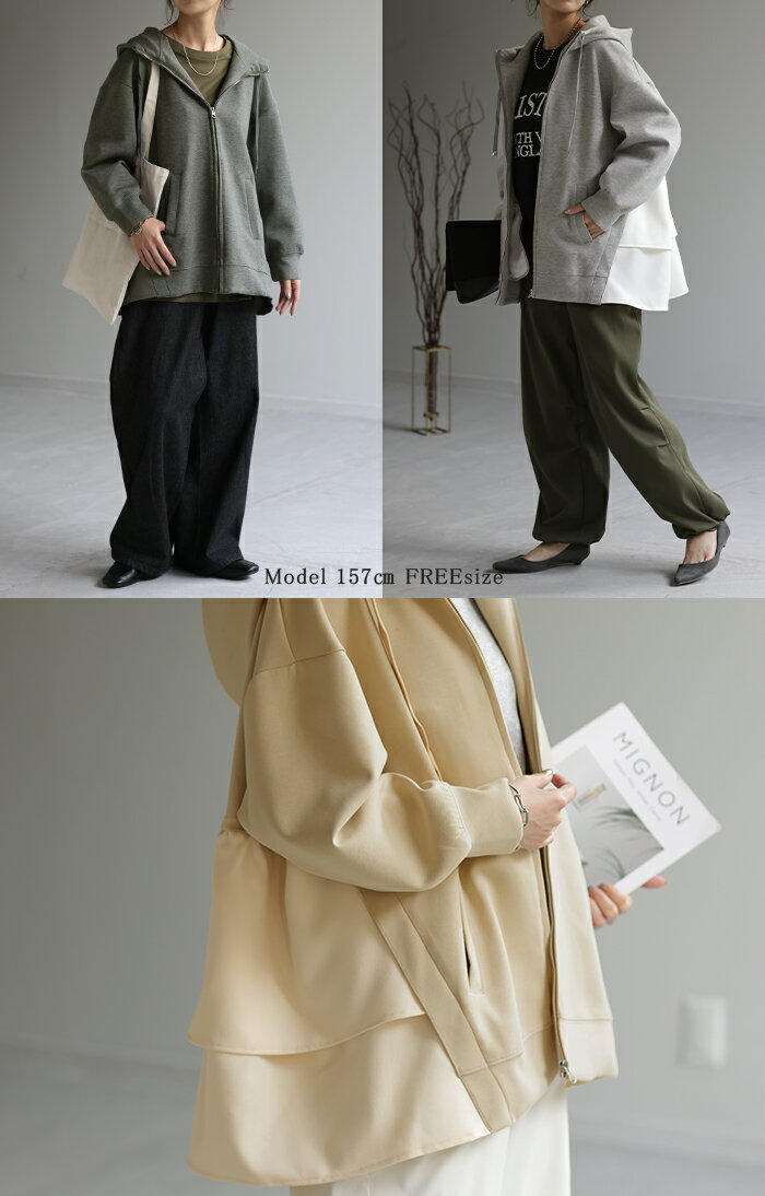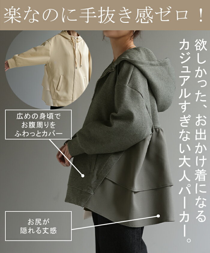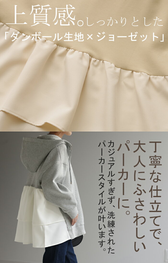 ト・リ・コ 「 大人可愛い。」 バックフリル パーカー 【あす楽】 アウター レディース ライトアウター ロング トップス トレーナー フーディー 無地 羽織 体型カバー フリル バックプリーツ プリーツ ドルマン ゆったり 変形 大きいサイズ グレー 春 夏 HUG.U