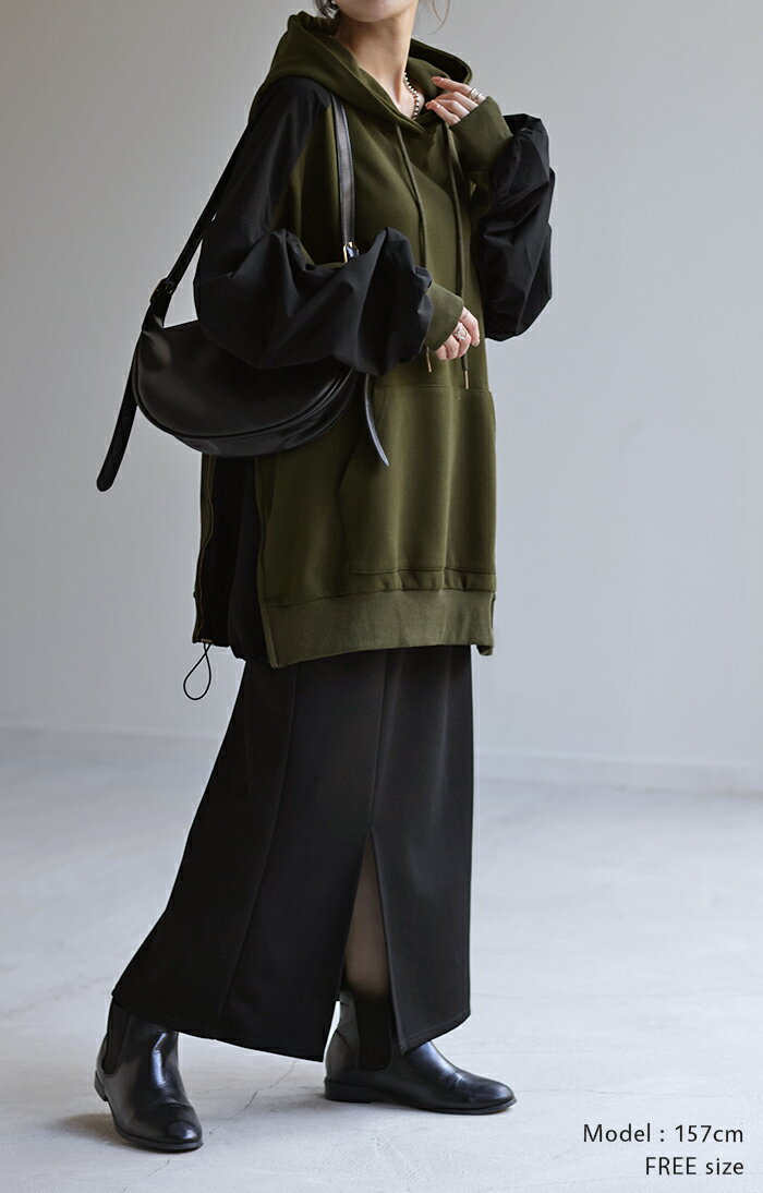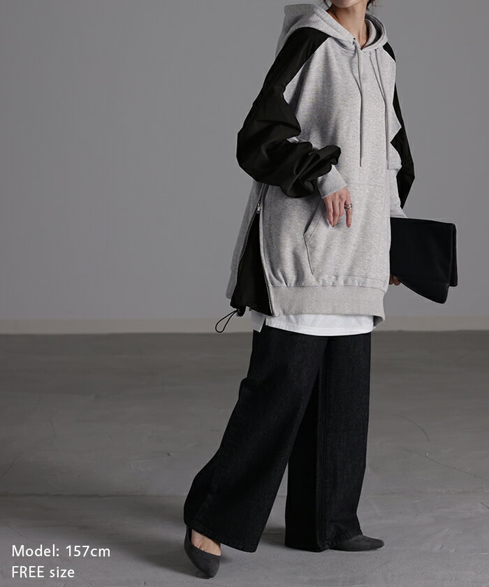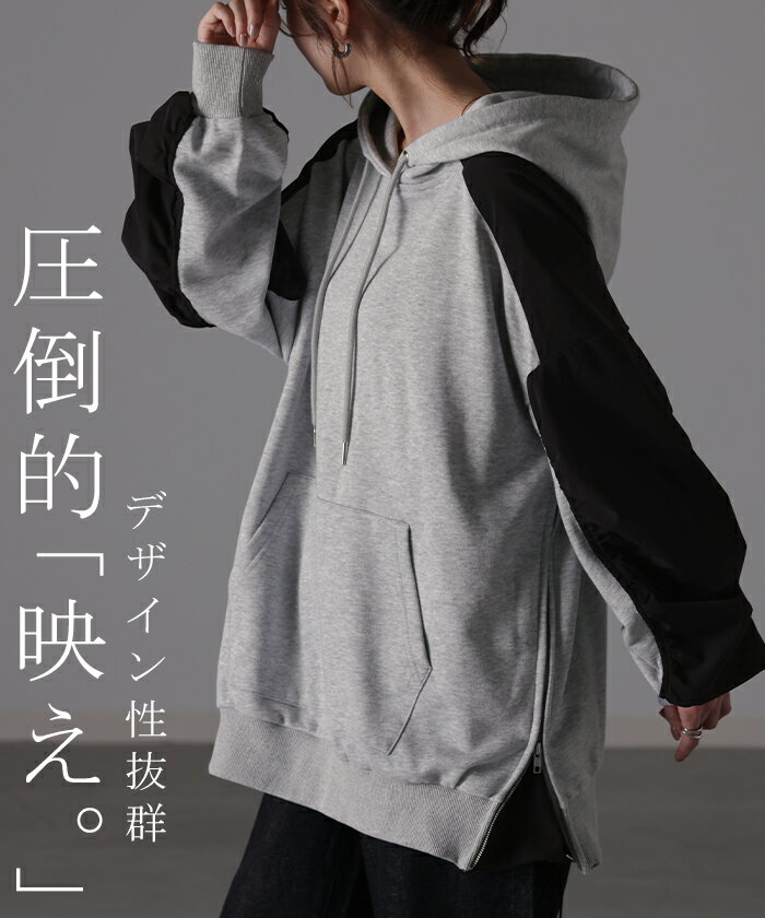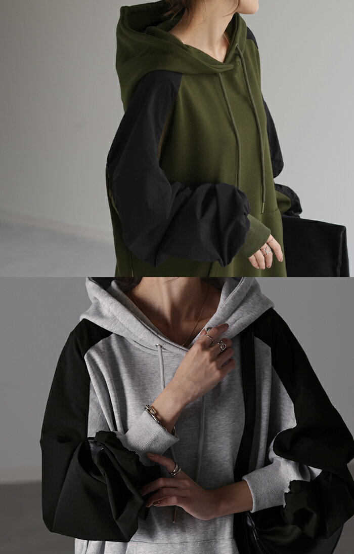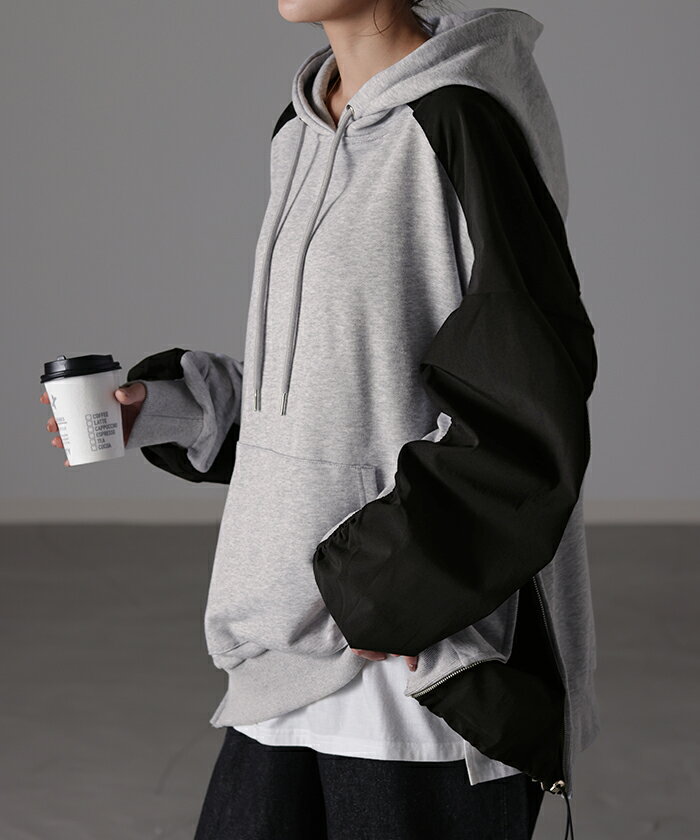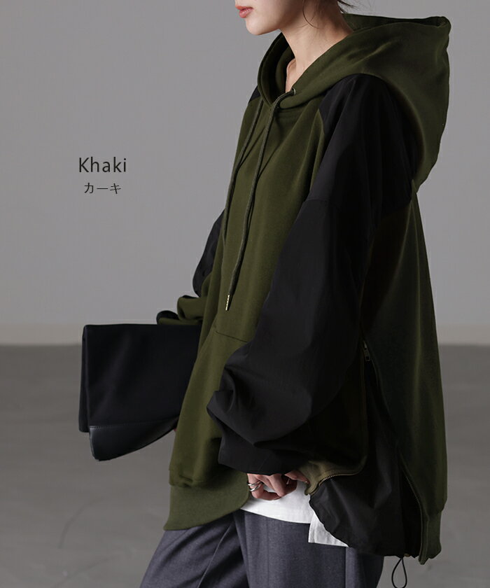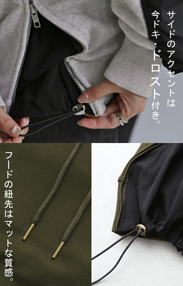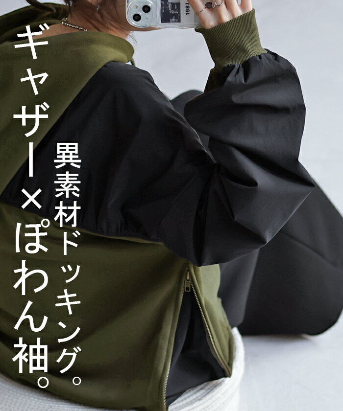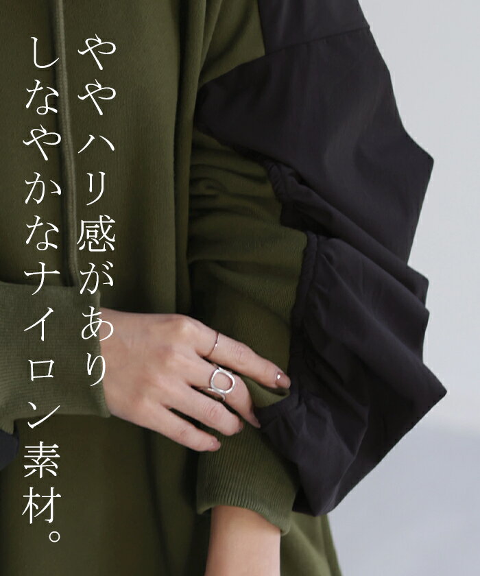 求めてた。「 甘すぎない 」ぽわん パーカー 【あす楽】 アウター レディース ライトアウター トップス トレーナー スウェット フーディー ビッグ ドルマン ギャザー 異素材 ミリタリー ぽわん袖 体型カバー 変形 変形シルエット 大きいサイズ カーキ 春 夏 HUG.U