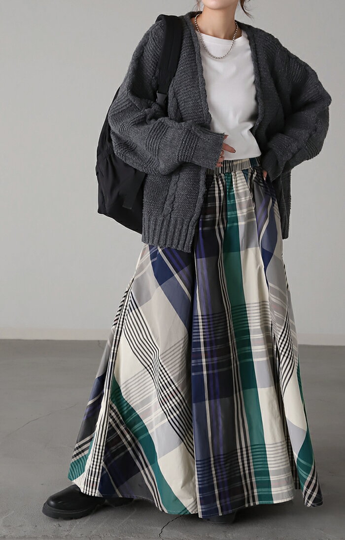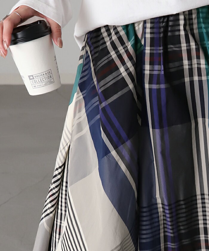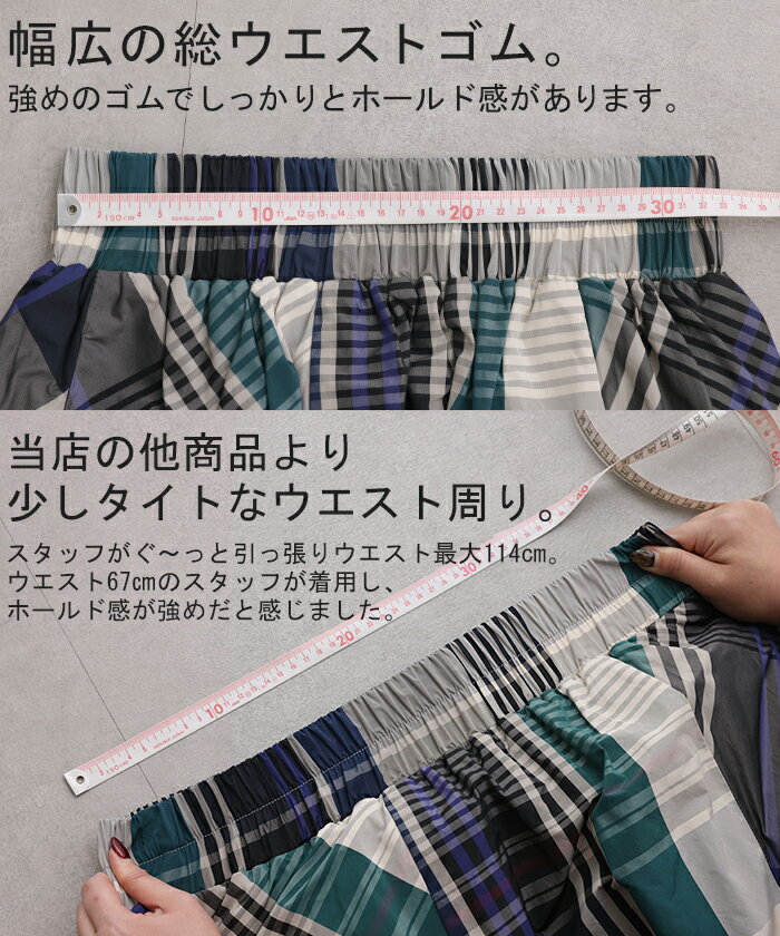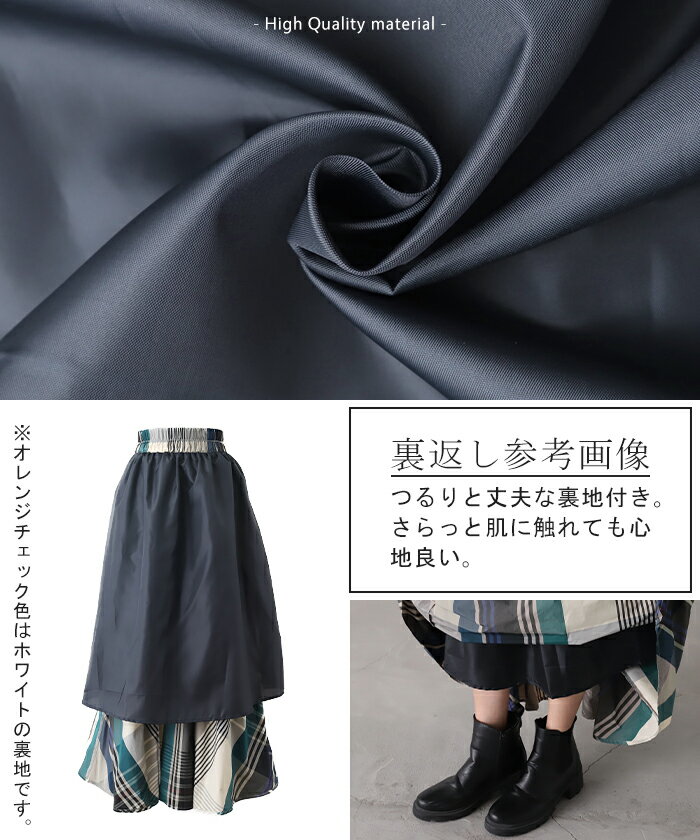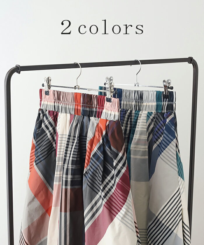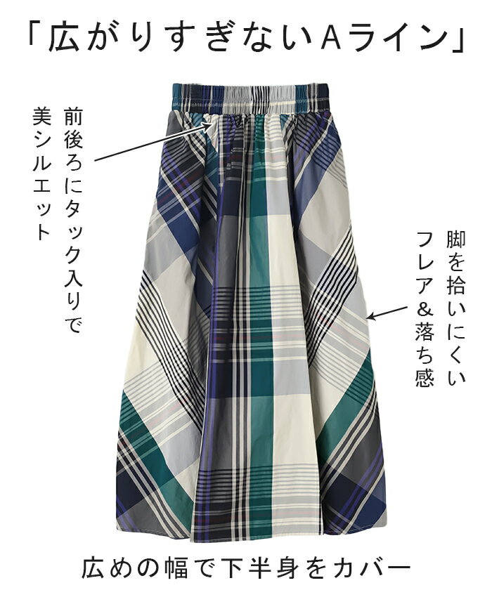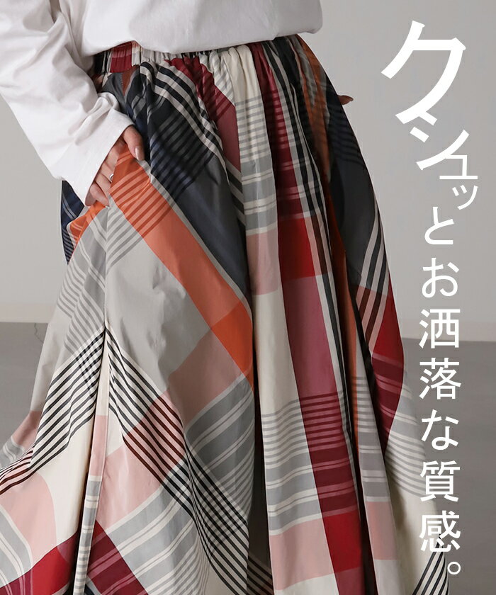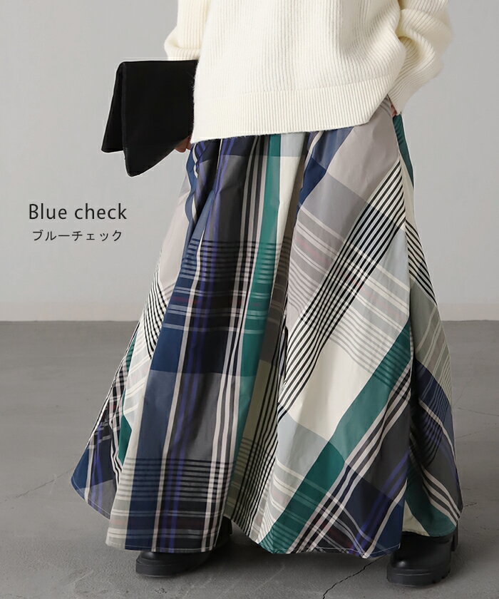 ボリューム 『 お洒落 チェック 』 【あす楽】 配色チェック スカート ロングスカート フレア Aライン レディース チェック柄 ボトムス フレアスカート 柄 おしゃれ 薄手 ゴム ロング マキシ ナチュラル マキシスカート 体型カバー きれいめ 赤 白 秋 冬 HUG.U