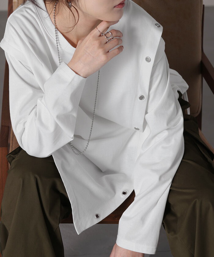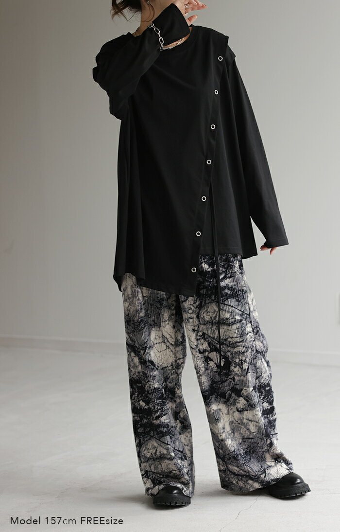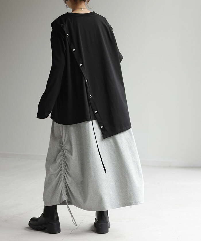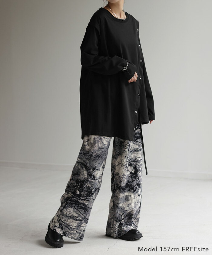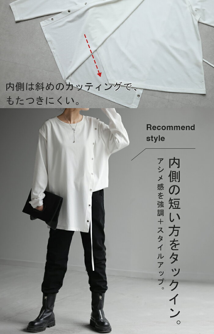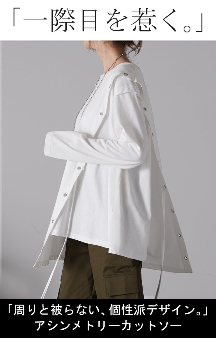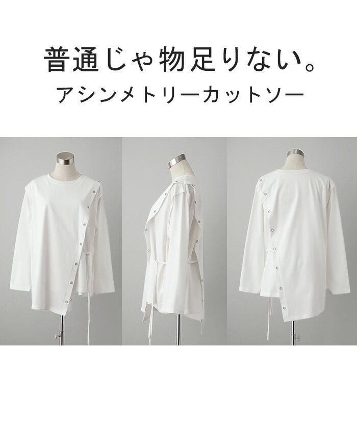 一目置かれる「 変形 デザイン。」 アシメ 【即納】 ロンT レディース カットソー ティーシャツ 無地 長袖 Tシャツ ロング チュニック ビッグ ドルマン 大きいサイズ きれいめ ゆる トップス 紐 Uネック 長い 体型カバー 大人 お洒落 黒 白 秋 冬 HUG.U