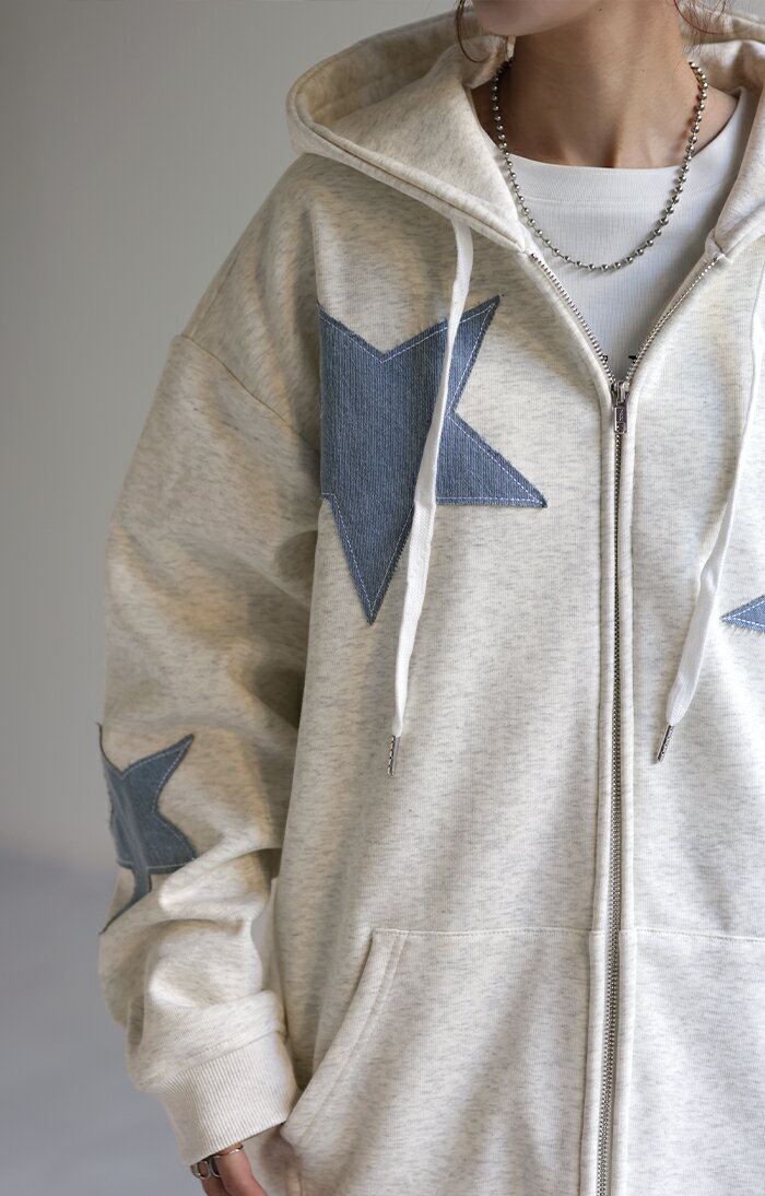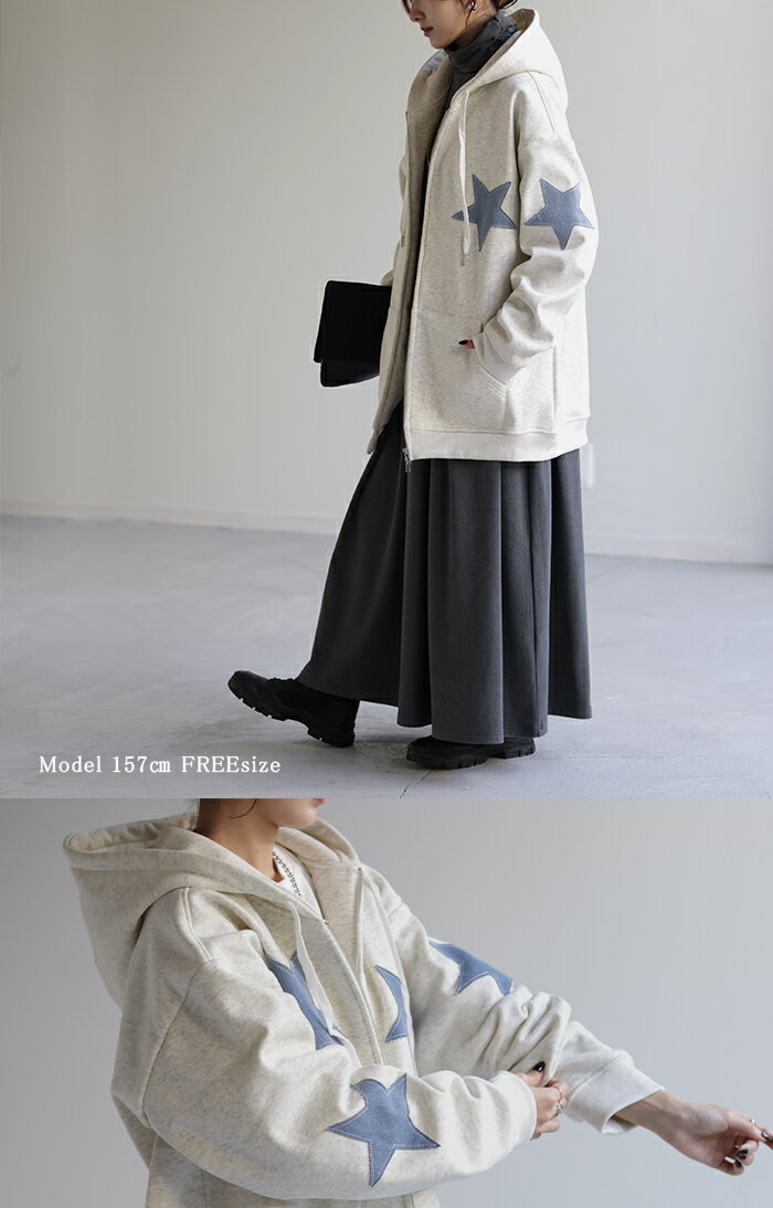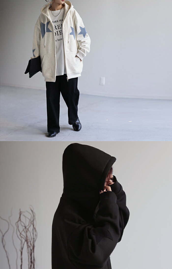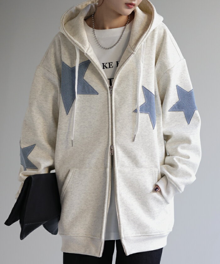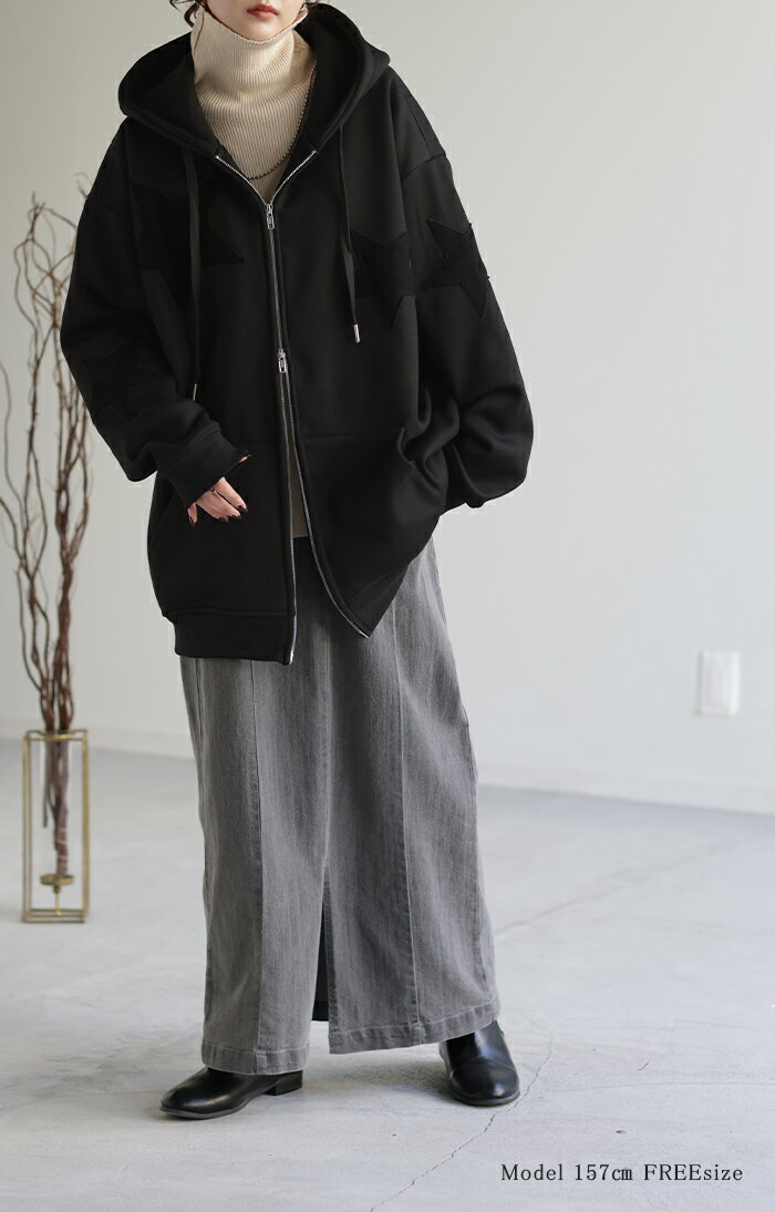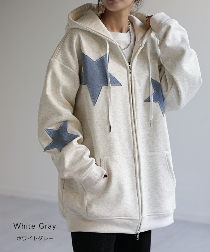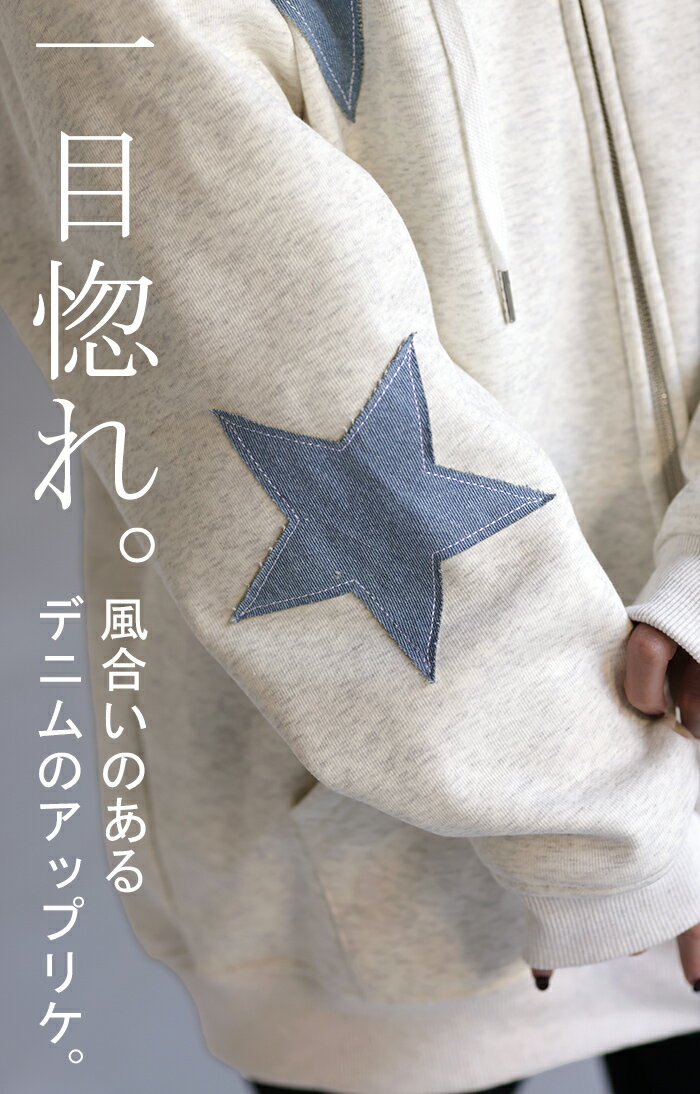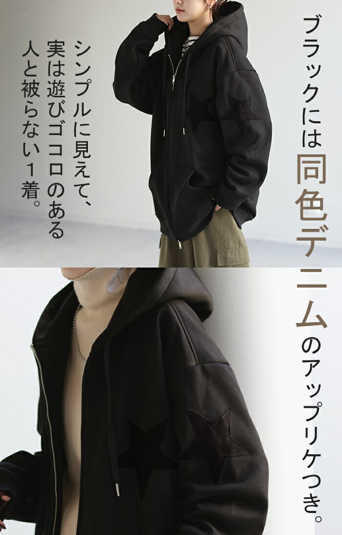 星 ★ 裏ボア 大人が着こなす 【あす楽】 「 パーカー 」 厚手 体型カバー アウター ドルマンパーカー レディース トップス トレーナー スウェット スエット フーディー ビッグ ドルマン ボア ボアパーカー スター デニム 大きいサイズ 暖か 極暖 黒 春 夏 HUG.U