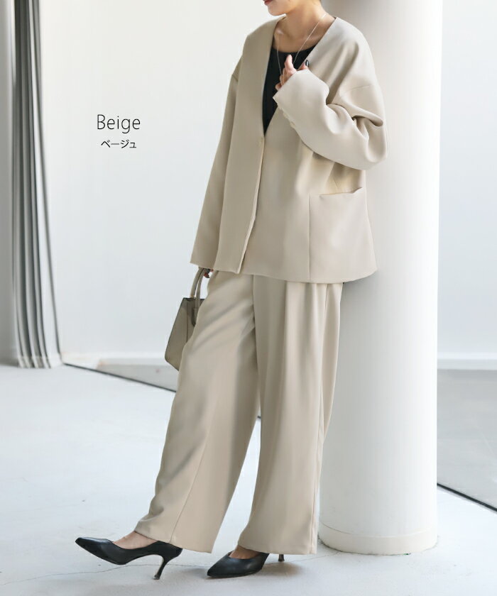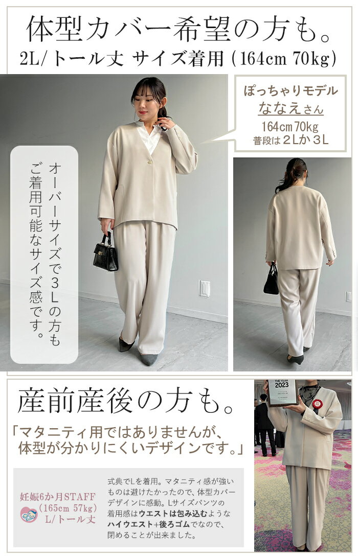 5,000円OFF フォーマル 2点セット パンツ ジャケット 【即納】 体型カバー レディース パンツスーツ スーツ セットアップ ノーカラー 入学式 卒業式 セレモニースーツ オケージョン レディーススーツ 母 ママ ママスーツ 大きいサイズ 紺 黒 冬 HUG.U