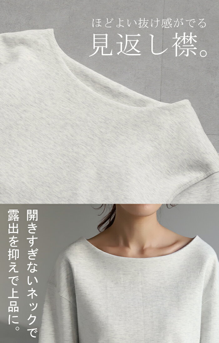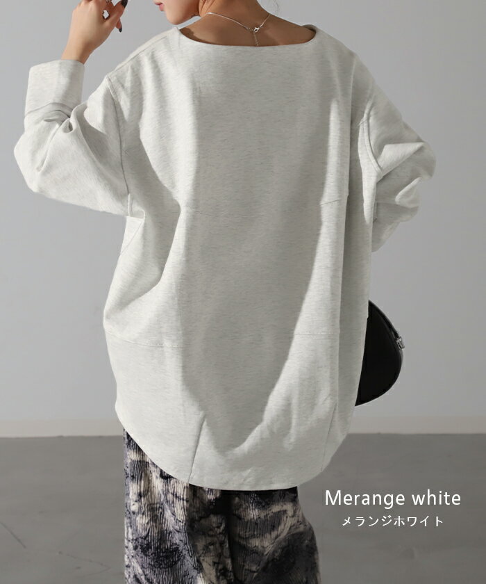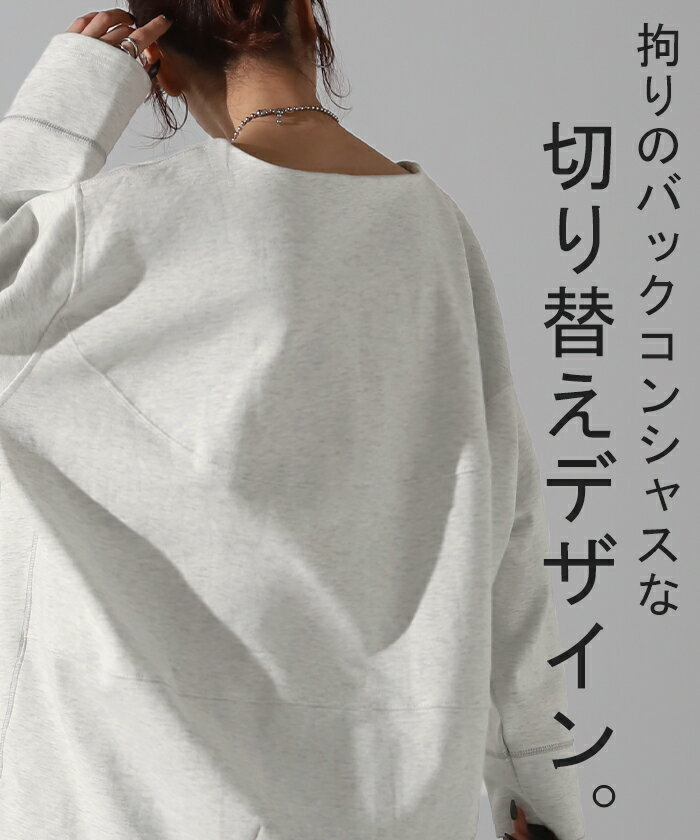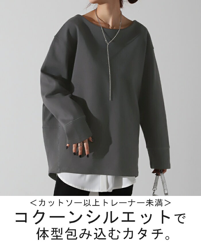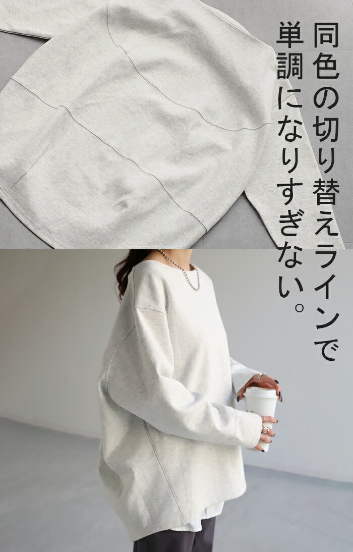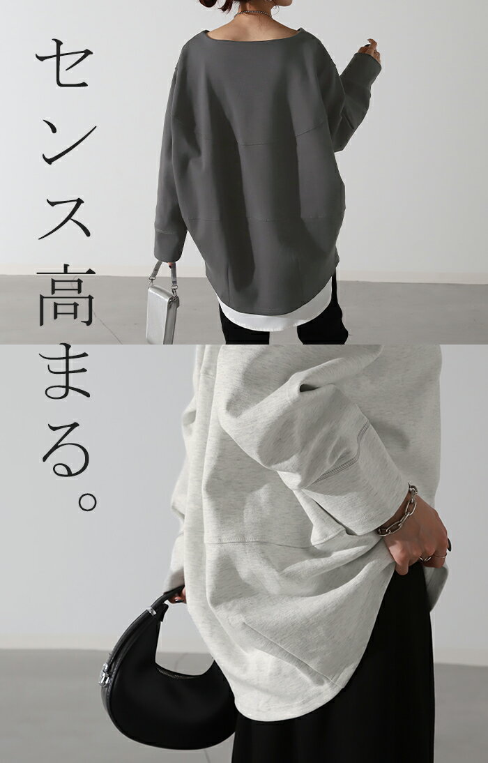 ロンT すっきり バックシャン カットソー 【あす楽】 レディース ティーシャツ 無地 長袖 Tシャツ ロング チュニック ビッグ ドルマン きれいめ ゆる トップス 切り替え Uネック 長い 体型カバー コクーン 大人 お洒落 大きいサイズ 厚手 グレー 黒 秋 冬 HUG.U