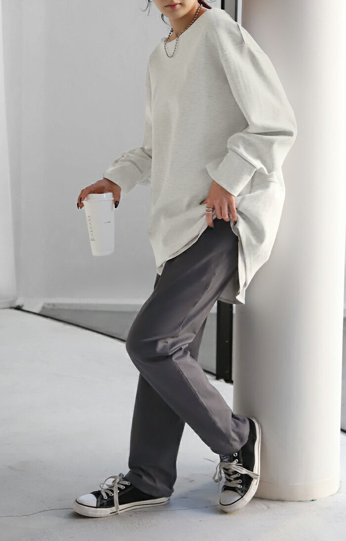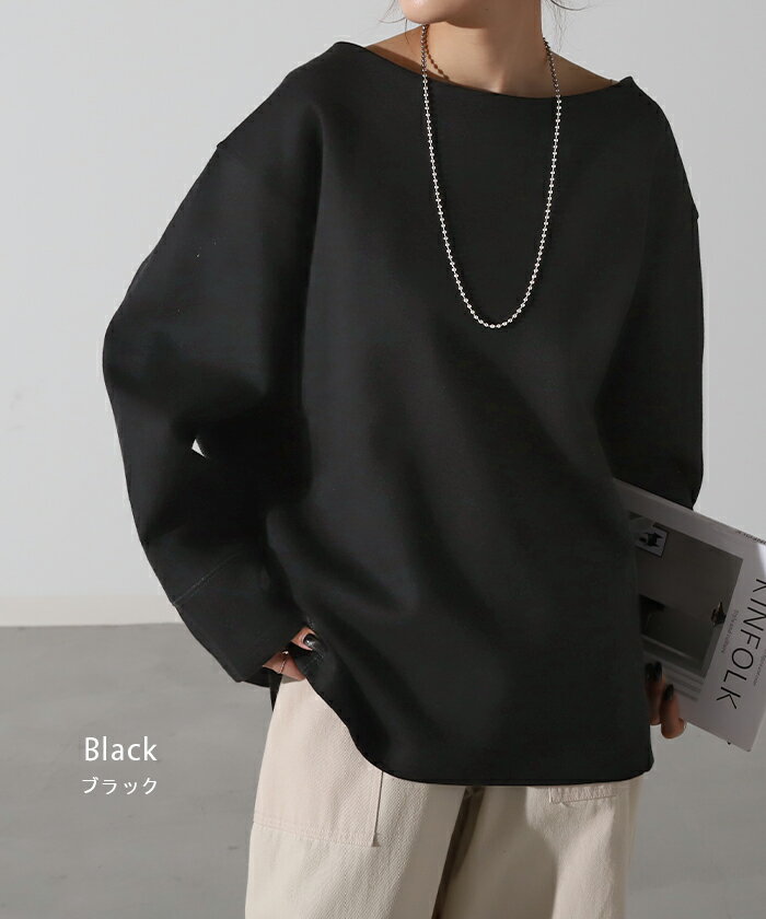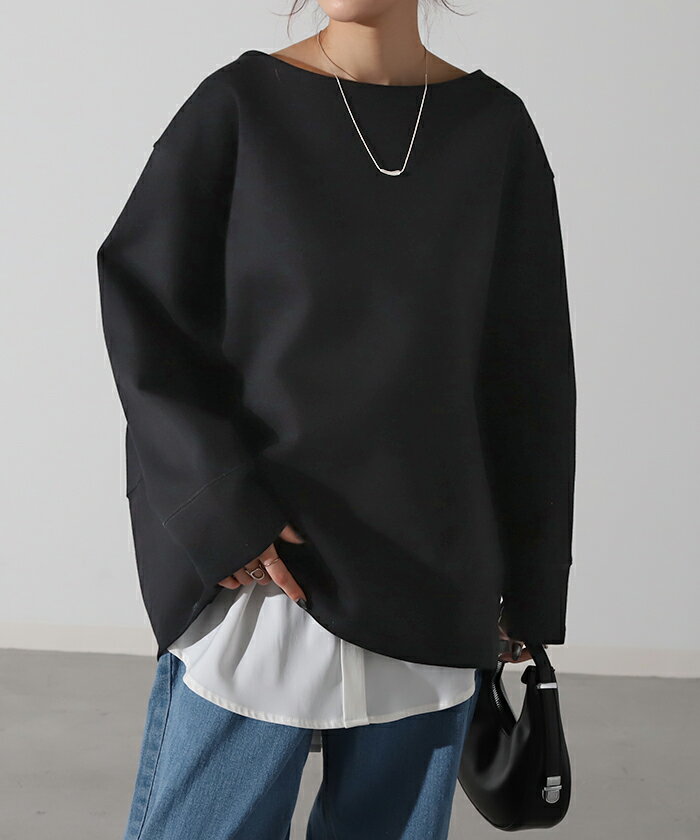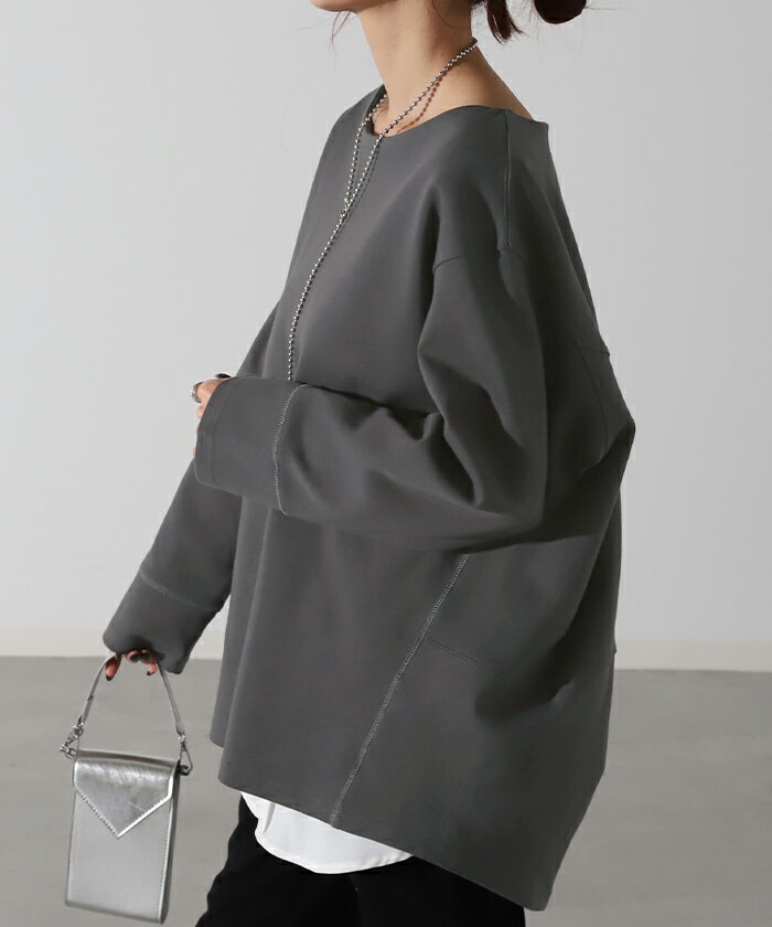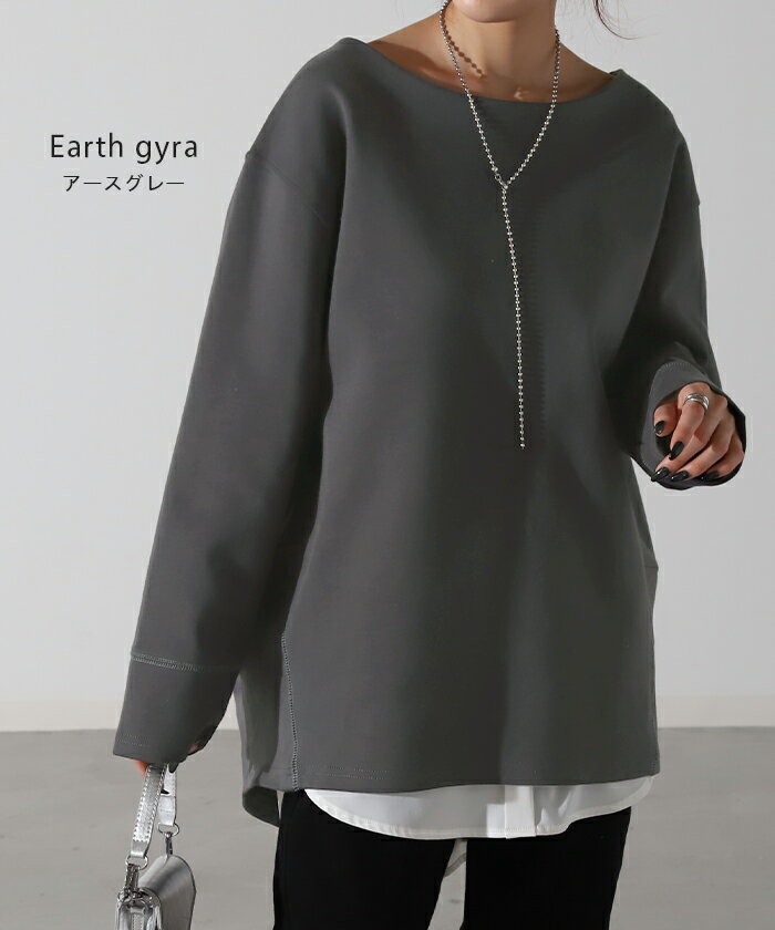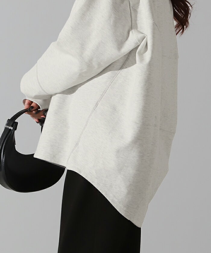 ロンT すっきり バックシャン カットソー 【あす楽】 レディース ティーシャツ 無地 長袖 Tシャツ ロング チュニック ビッグ ドルマン きれいめ ゆる トップス 切り替え Uネック 長い 体型カバー コクーン 大人 お洒落 大きいサイズ 厚手 グレー 黒 秋 冬 HUG.U