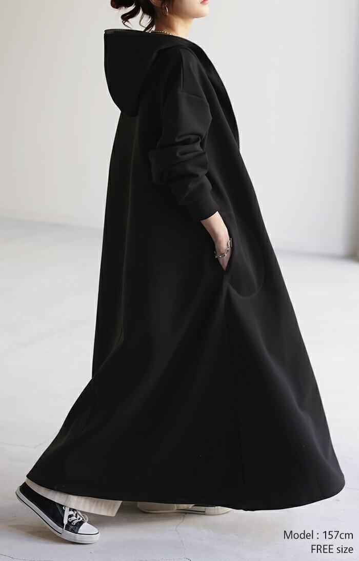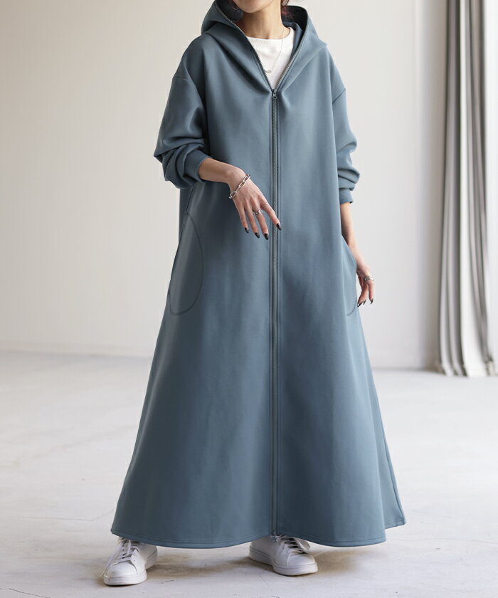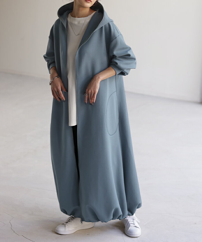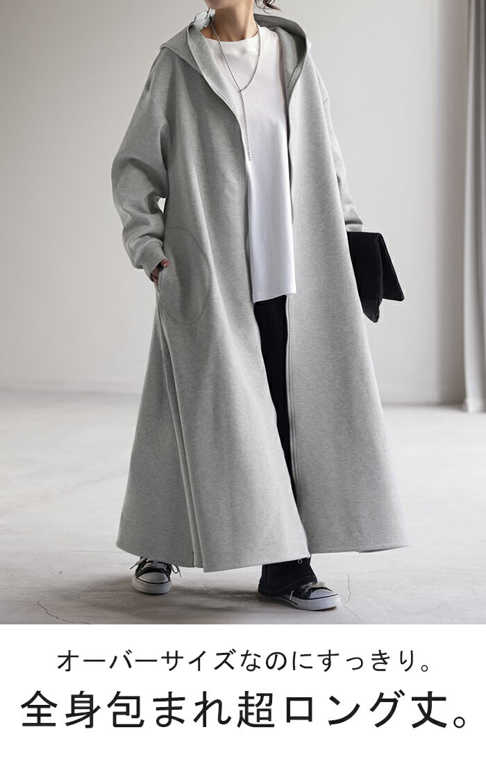パーカー 超ロング すっきり ダンボール 【あす楽】 アウター レディース ライトアウター トップス トレーナー スウェット スエット フーディー ロング ビッグ ドルマン ドルマンスリーブ Aライン ワンピ 薄手 羽織り 長袖 大きいサイズ ブルー 黒 春 夏 HUG.U