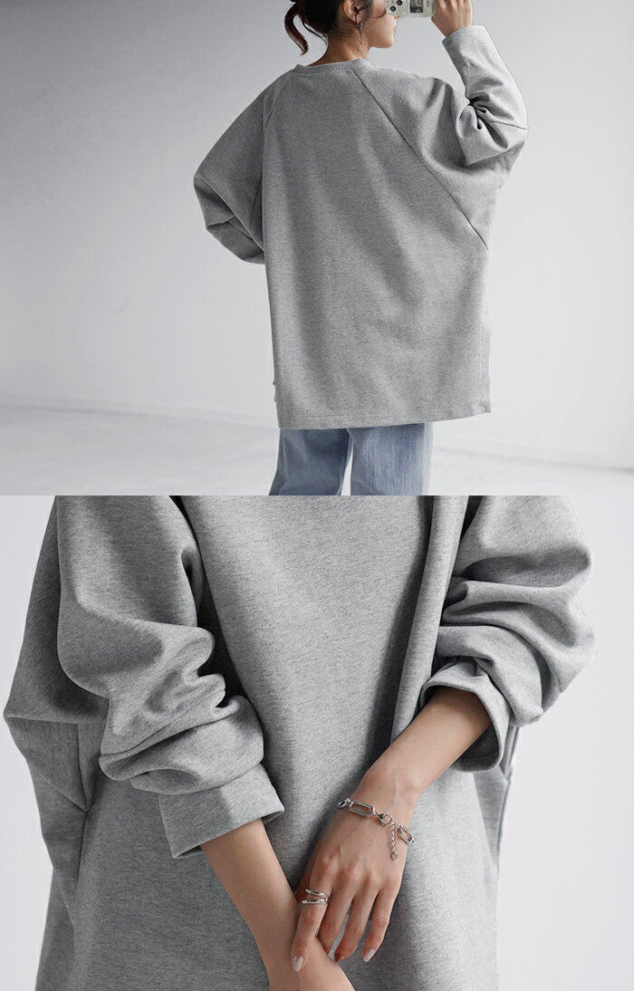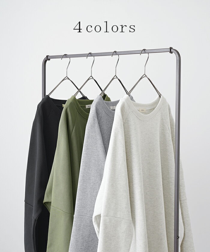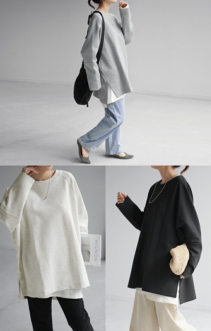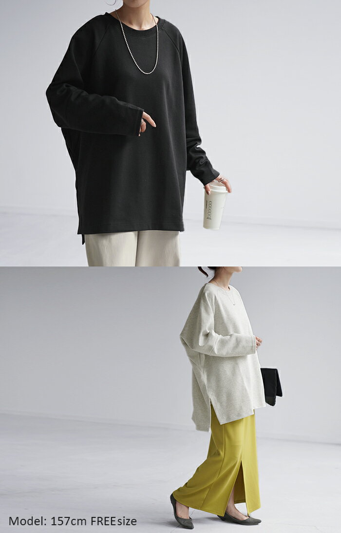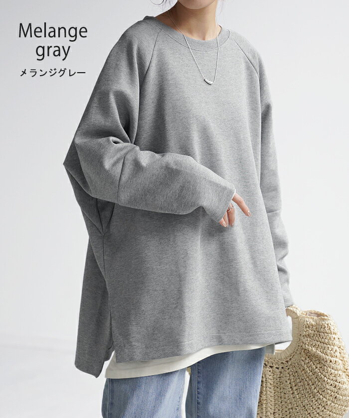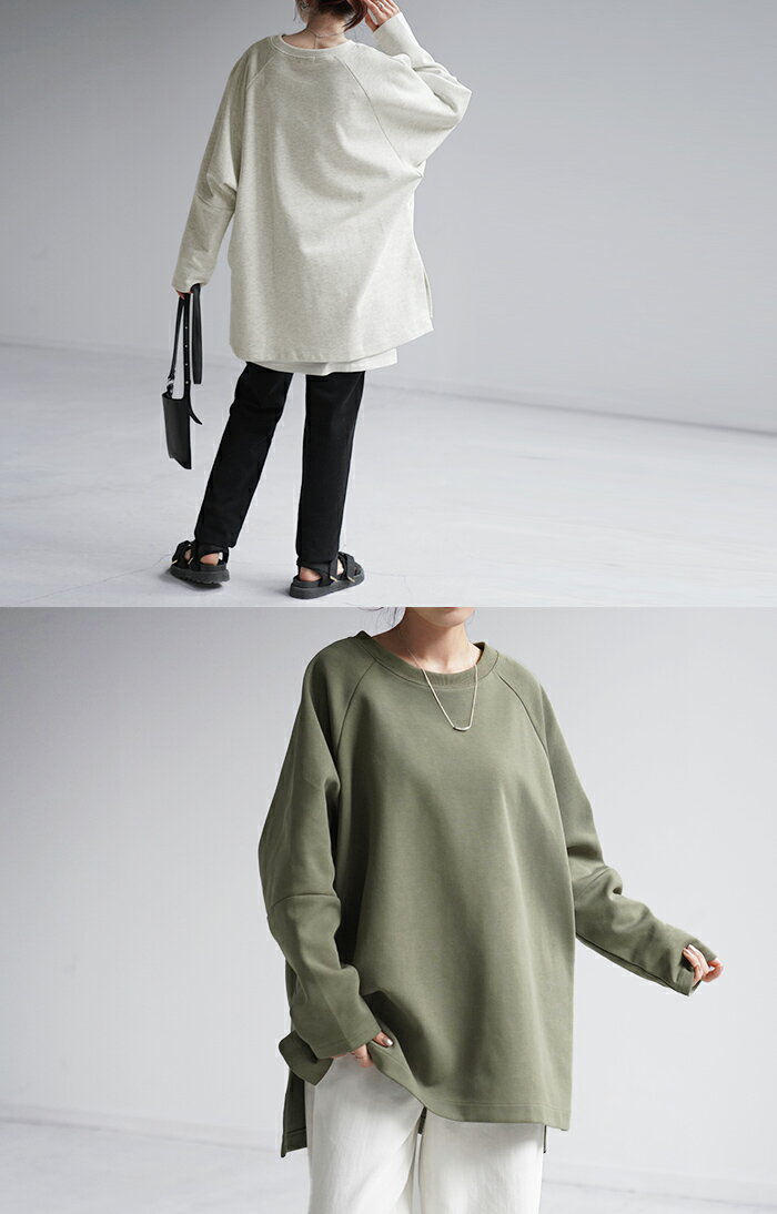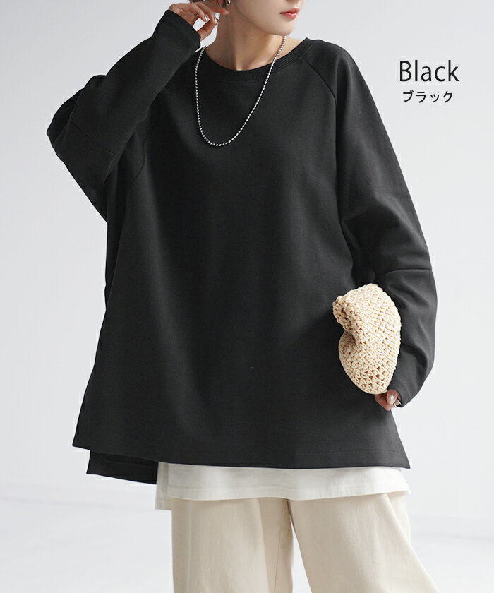 スウェット トップス レディース トレーナー 【あす楽】 オーバーサイズ 体型カバー 大きいサイズ 無地 ドルマン スエット プルオーバー ビッグ ロング ラグランスリーブ ビッグシルエット 丸首 お尻が隠れる ゆったり 長袖 ロンT 黒 グレー 春 夏 HUG.U