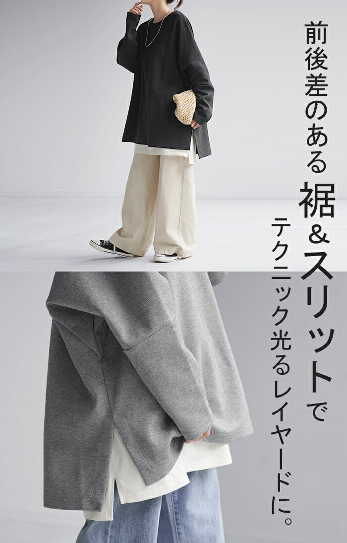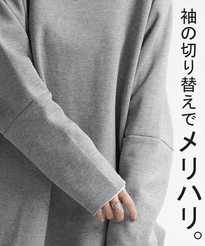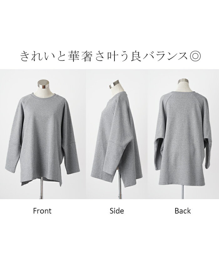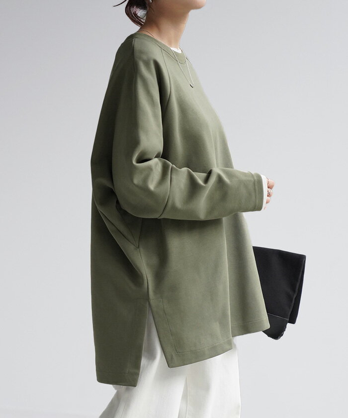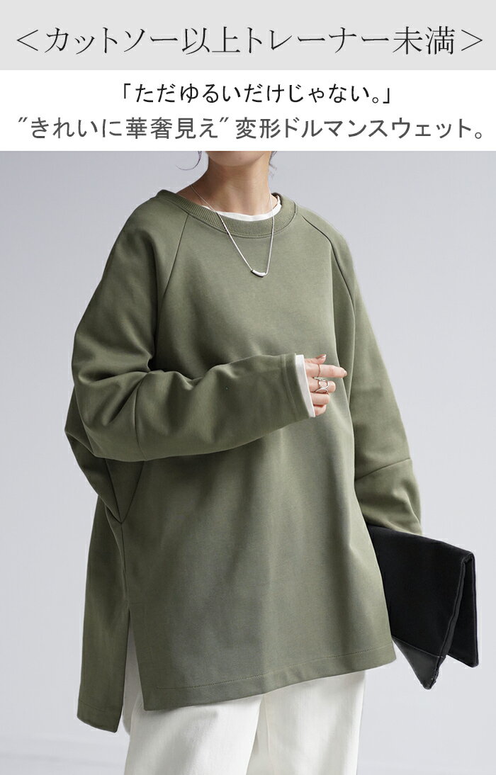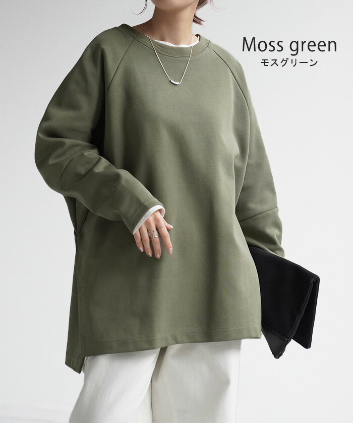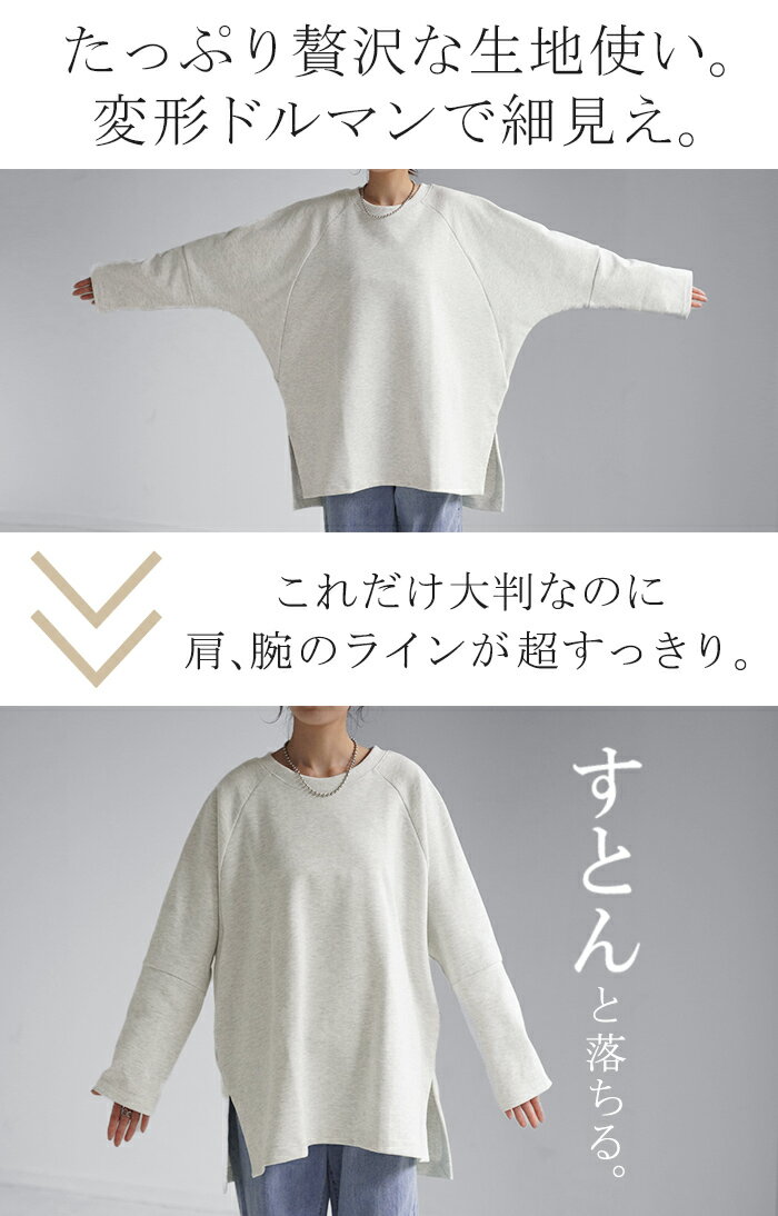 スウェット トップス レディース トレーナー 【あす楽】 オーバーサイズ 体型カバー 大きいサイズ 無地 ドルマン スエット プルオーバー ビッグ ロング ラグランスリーブ ビッグシルエット 丸首 お尻が隠れる ゆったり 長袖 ロンT 黒 グレー 春 夏 HUG.U