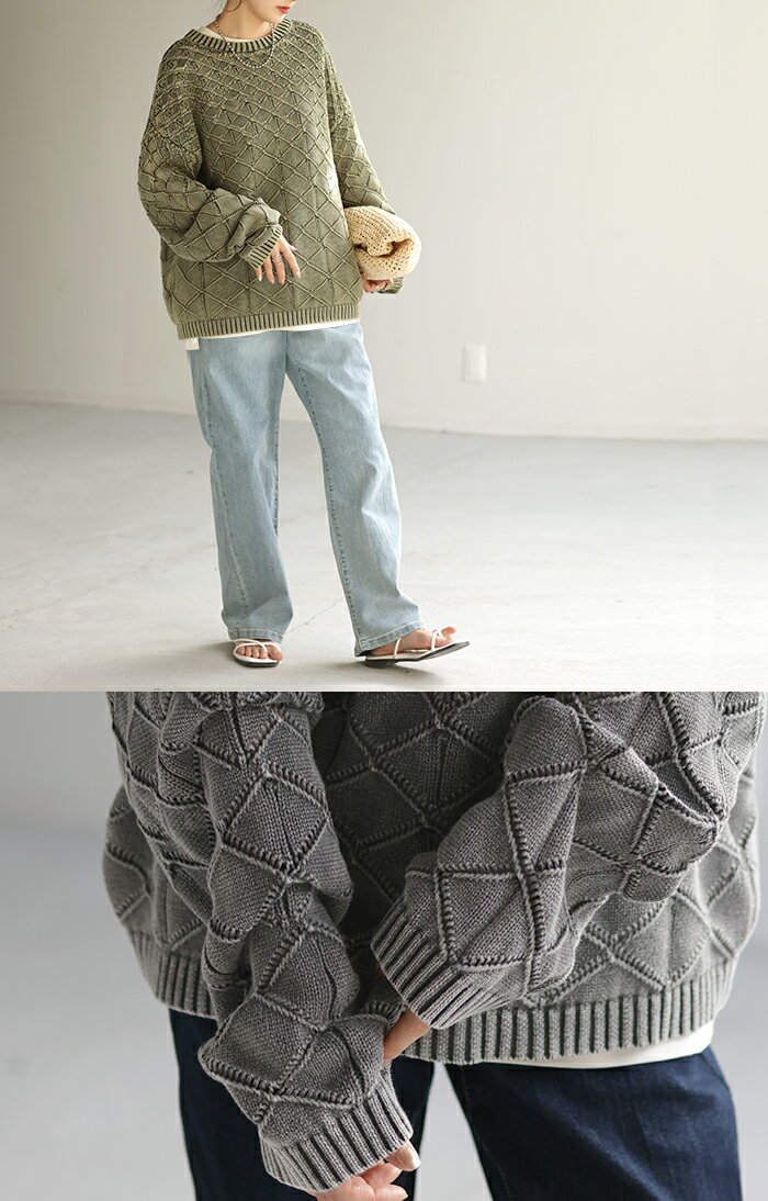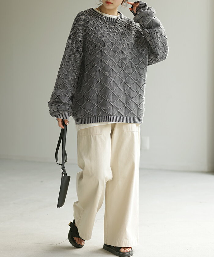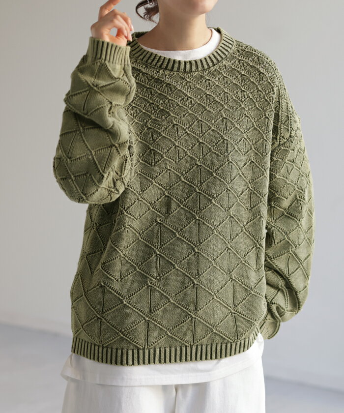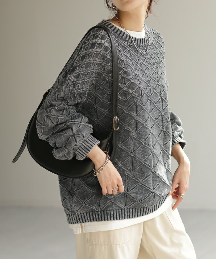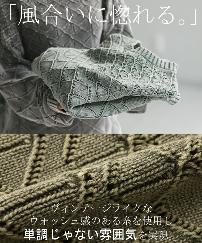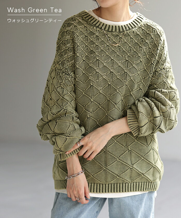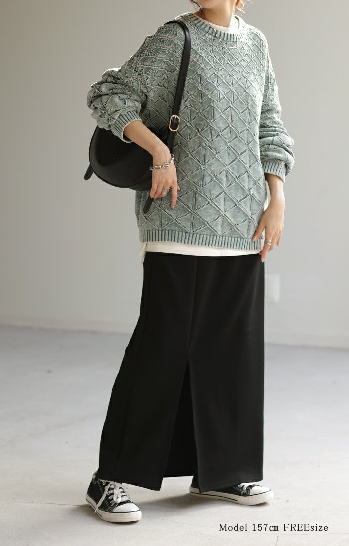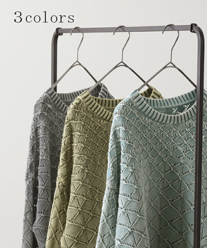 ニット 透かし編み トップス レディース 【即納】 プルオーバー 春ニット セーター 幾何学模様 体型カバー 長袖 二の腕カバー レイヤード ロング Uネック 格子柄 チェック 模様 リブ ゆったり 綿 ヴィンテージ風 大きいサイズ 黒 グレー 青 春 夏 HUG.U