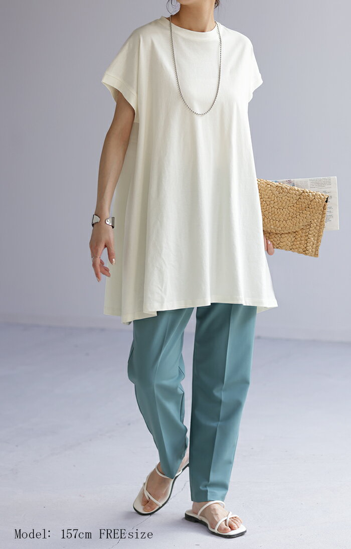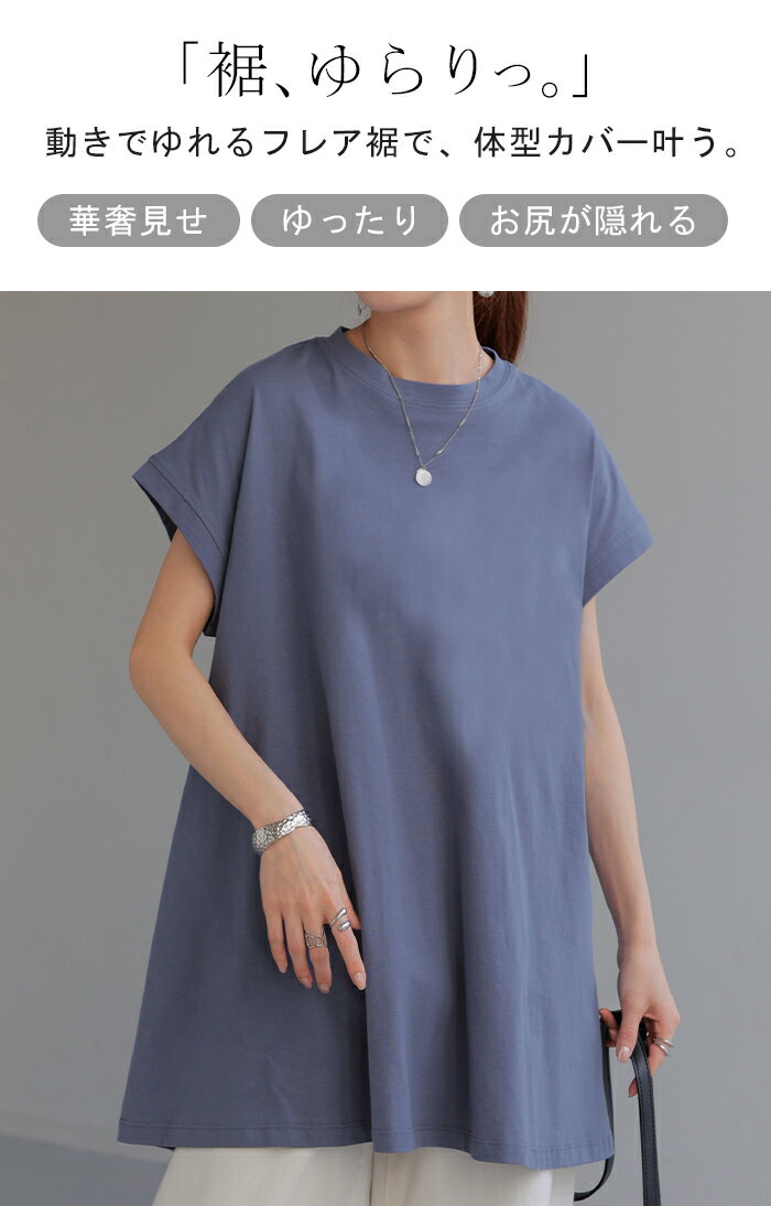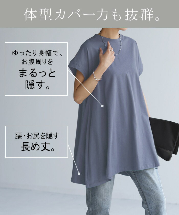 Tシャツ ロング トップス チュニック レディース 【即納】 カットソー Uネック クルーネック ティーシャツ 変形 バックフリル フリル ビッグ 半袖 大きいサイズ ゆったり 変形シルエット モックネック 長め 無地 お尻が隠れる 白 ブラック 春 夏 HUG.U