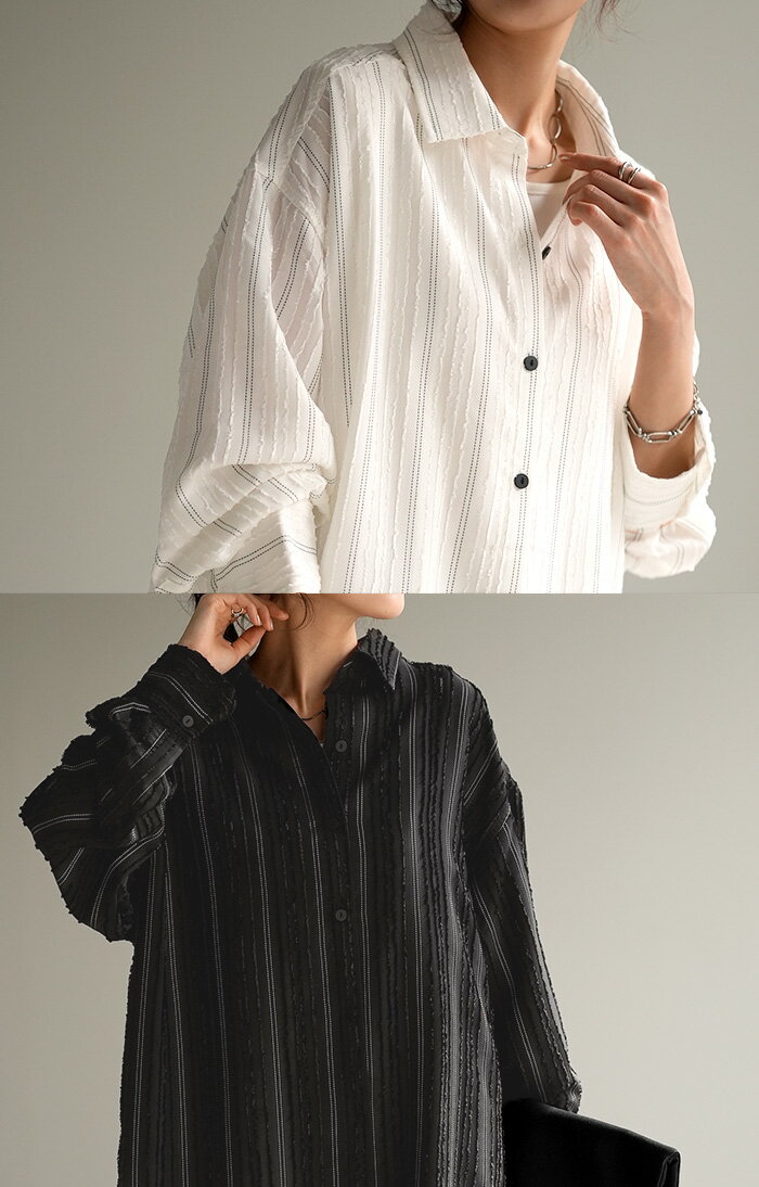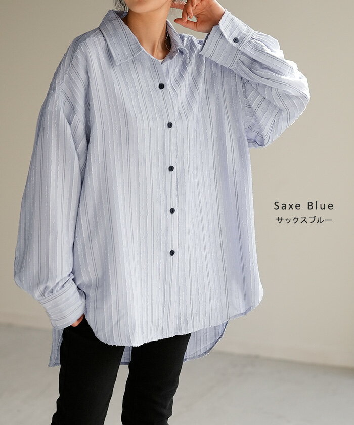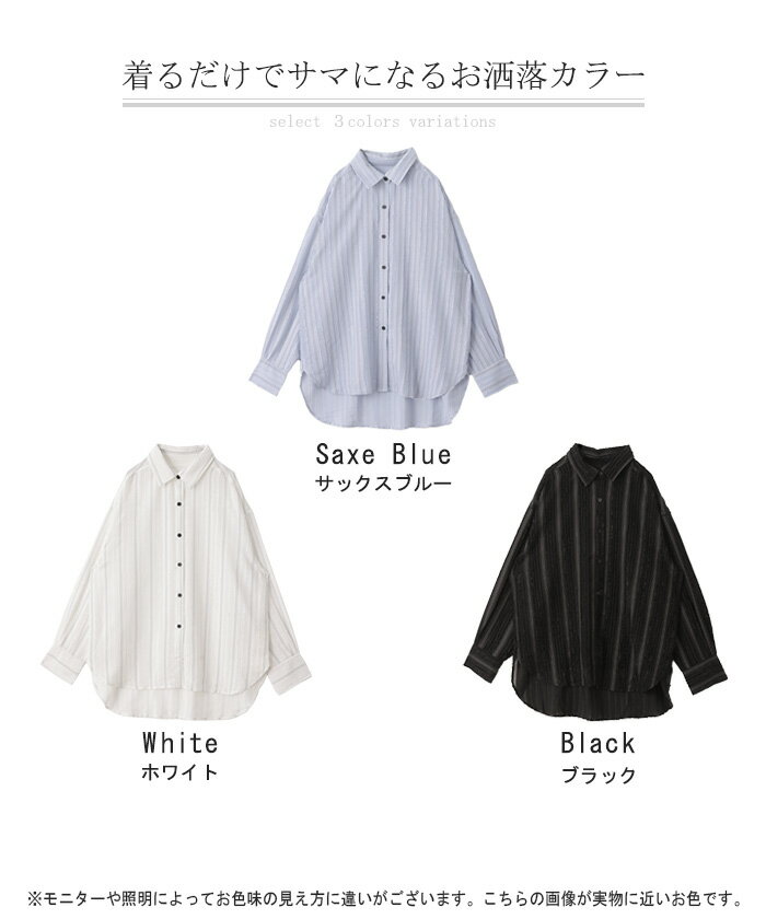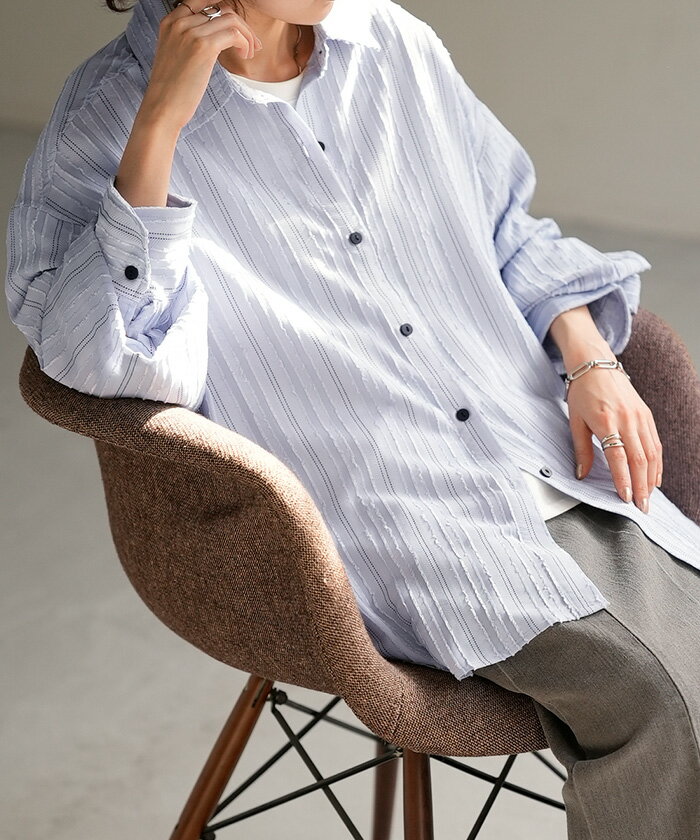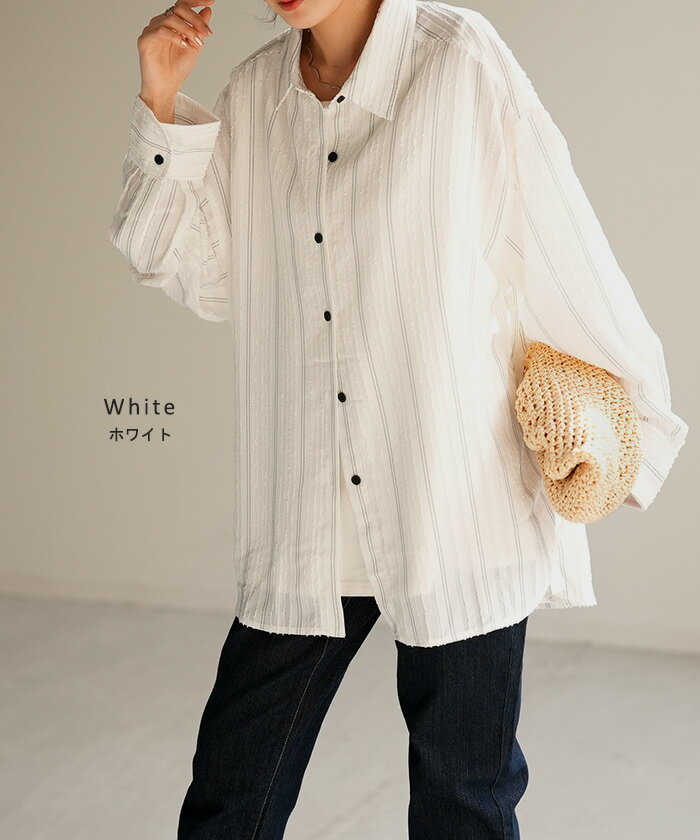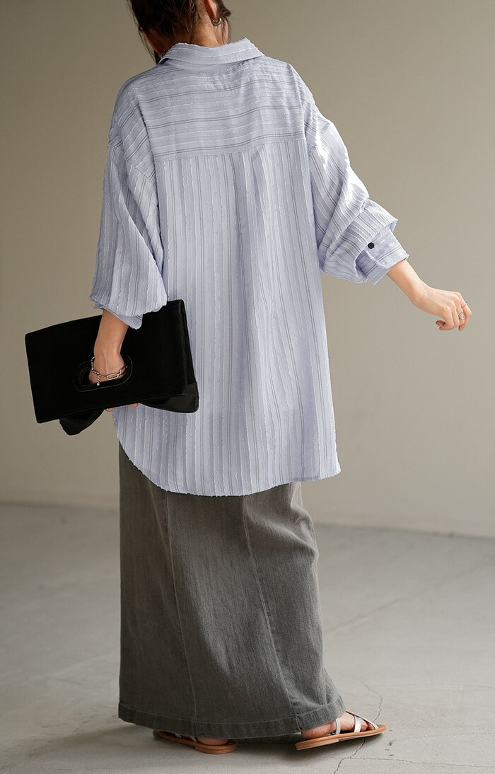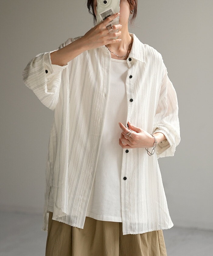 シャツ ストライプ フリンジ 体型カバー シワになりにくい 【即納】 トップス レディース チュニック 長袖 カラーシャツ ストライプシャツ シアー 長い 大きいサイズ ドルマン ロングシャツ ロング ブラウス 重ね着 羽織 オーバーサイズ ビッグ 白 秋 冬 HUG.U
