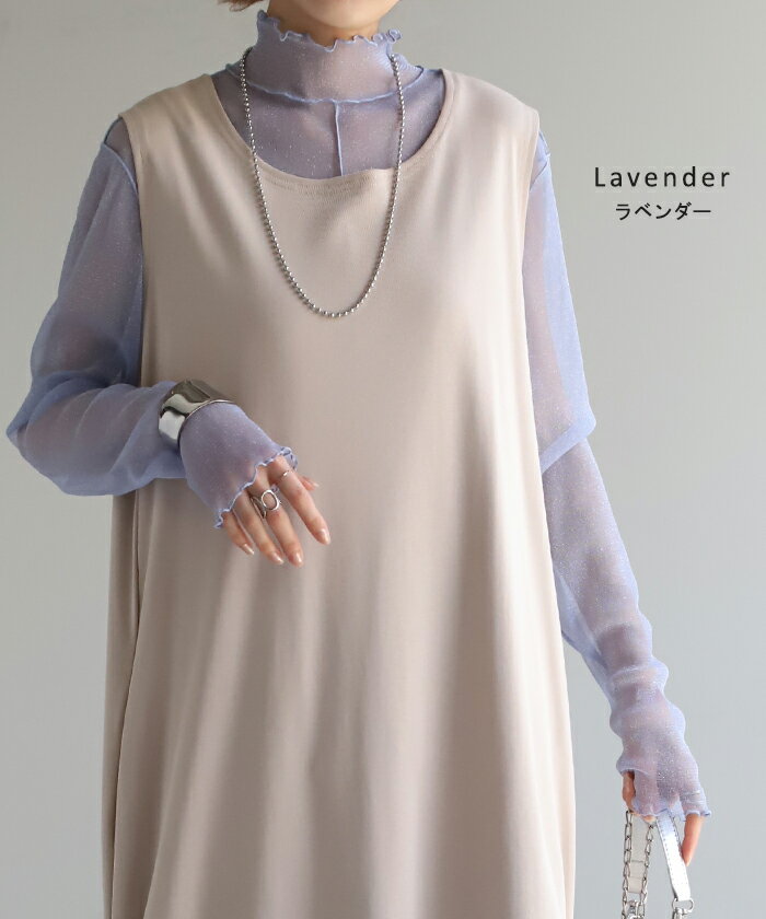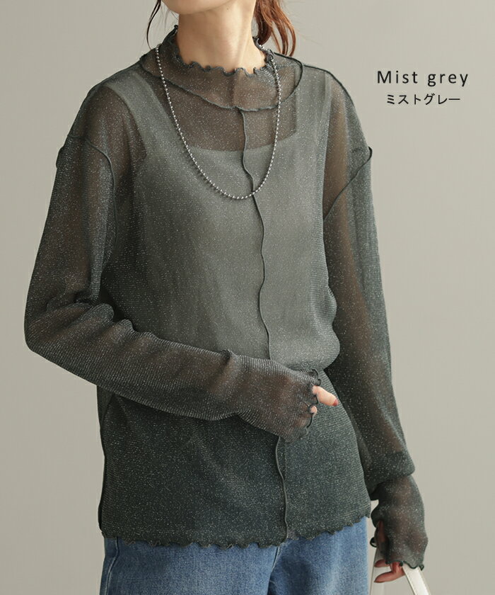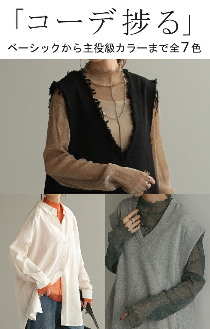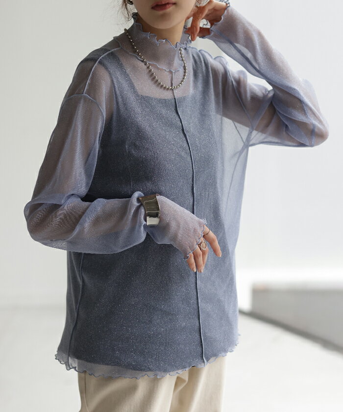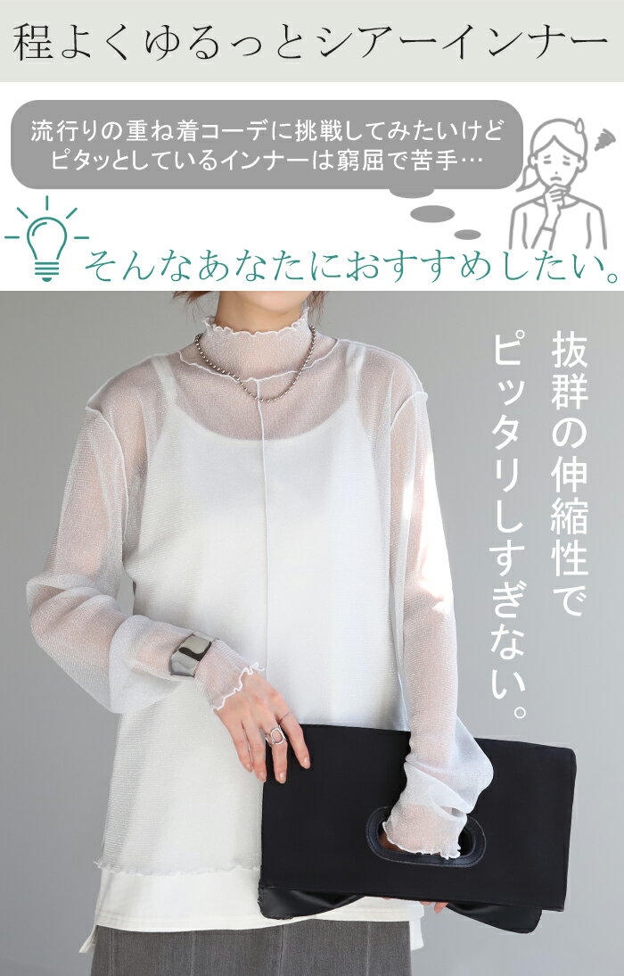 シアートップス メロウ レイヤード レディース トップス ラメ シアー シースルー シアーインナー インナー 無地 薄手 ロング メッシュ パイピング ハイネック 長袖 二の腕カバー きれいめ 体型カバー 重ね着 大きいサイズ 黒 ブルー 春 夏HUG.U