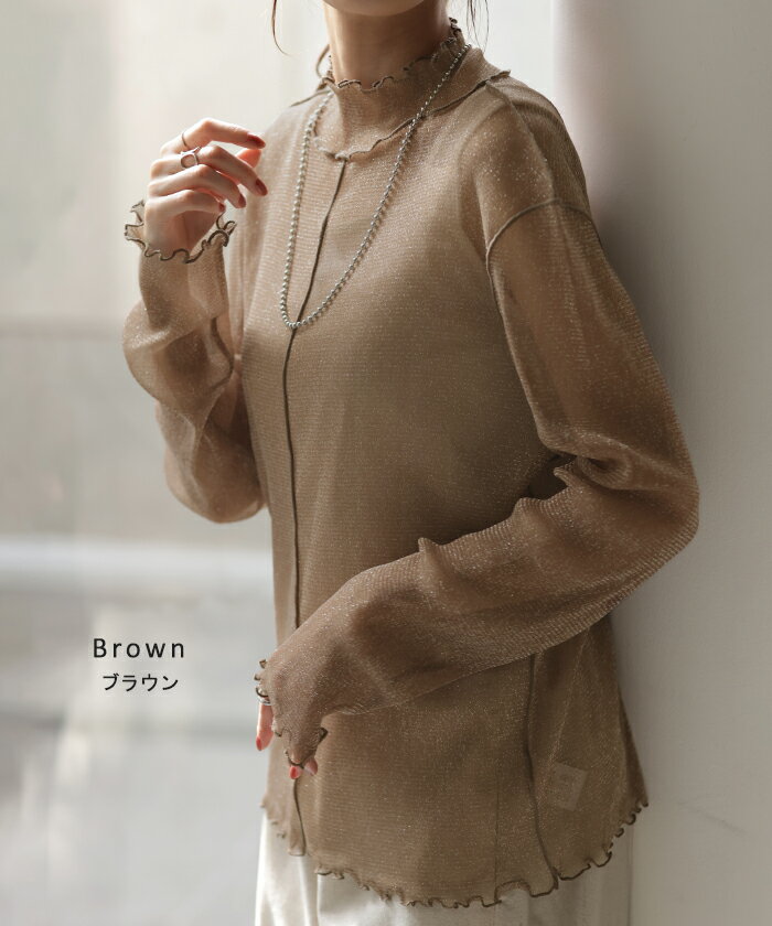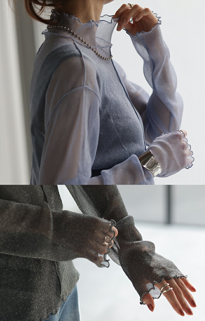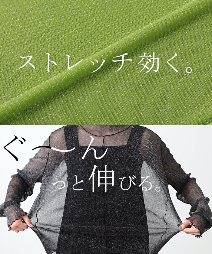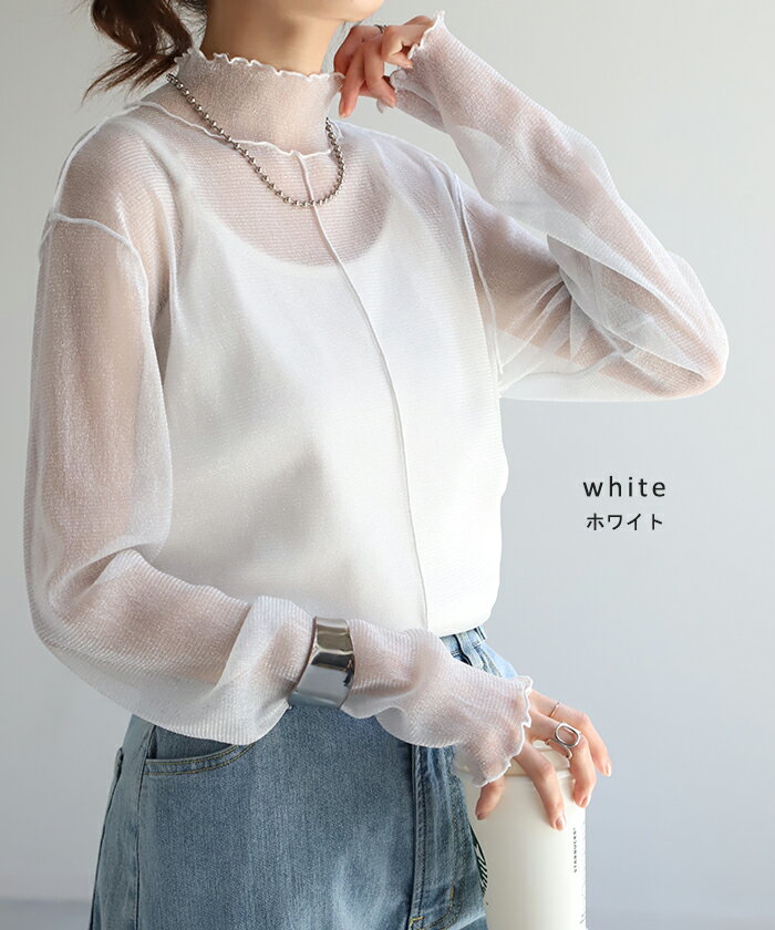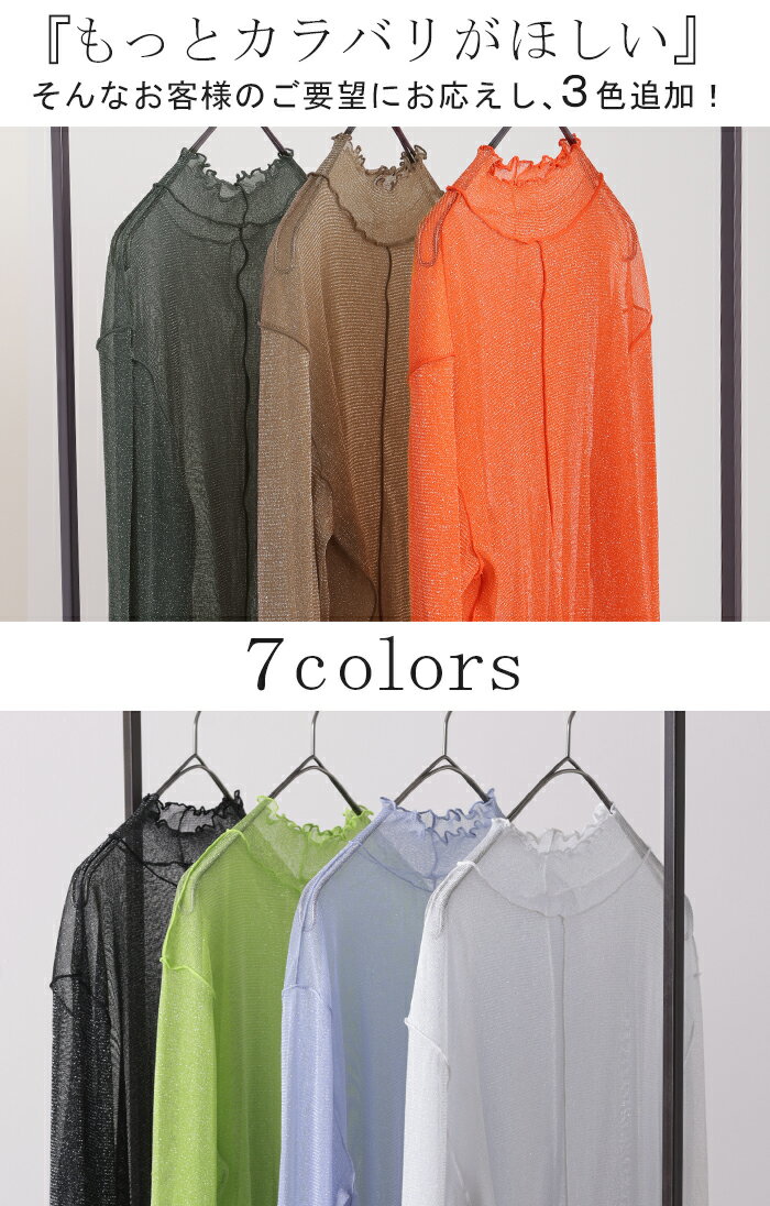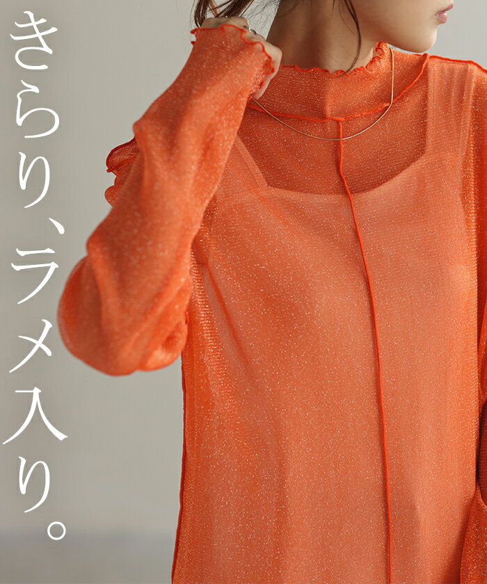 シアートップス メロウ レイヤード レディース トップス ラメ シアー シースルー シアーインナー インナー 無地 薄手 ロング メッシュ パイピング ハイネック 長袖 二の腕カバー きれいめ 体型カバー 重ね着 大きいサイズ 黒 ブルー 春 夏HUG.U