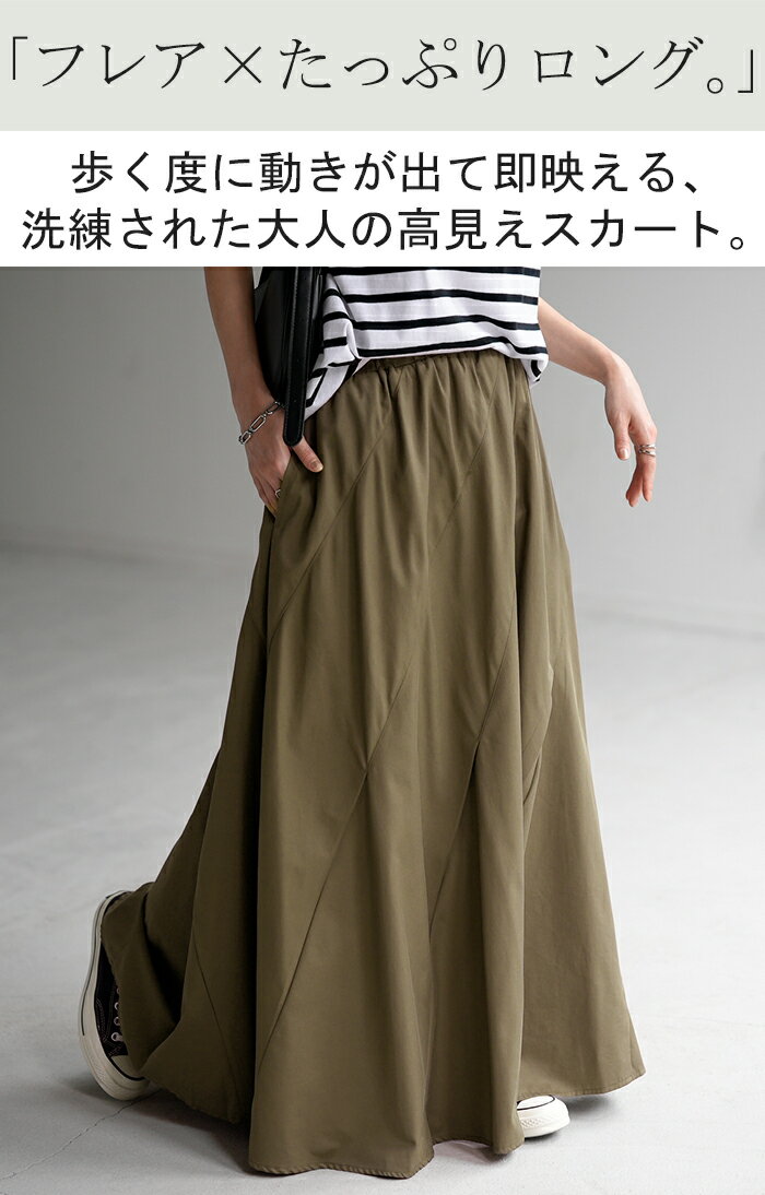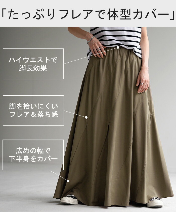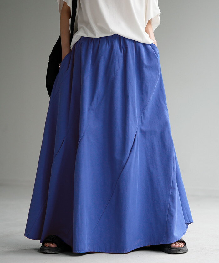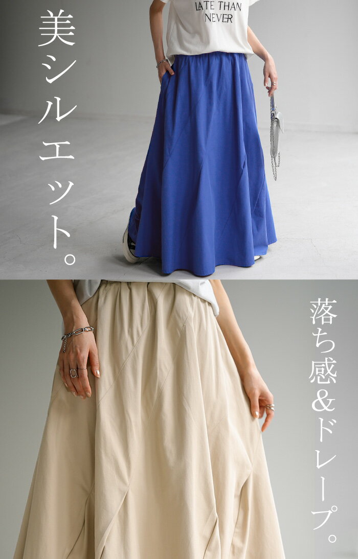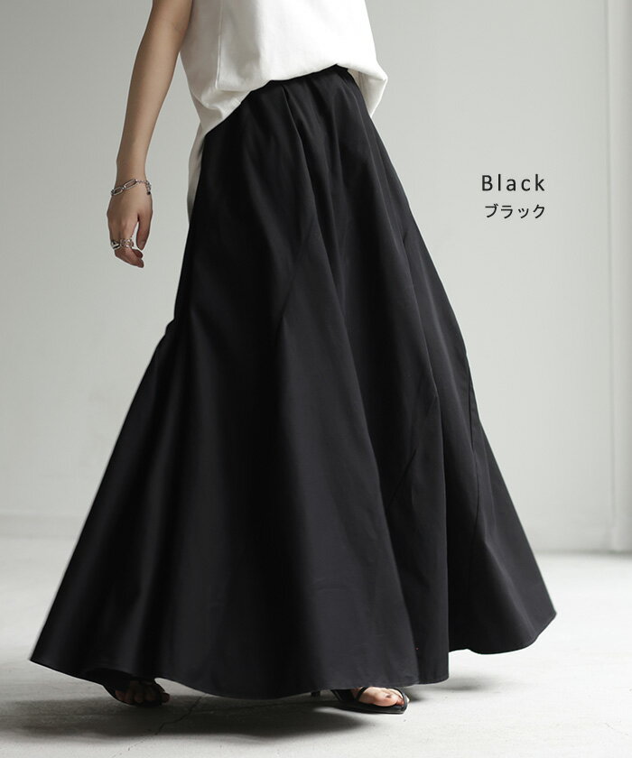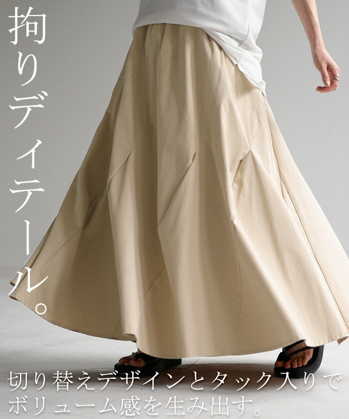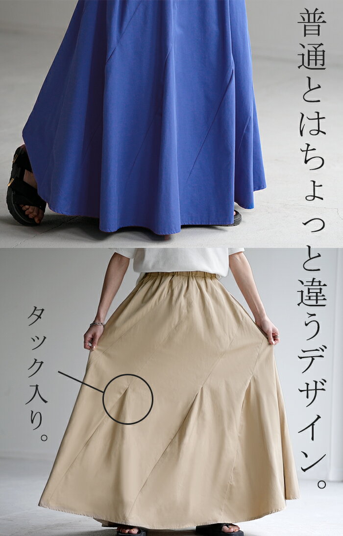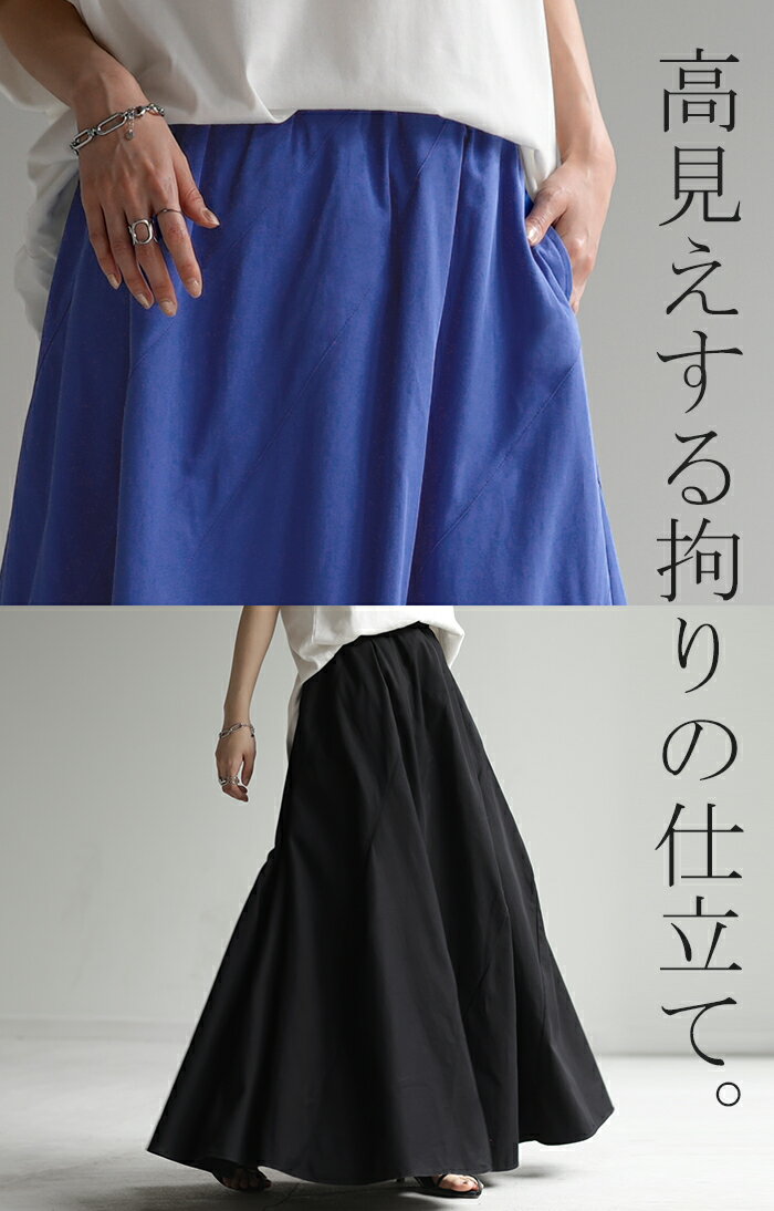 スカート ロング フレア レディース 【あす楽】 タック フレアスカート 体型カバー ポケット ボリューム 切り替えデザイン 裏地 ウエストゴム ハイウエスト タック入りスカート ロングスカート マキシスカート ボトムス Aライン 大きいサイズ ブルー 黒 春 夏 HUG.U