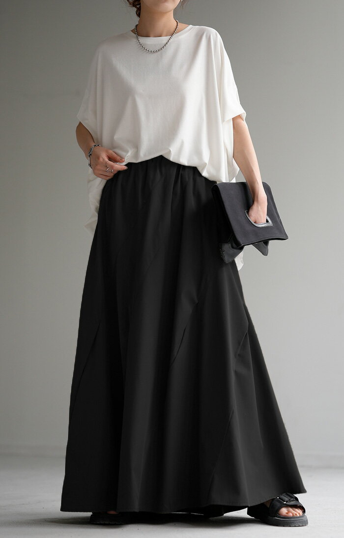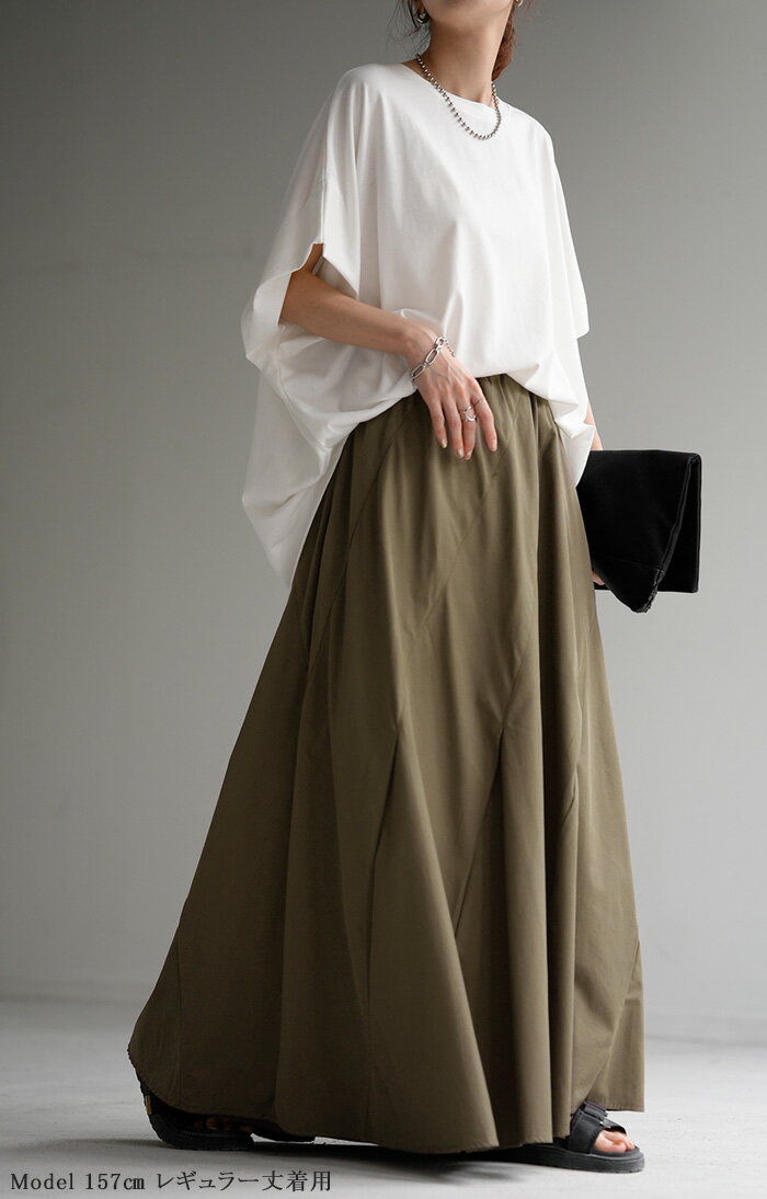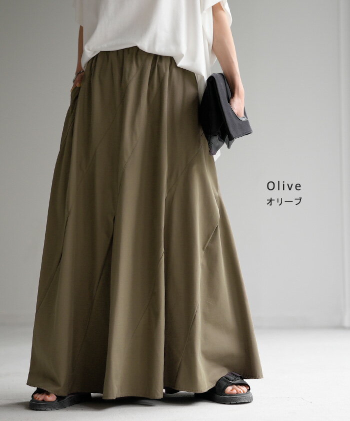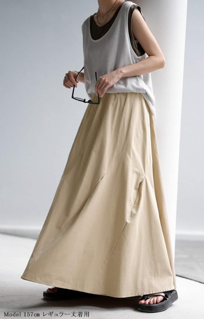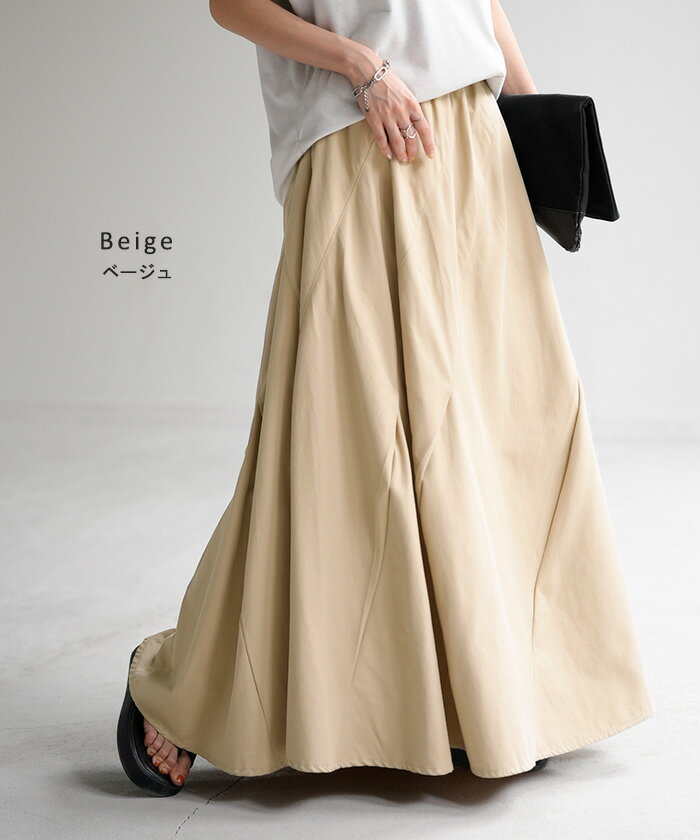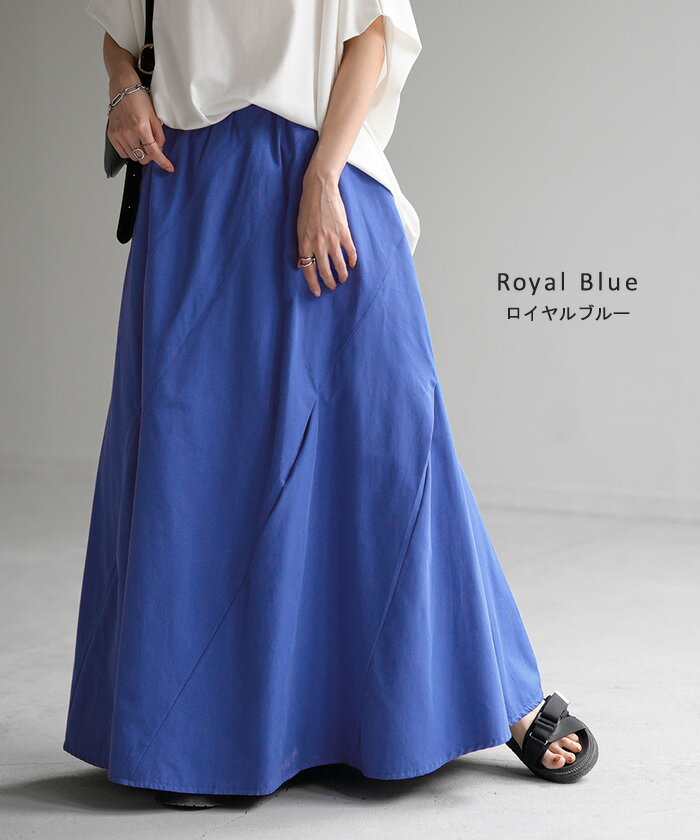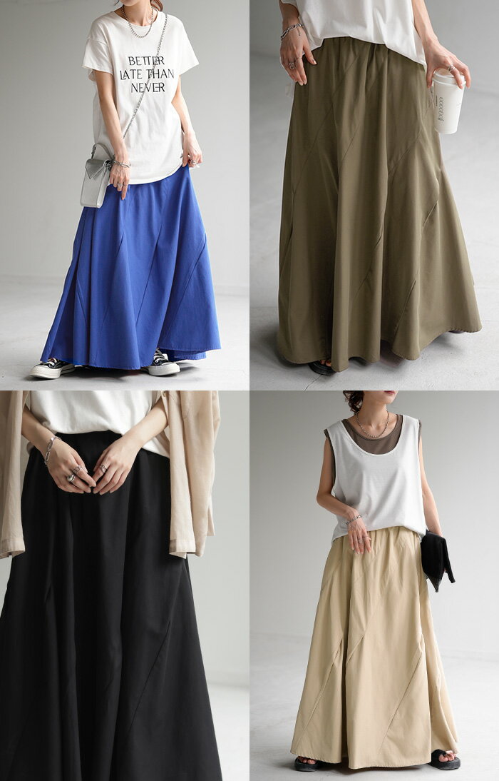 スカート ロング フレア レディース 【あす楽】 タック フレアスカート 体型カバー ポケット ボリューム 切り替えデザイン 裏地 ウエストゴム ハイウエスト タック入りスカート ロングスカート マキシスカート ボトムス Aライン 大きいサイズ ブルー 黒 春 夏 HUG.U