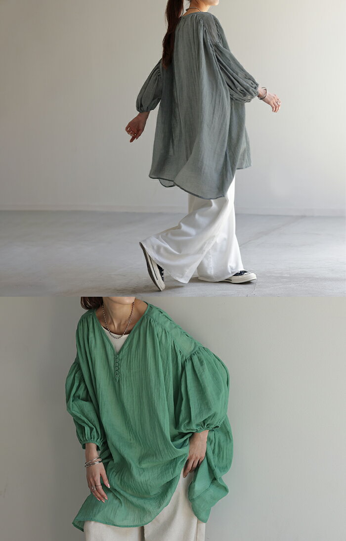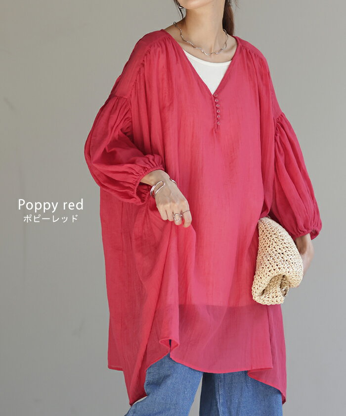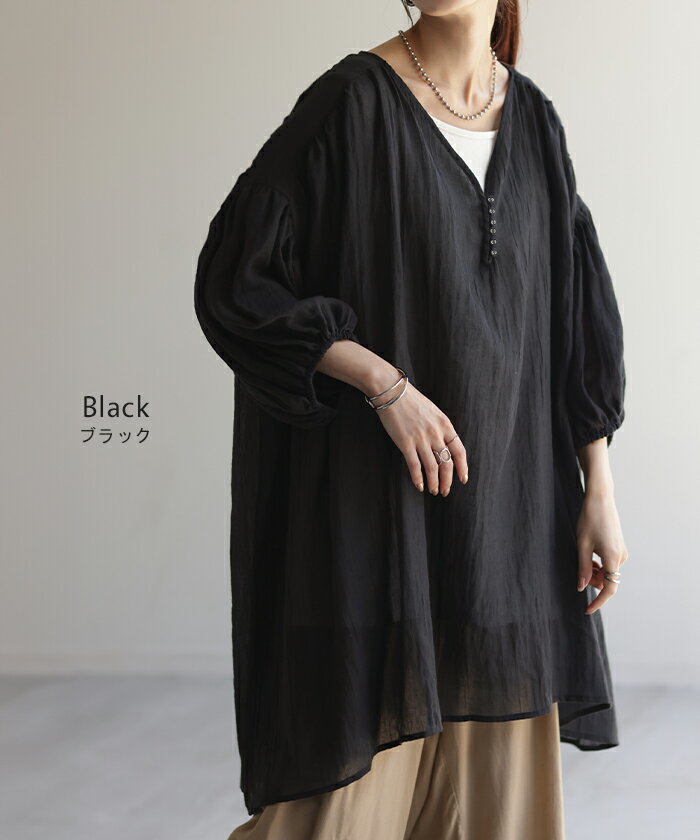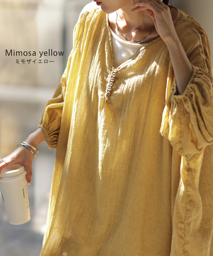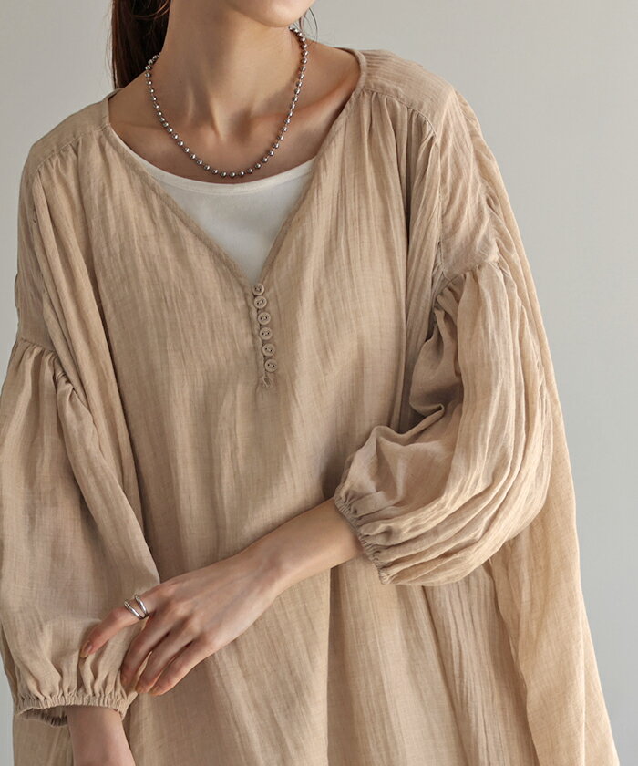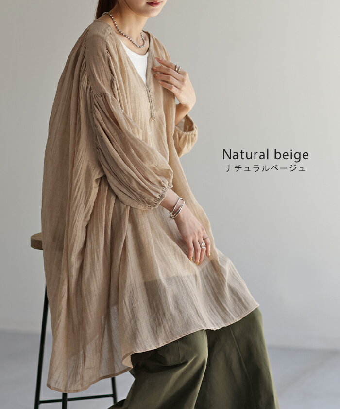 シャツ ナチュラル スキッパー チュニック 【あす楽】 バンドカラー トップス レディース ギャザー ロングシャツ 長袖 半袖 ノーカラー ロング ブラウス シャツワンピ シボ感 ゆる 体型カバー 長い オーバーサイズ 大きいサイズ きれいめ 無地 白 春 夏 HUG.U