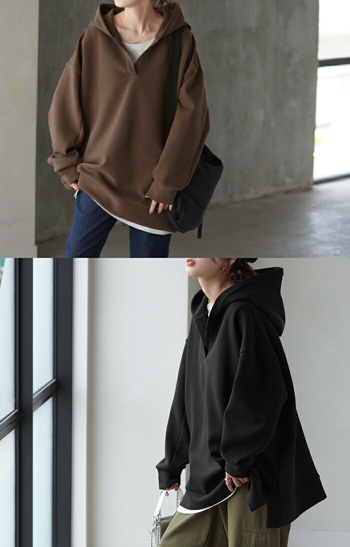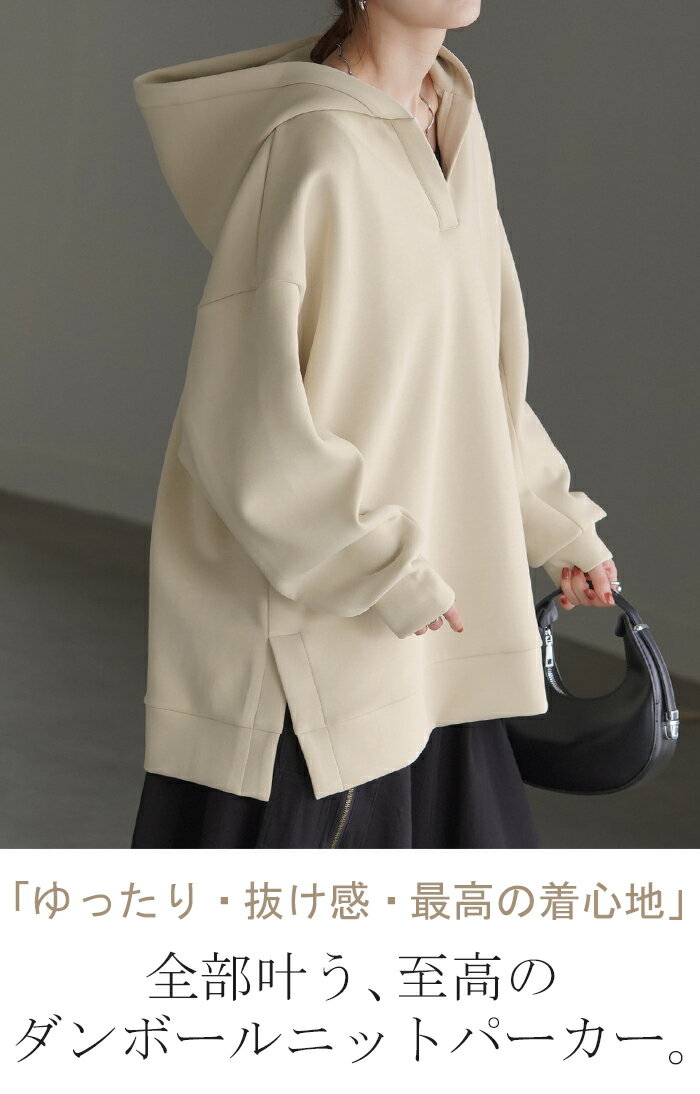 パーカー レディース ニュアンスカラー 【あす楽】 トレーナー ニット ニットパーカー トップス プルオーバー スリット ストレッチ ビッグ ビッグシルエット ビック ドロップショルダー フード フーディー 大きいサイズ 黒 緑 春 夏 HUG.U