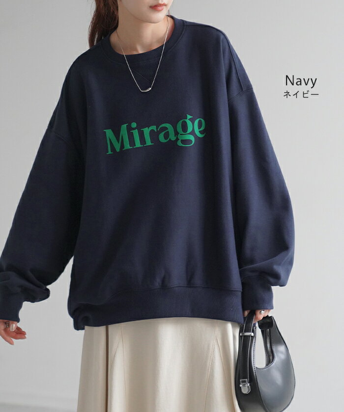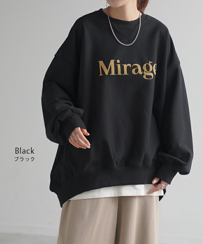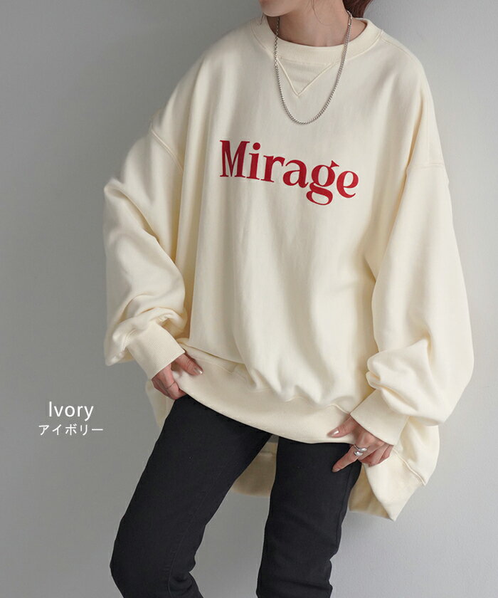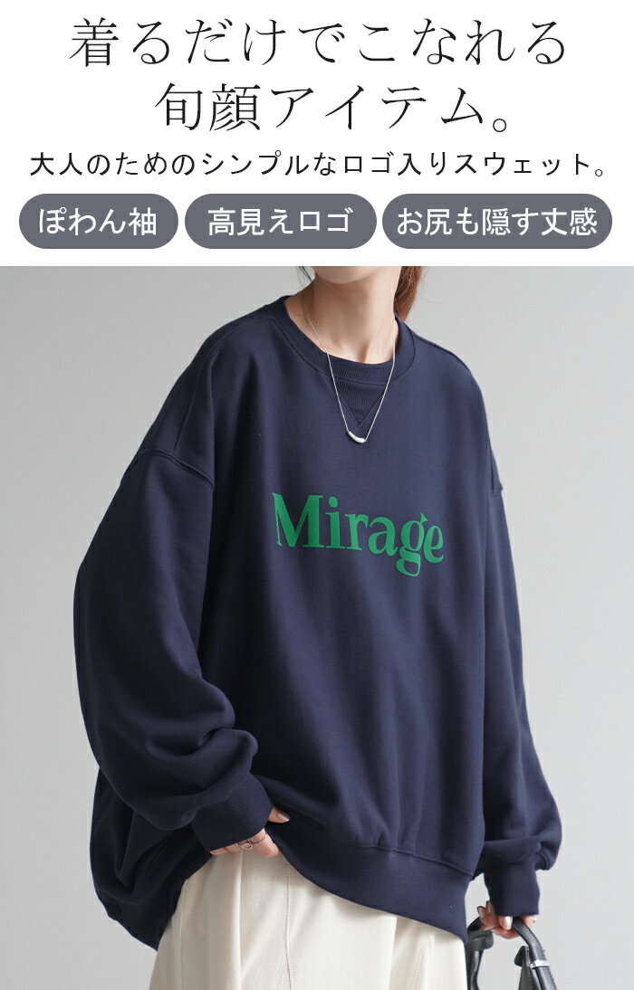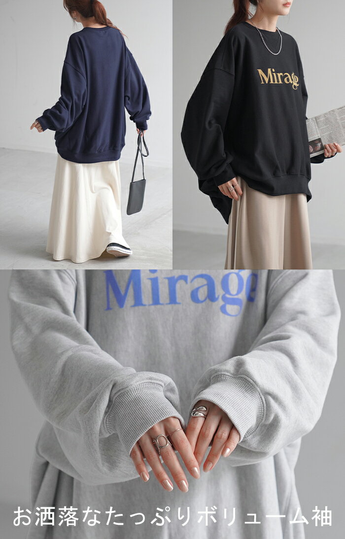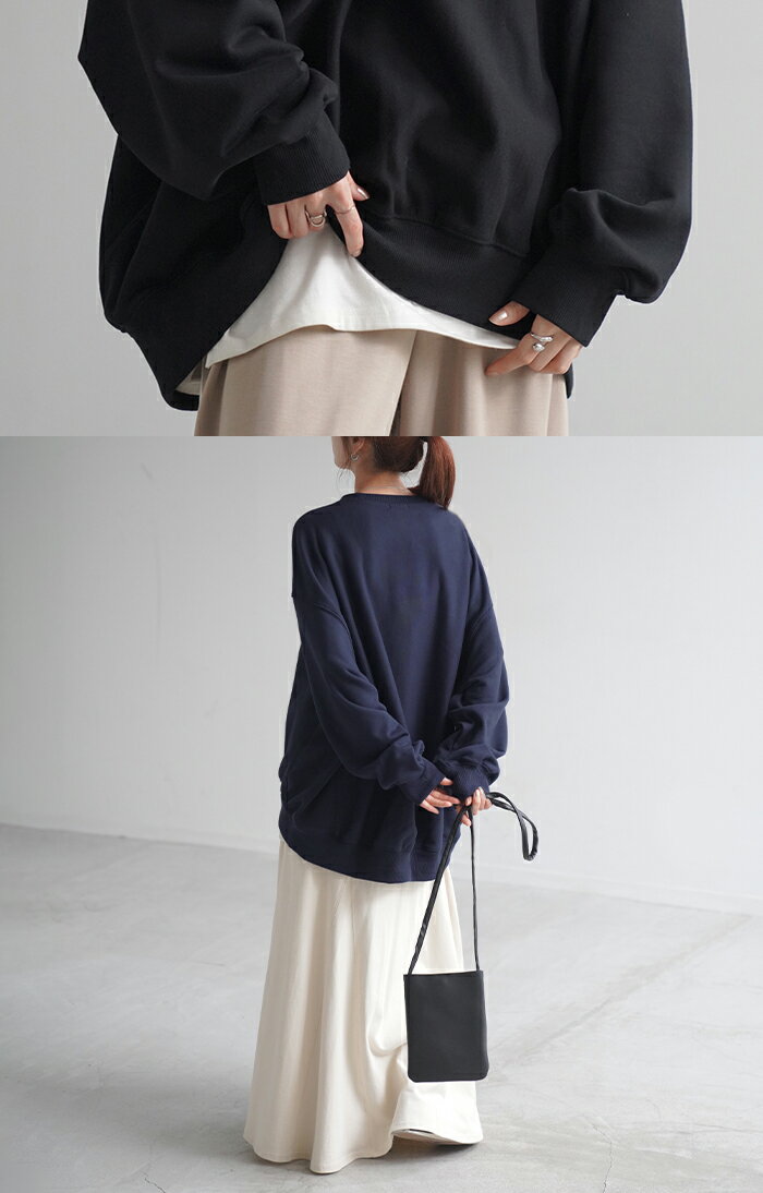 スウェット ロゴ ロング ■9月上旬入荷 レディース トップス 長袖 Uネック ボリュームスリーブ お尻が隠れる ドルマン チュニック ストレッチ ドロップショルダー ルーズ オーバー プリント フロッキー カットソー 長い 大きいサイズ 体型カバー 黒 白 夏 秋 HUG.U