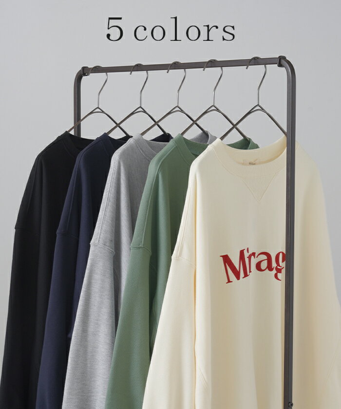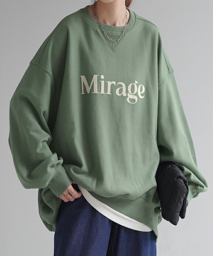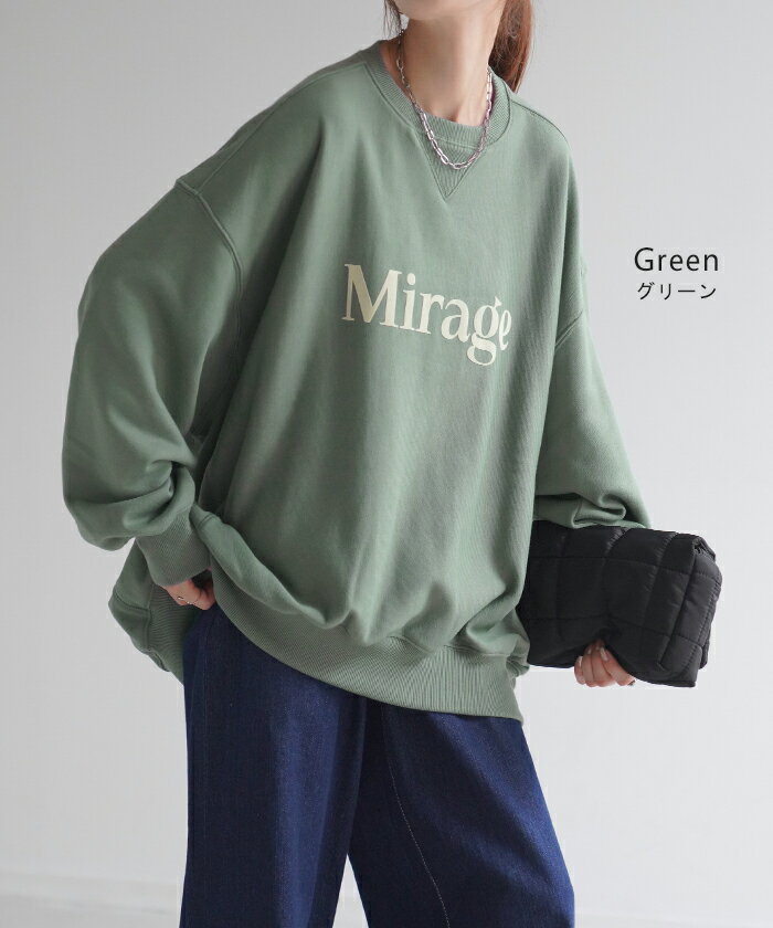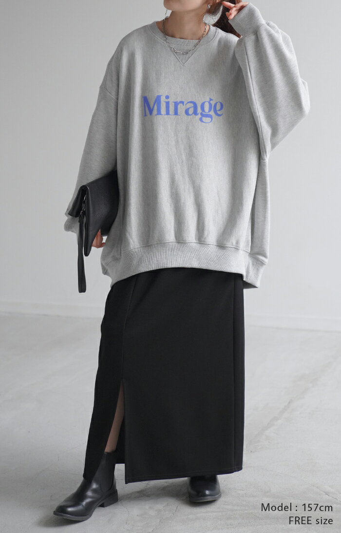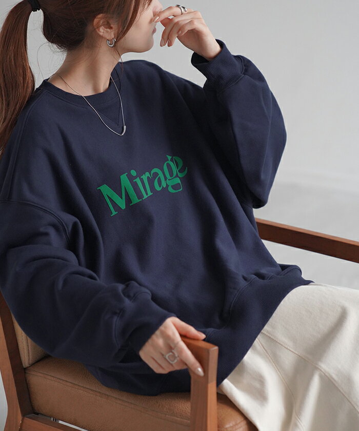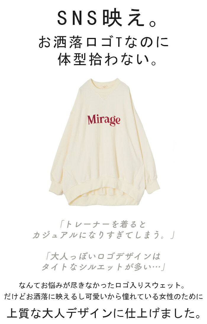 スウェット ロゴ ロング ■9月上旬入荷 レディース トップス 長袖 Uネック ボリュームスリーブ お尻が隠れる ドルマン チュニック ストレッチ ドロップショルダー ルーズ オーバー プリント フロッキー カットソー 長い 大きいサイズ 体型カバー 黒 白 夏 秋 HUG.U