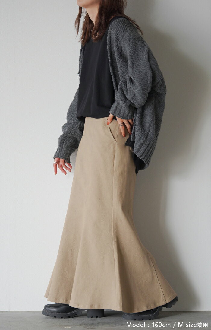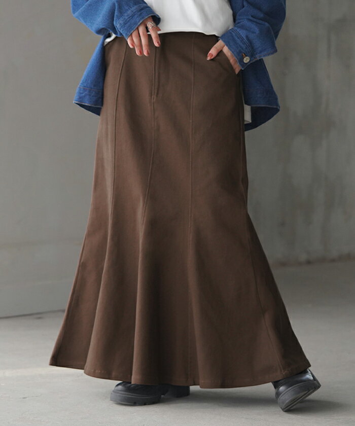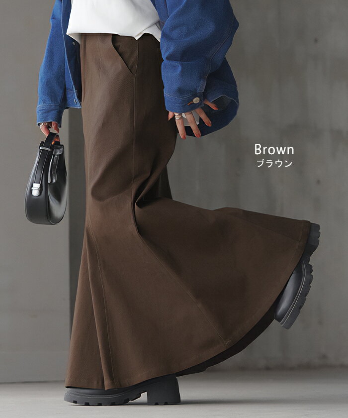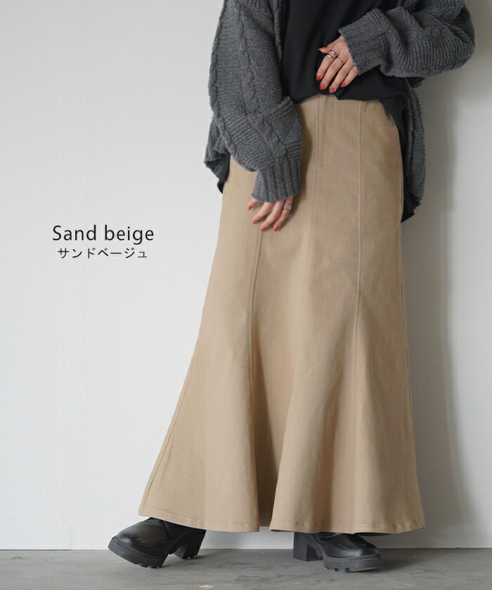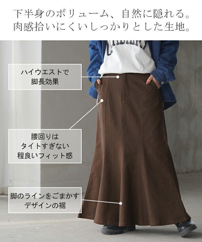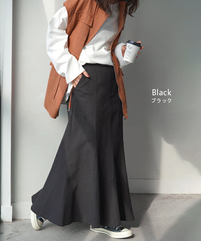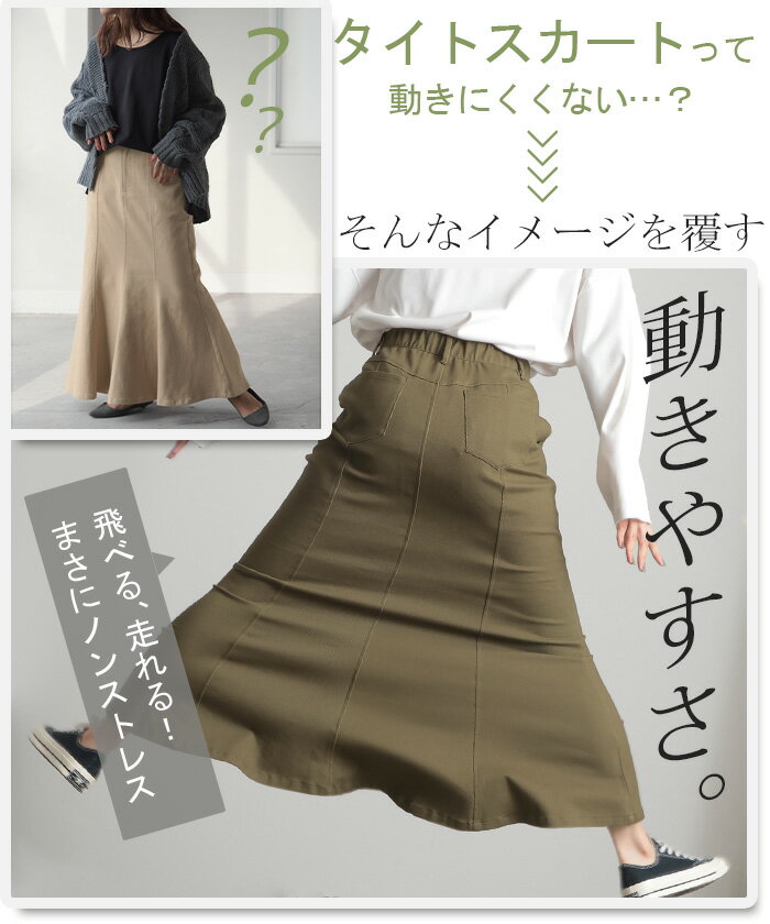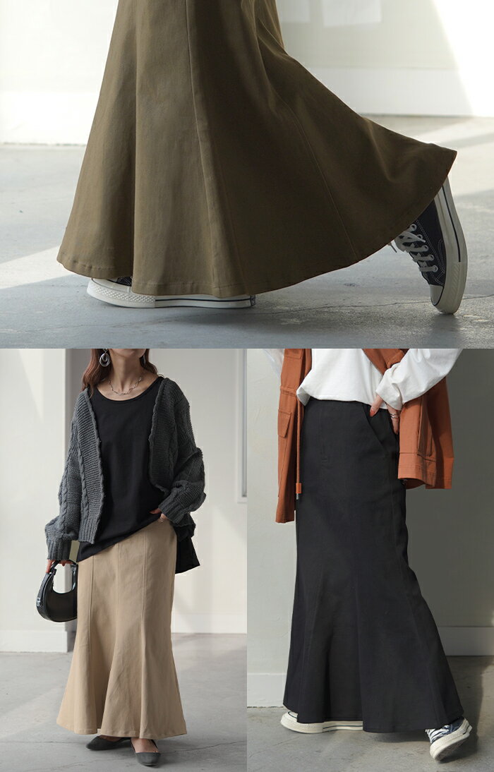 スカート マーメイド ロング チノ 【即納】 レディース ボトムス 無地 フレア フレアスカート ハイウエスト ウエストゴム マキシ マキシスカート ロングスカート マーメイドスカート 大きいサイズ 体型カバー ゆったり ミリタリー 上品 カーキ 黒 冬 秋 HUG.U