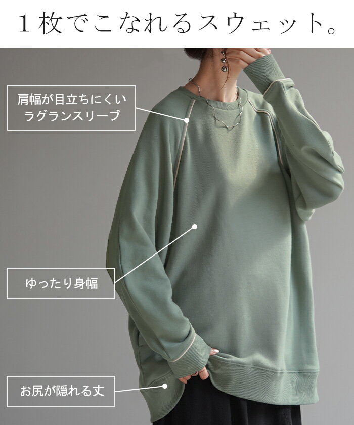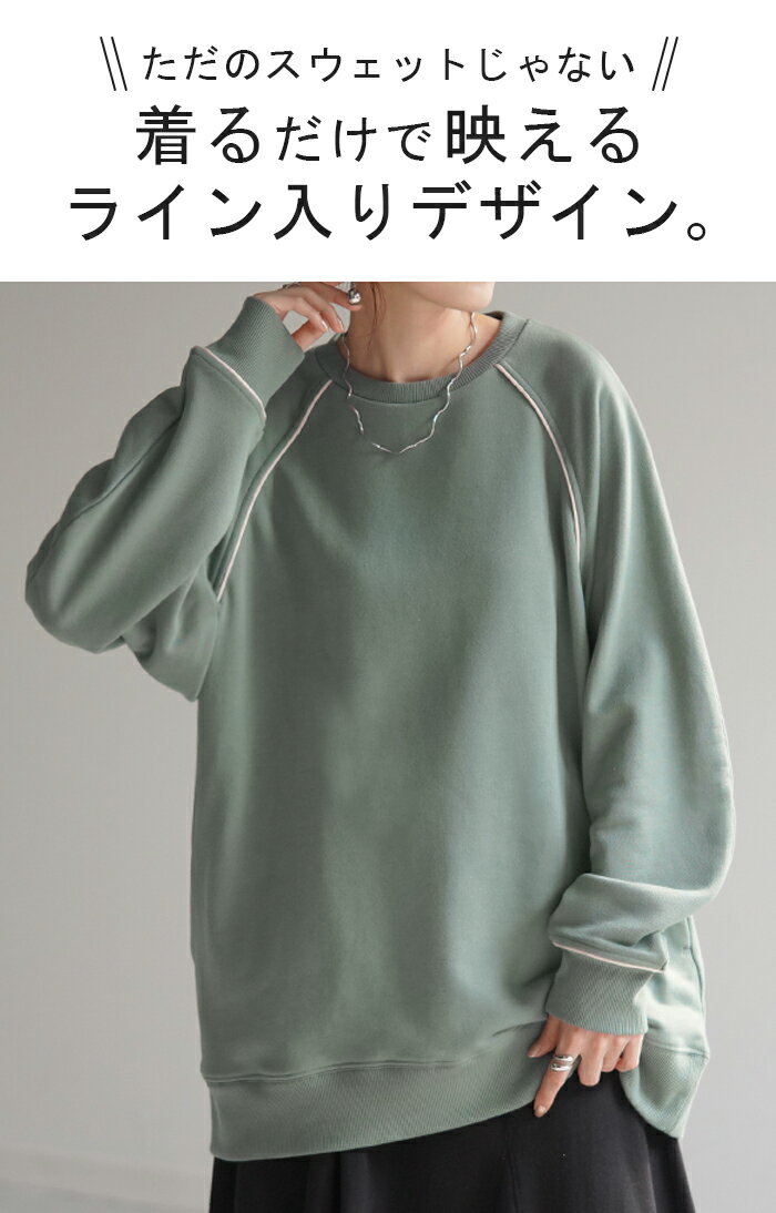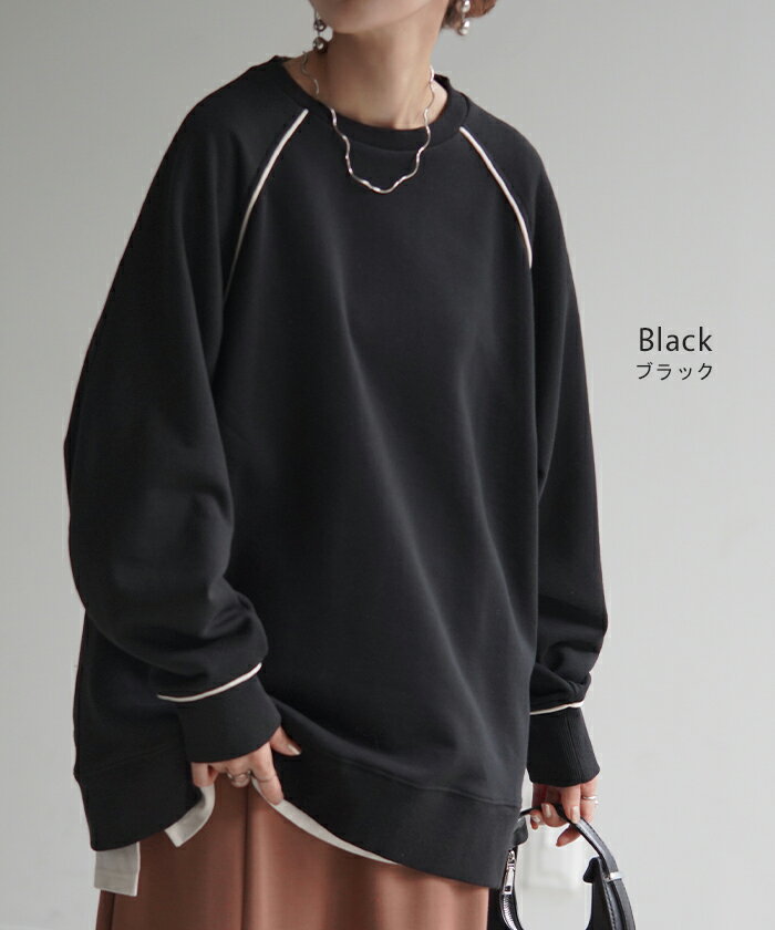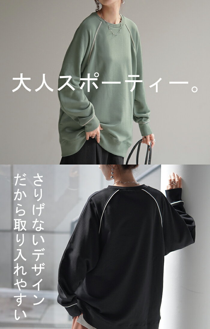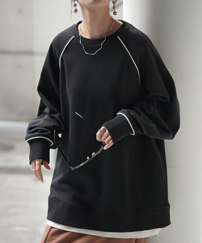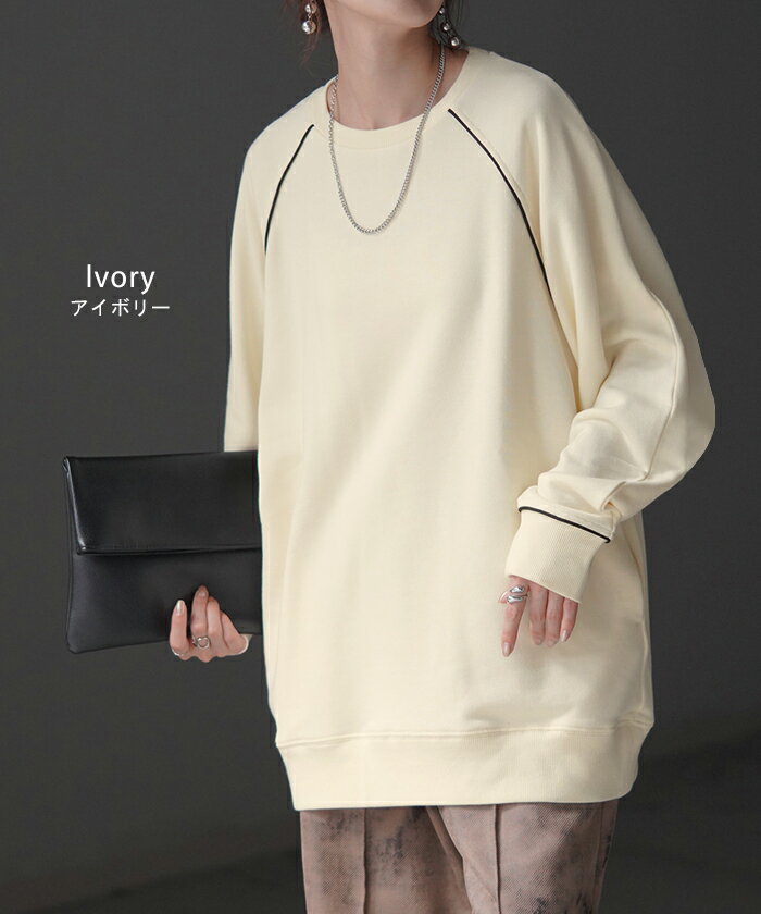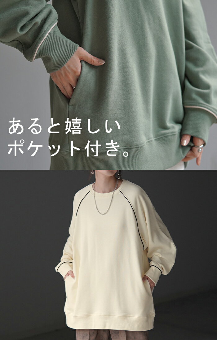 スウェット 配色 ロング レディース 【あす楽】 トップス お尻が隠れる ラグランスリーブ チュニック 無地 ライン 線 ポケット ドルマン 長い オーバー ロンT カットソー 綿 混 リブ 長袖 大きいサイズ 体型カバー トレーナー カジュアル 黒 白 夏 秋 HUG.U
