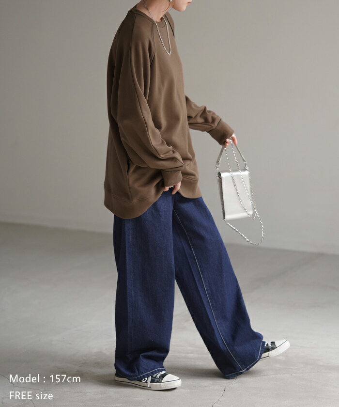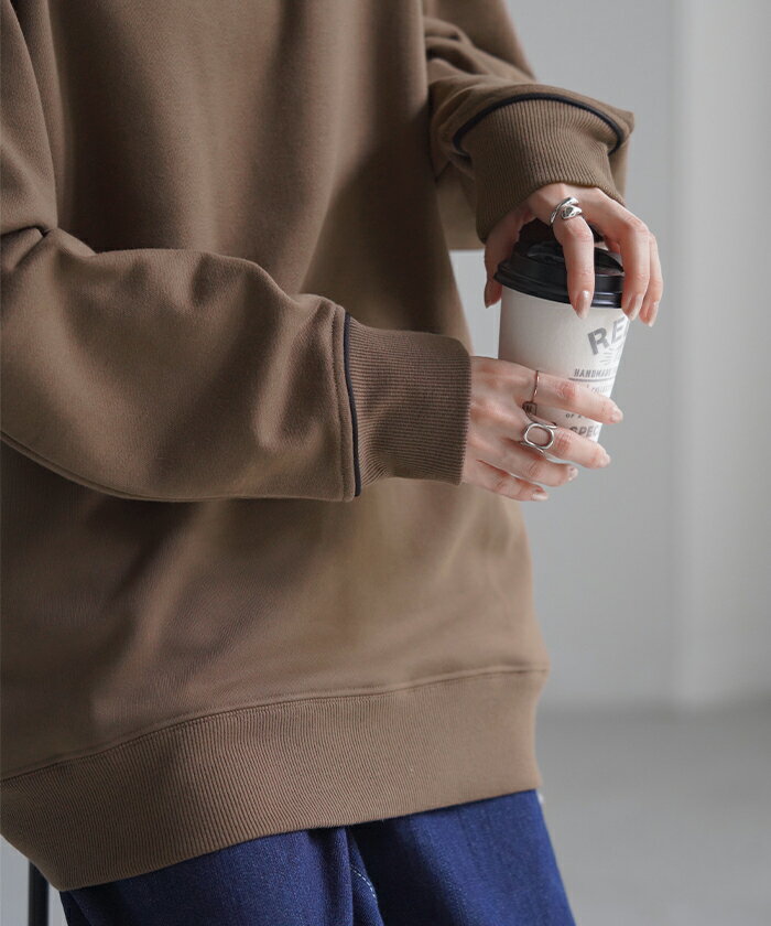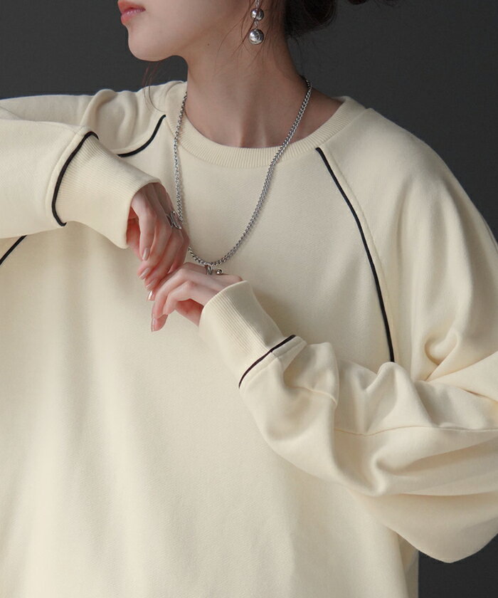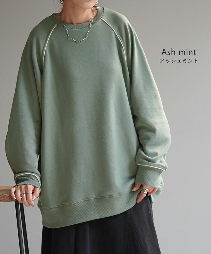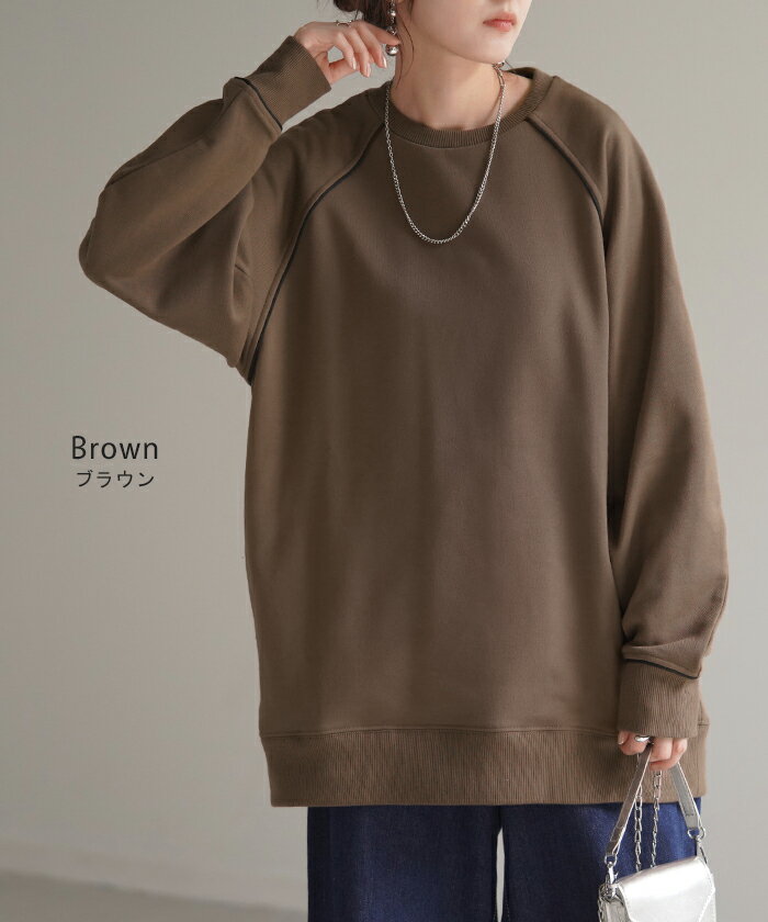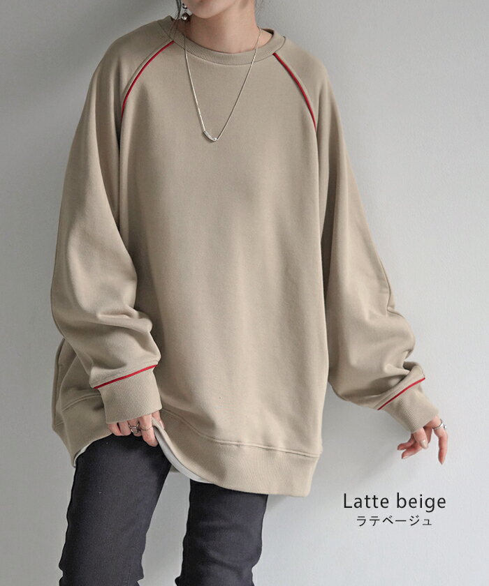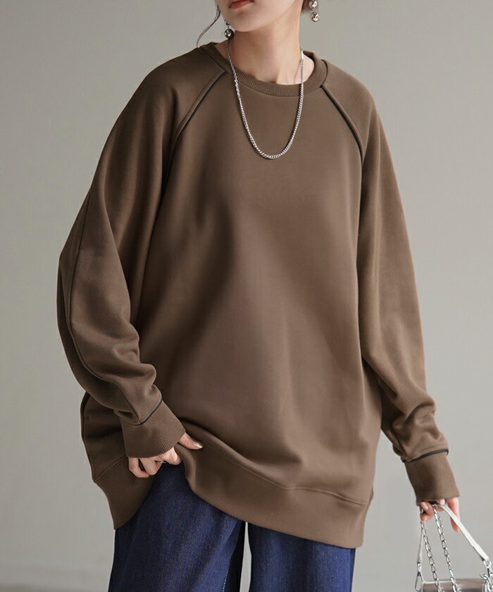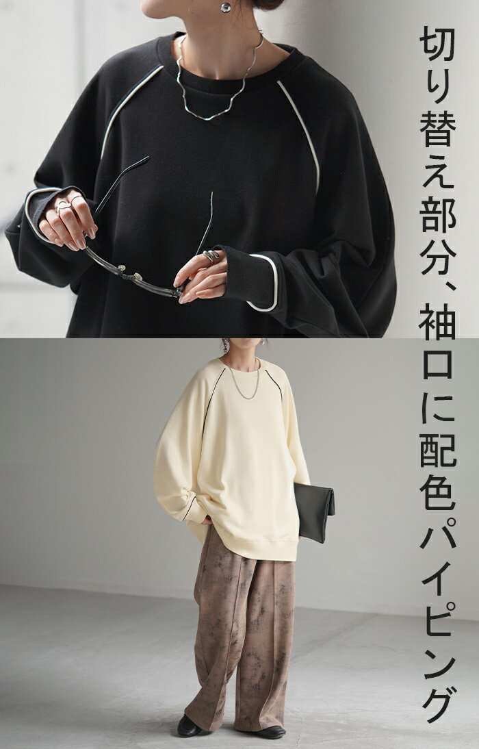 スウェット 配色 ロング レディース 【あす楽】 トップス お尻が隠れる ラグランスリーブ チュニック 無地 ライン 線 ポケット ドルマン 長い オーバー ロンT カットソー 綿 混 リブ 長袖 大きいサイズ 体型カバー トレーナー カジュアル 黒 白 夏 秋 HUG.U