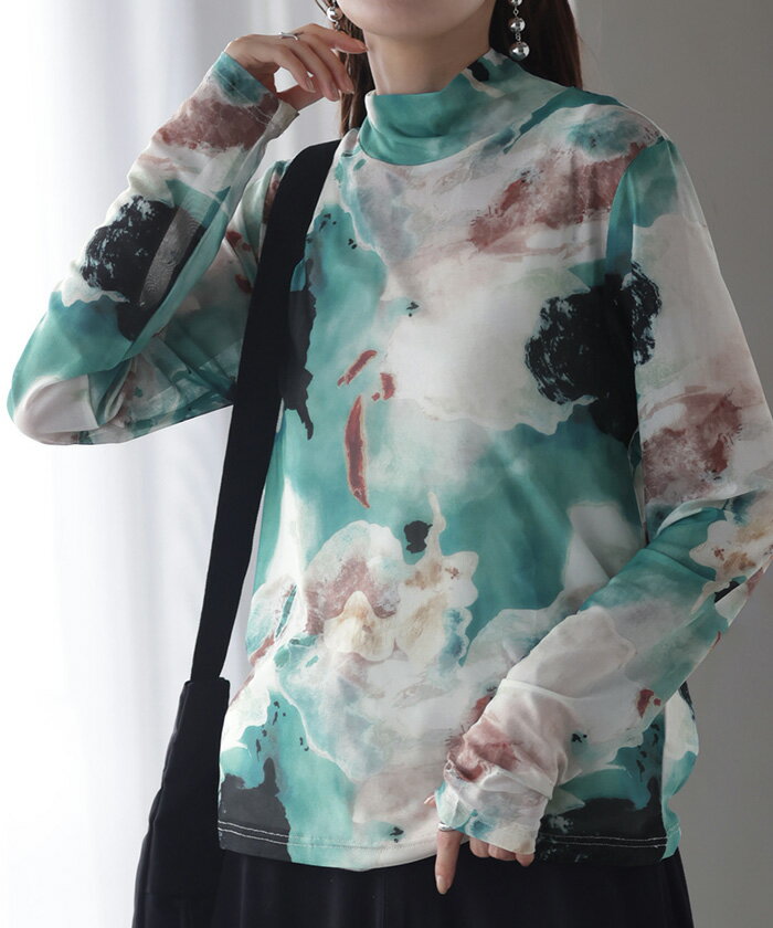 シースルーインナー レディース トップス 【即納】 シアー シアートップス シースルー レイヤード ハイネック インナー 長袖 透け 重ね着 薄手 タートル タートルネック ロング 柄 派手 きれいめ 体型カバー 大きいサイズ ストレッチ 黒 白 青 秋 冬 HUG.U