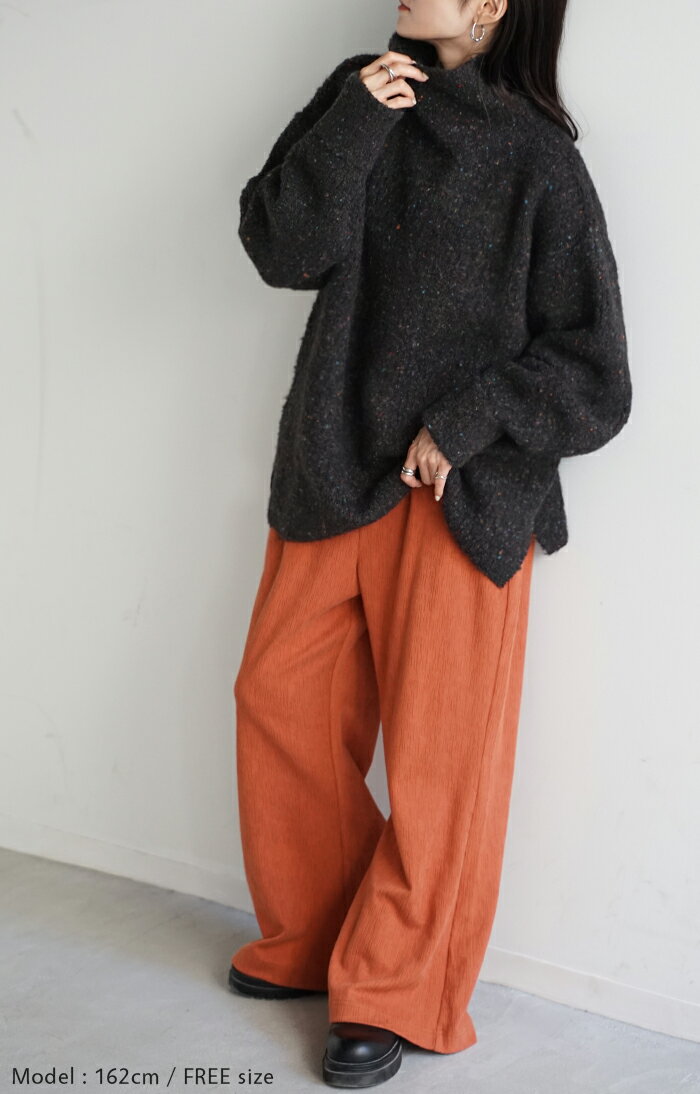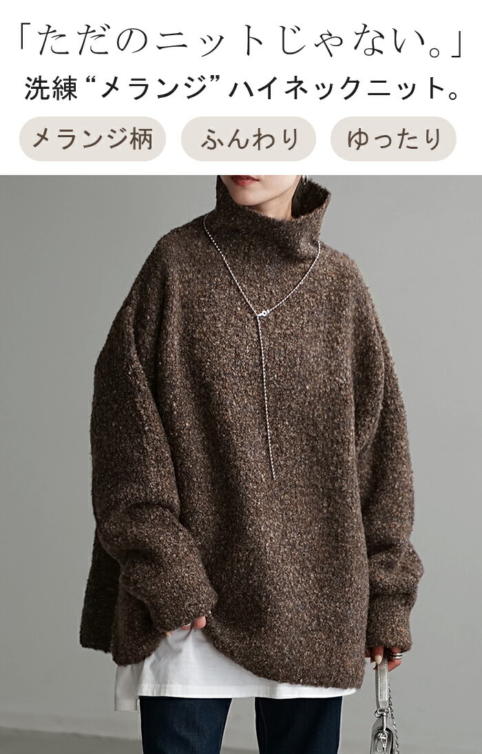 ニット ロング セーター メランジ 【即納】 レディース トップス ドロップショルダー チュニック ロングニット お尻が隠れる ハイネック タートルネック リブ チクチクしない 長袖 オーバーサイズ 体型カバー 大きいサイズ 秋 冬 黒 ベージュ きれいめ HUG.U