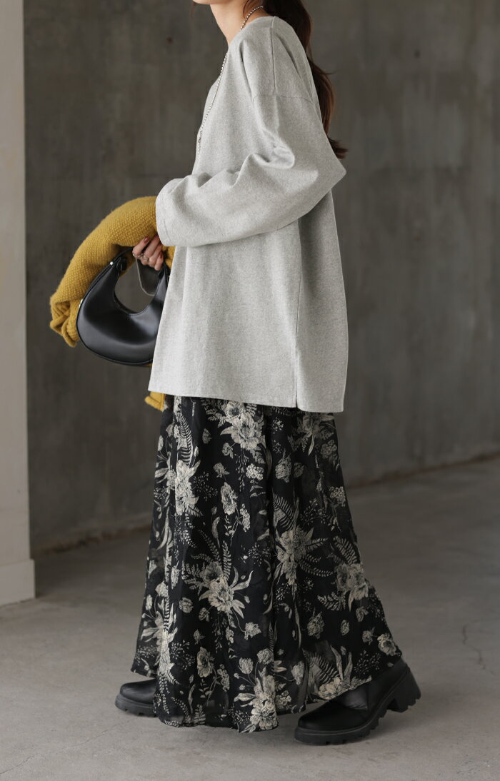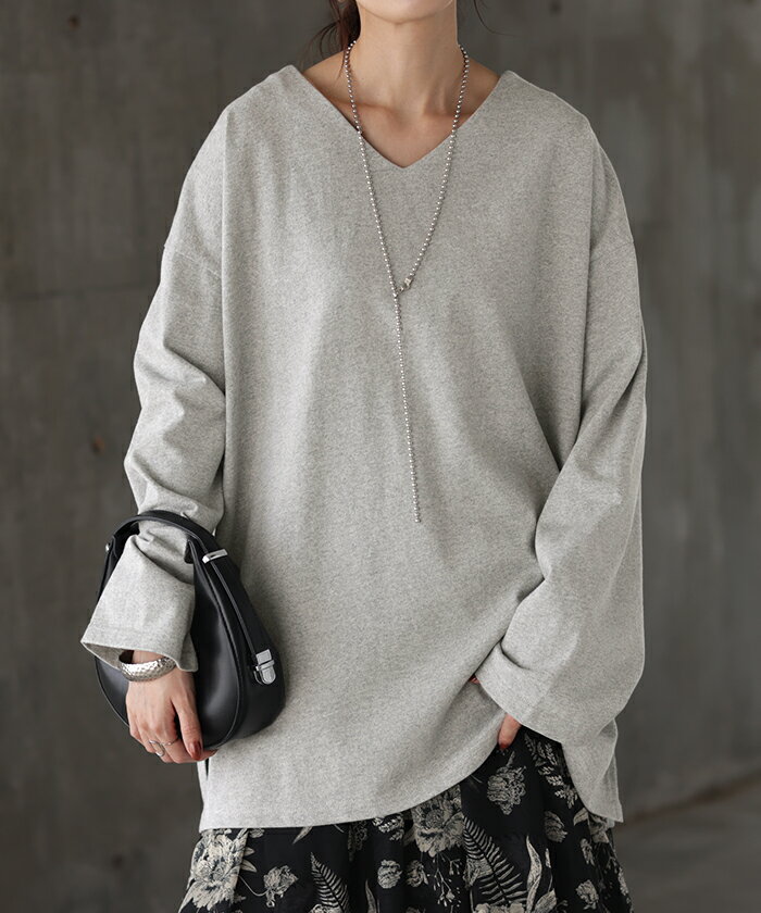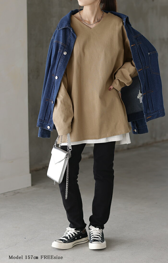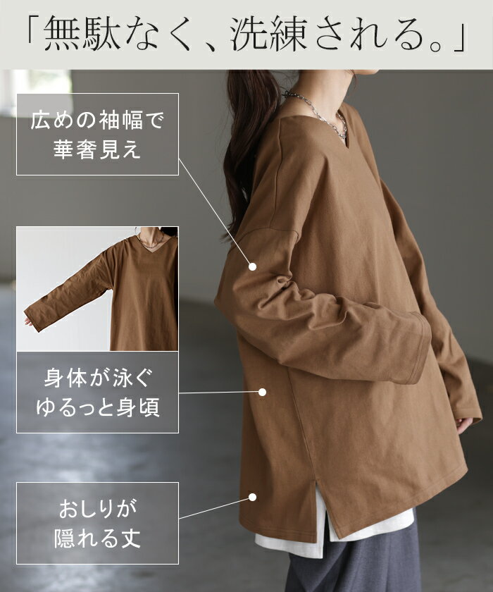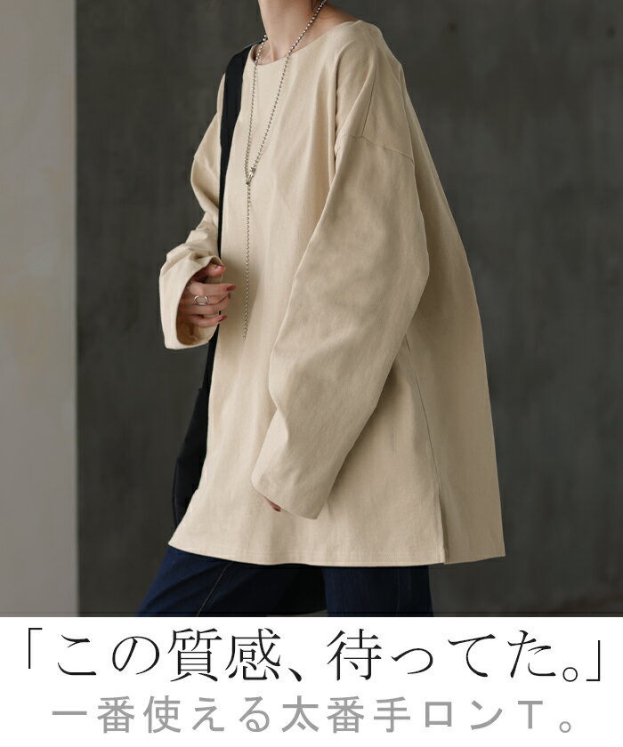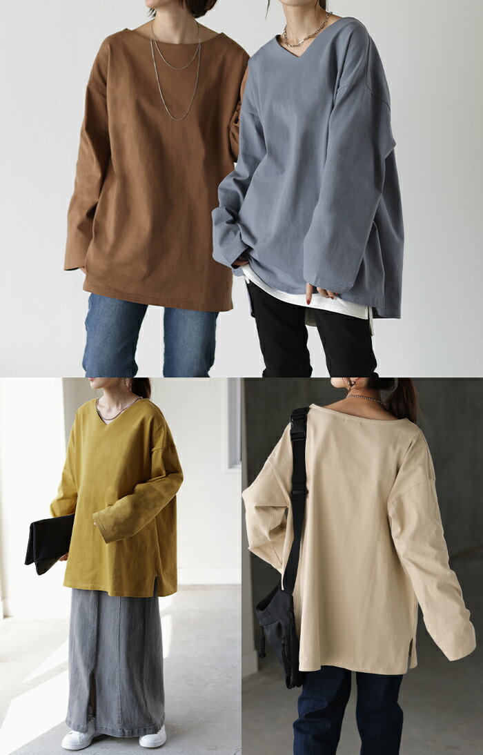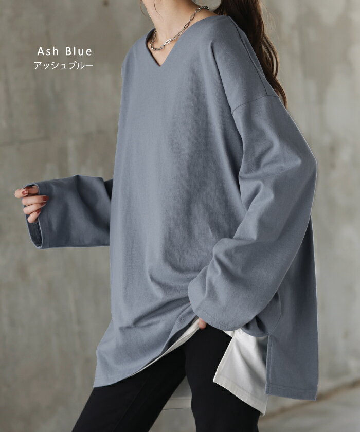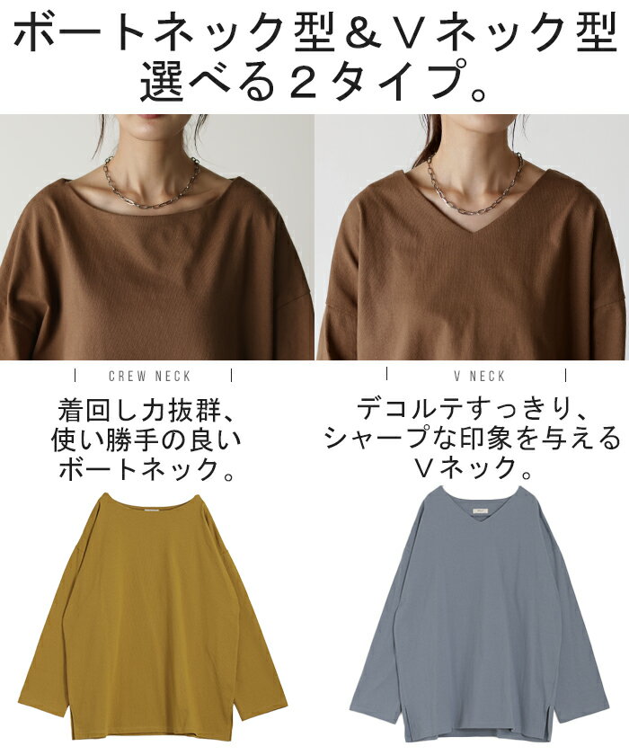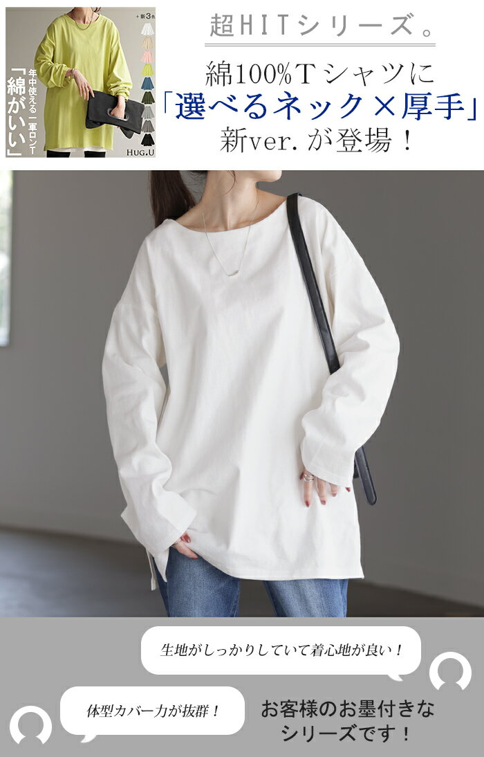 ロンT 選べる Uネック Vネック 綿100% 【即納】 レディース トップス カットソー ティーシャツ 無地 長袖 Tシャツ ロング チュニック ビッグ ゆったり ドルマン 大きいサイズ 体型カバー お尻が隠れる きれいめ ベーシック 黒 白 秋 冬 HUG.U