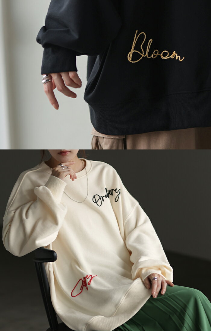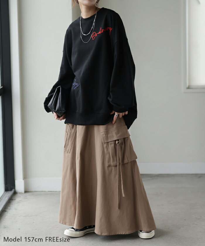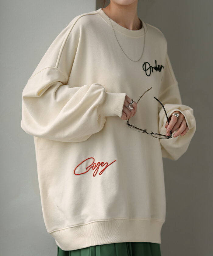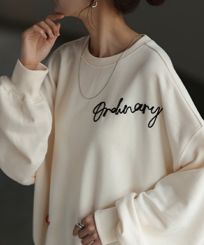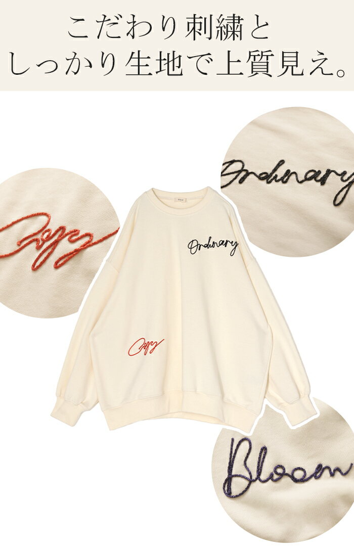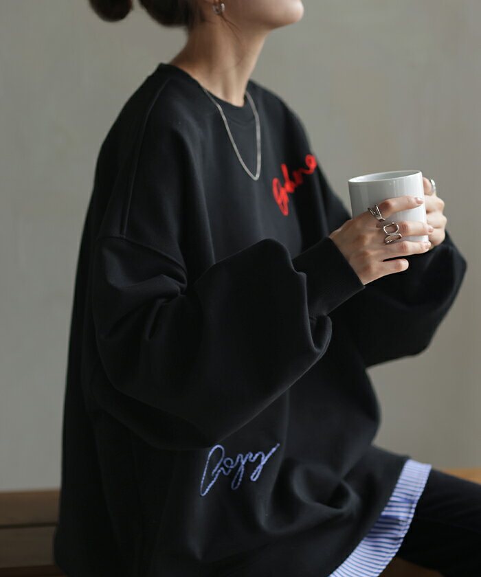 ロゴ 刺繍 スウェット レディース 【即納】 カジュアル レーナー トップス 体型カバー チュニック 大きいサイズ 無地 ドルマンスリーブ スエット プルオーバー ビッグ ロング ドロップショルダー ビッグシルエット ゆる ぽわん袖 長袖 黒 白 秋 冬 HUG.U