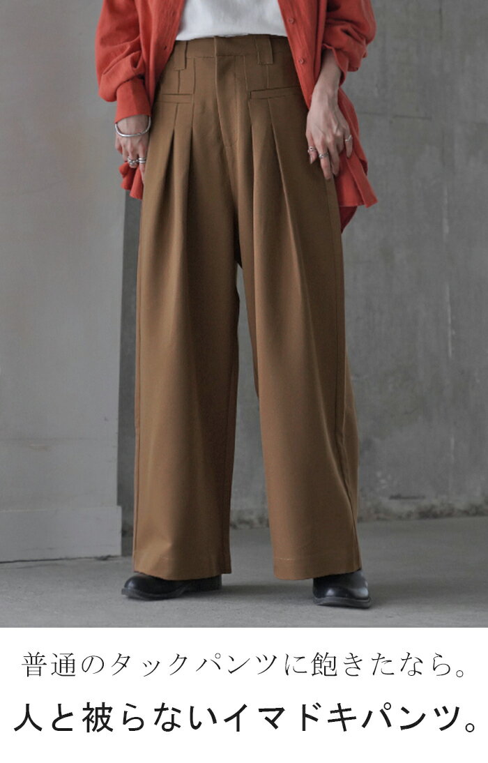 パンツ ワイド ボトムス 【即納】 レディース ボトムス ボトム ズボン ずぼん ワイドパンツ タック タックパンツ ゴム ウエストゴム ポケット ガウチョ バギー バギーパンツ ジップ zip 無地 大きいサイズ 体型カバー 大人 きれいめ 上品 黒 ブルー 秋 冬 HUG.U