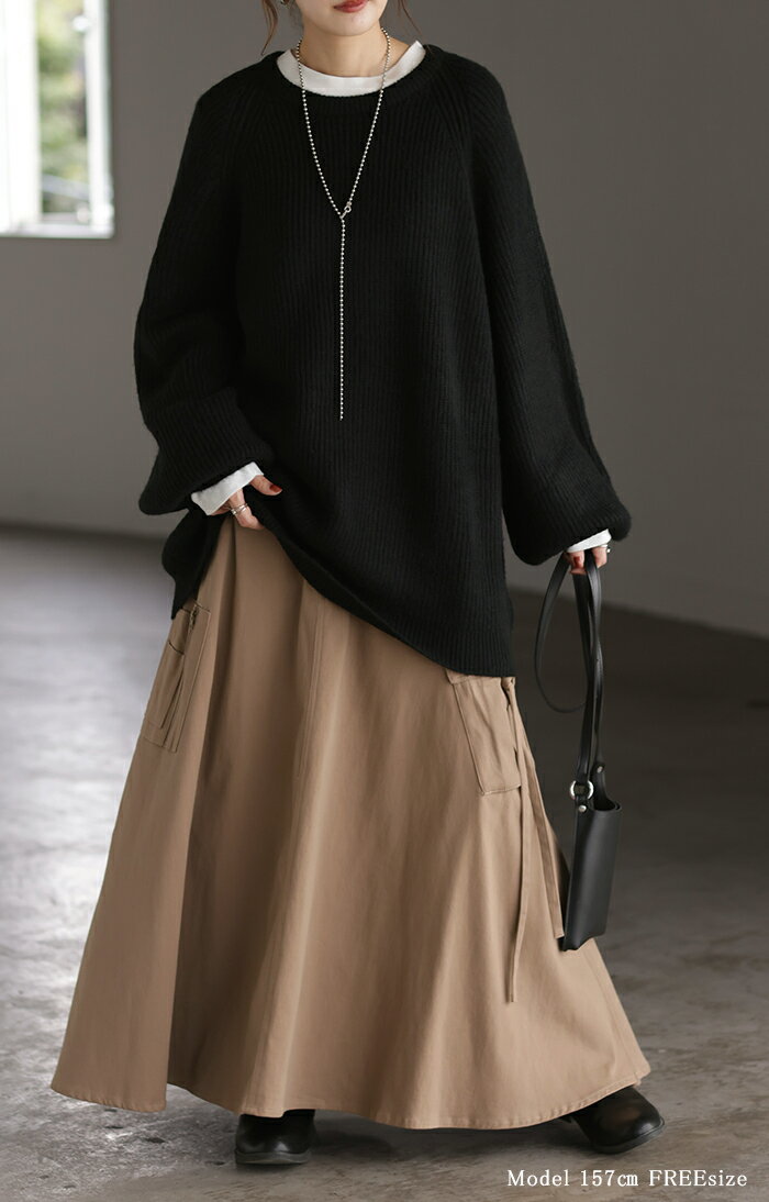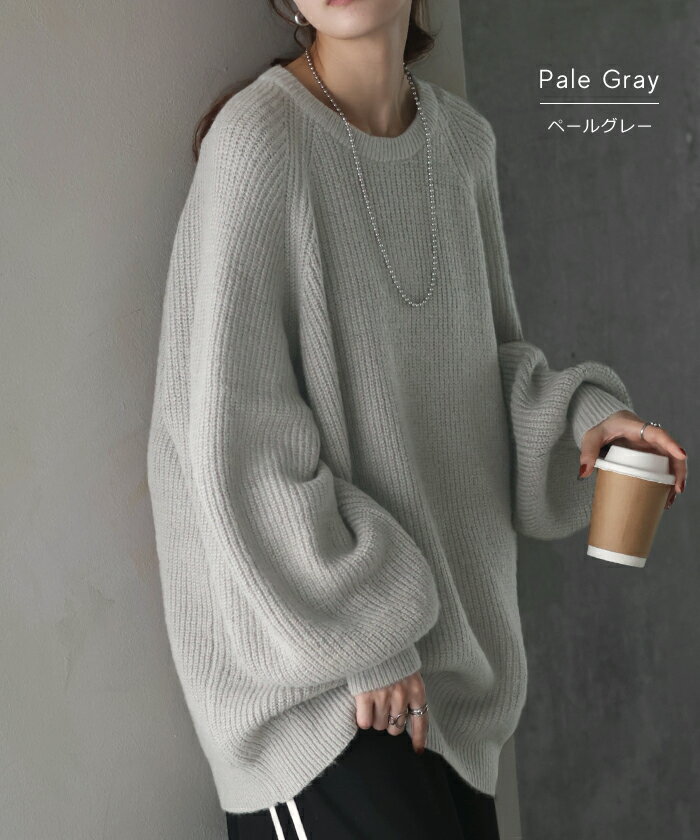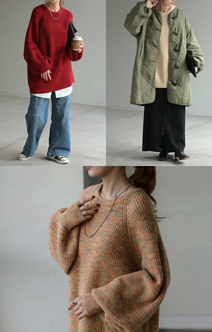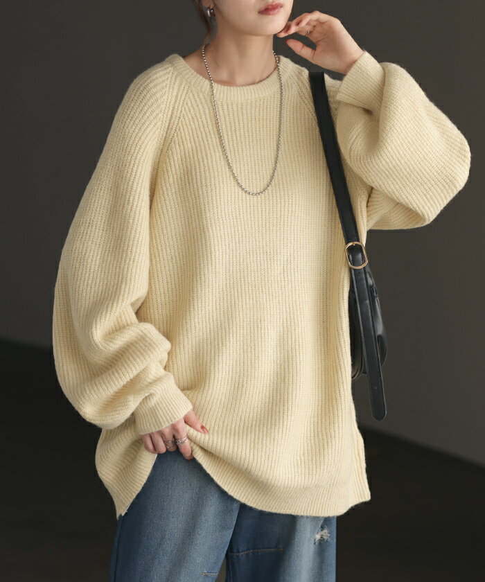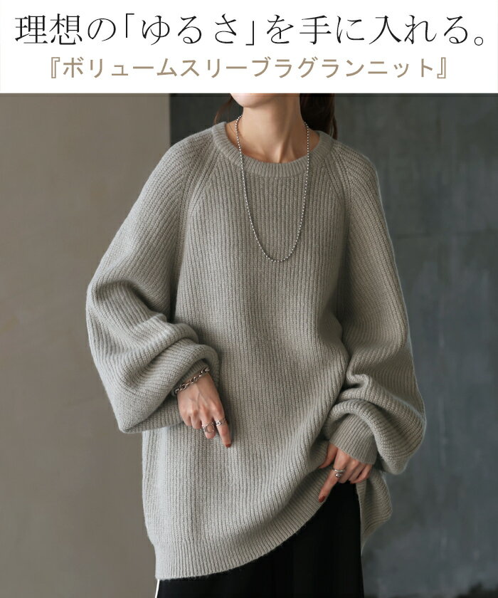 ニット ボリュームスリーブ ロング 【即納】 レディース トップス 長袖 無地 クルーネック ミックスカラー チュニック ロングニット お尻が隠れる チクチクしない セーター プルオーバー ドルマン ゆったり 大きいサイズ 体型カバー 赤 黒 秋 冬 HUG.U
