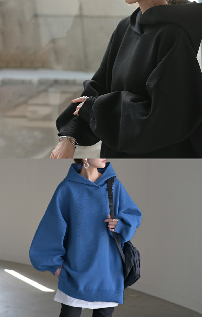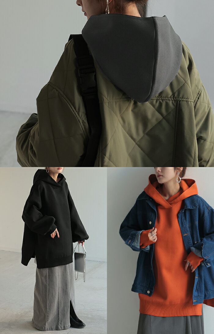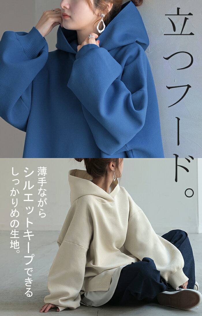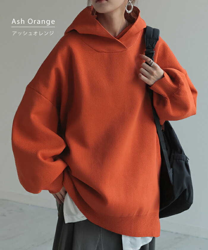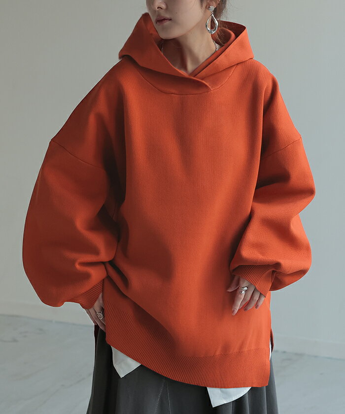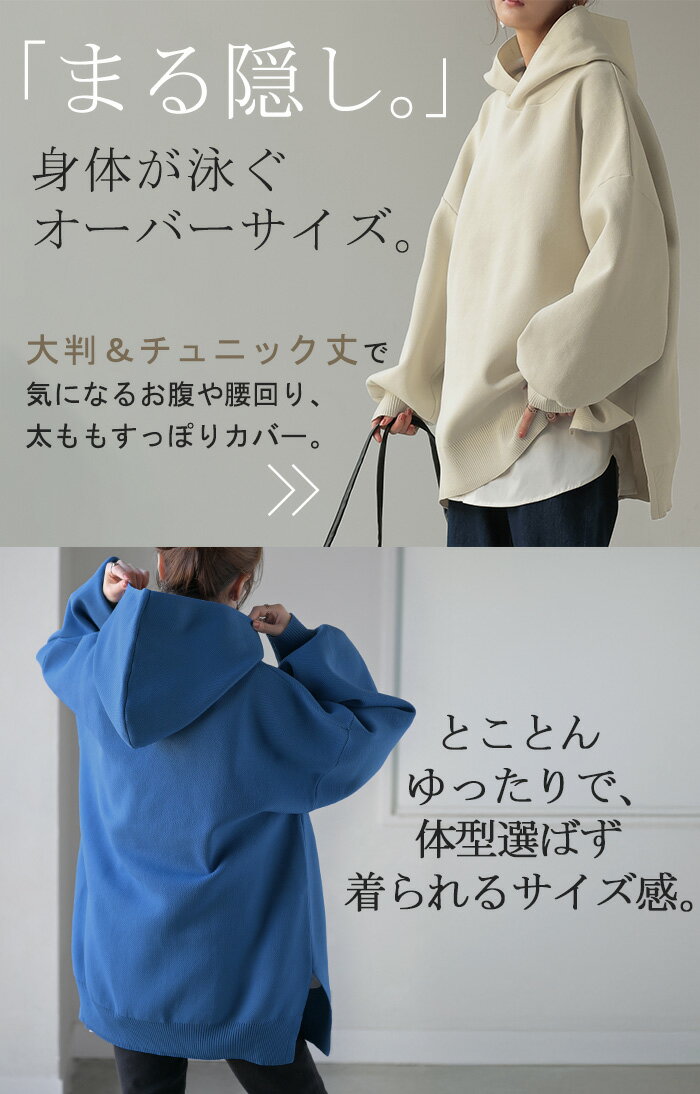パーカー スポンジニット ニットパーカー ■1月上旬入荷 ニット スポーティー レディース ライトアウター トップス プルオーバー フード フーディー ビッグ ドルマン ゆったり オーバーサイズ チュニック 体型カバー 大きいサイズ お尻が隠れる 黒 秋 冬 HUG.U