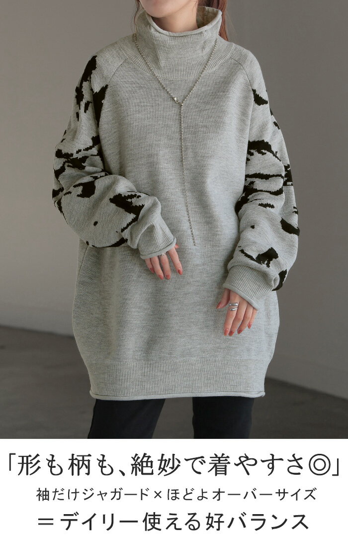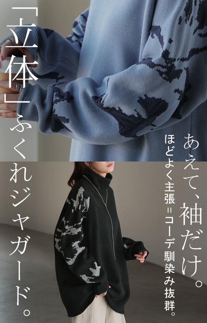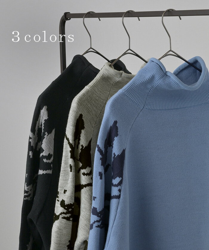 ニット ジャガード 花柄 ■一部1月中旬入荷 レディース トップス セーター ロング ロングニット リブ お尻が隠れる 無地 長袖 タートルネック ドルマンスリーブ オーバー チクチクしない ラグラン 体型カバー 大きいサイズ モード きれいめ 黒 ブルー 秋 冬 HUG.U