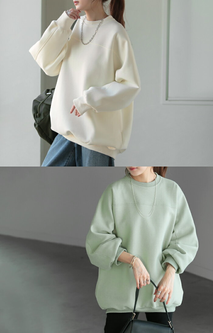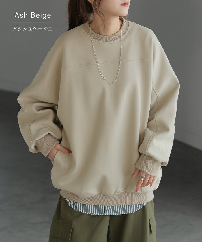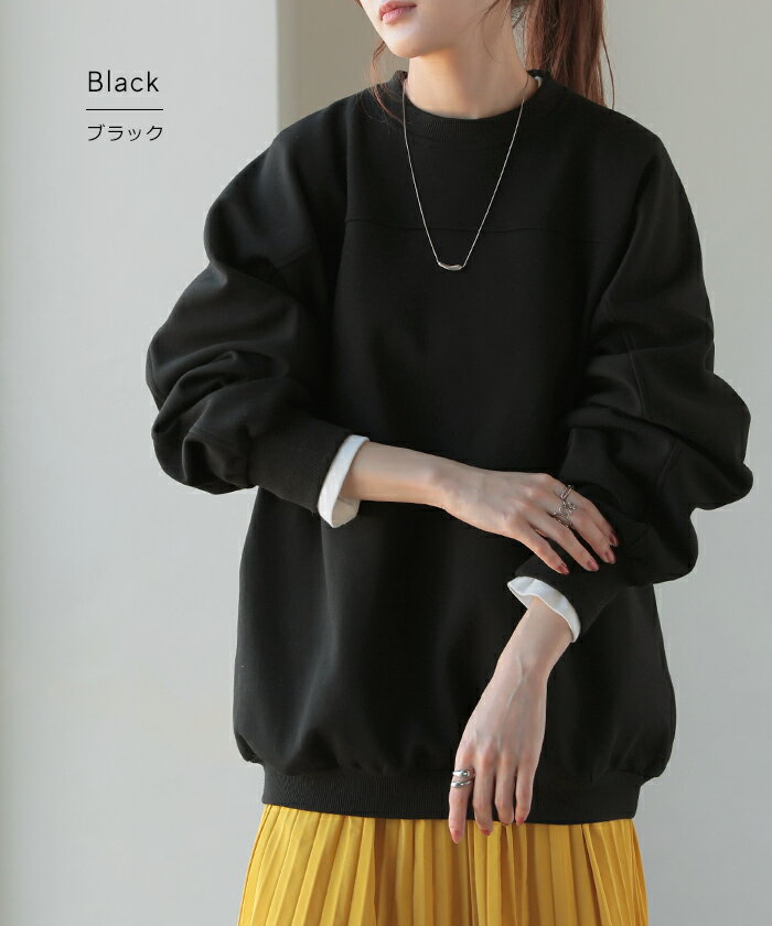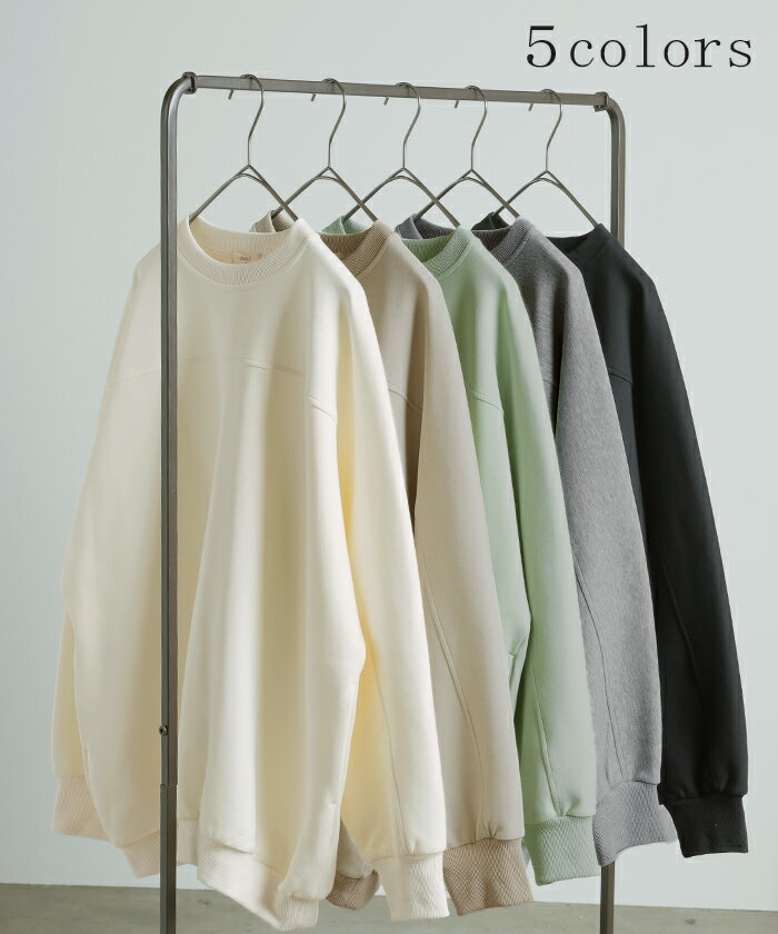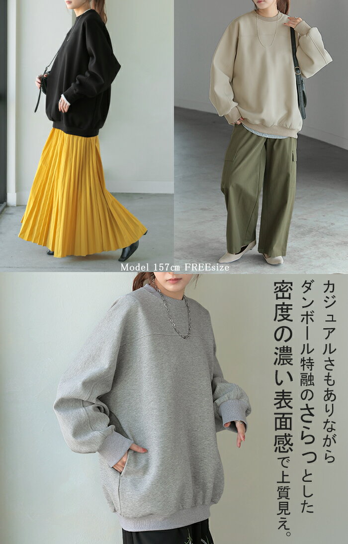 クーポンで10%OFF スウェット ダンボール プルオーバー 【即納】 レディース トップス ロング トレーナー オーバー シワになりにくい 無地 長袖 ドルマン クルーネック リブ チュニック オーバーサイズ ゆったり 体型カバー 大きいサイズ 黒 グリーン 秋 冬 HUG.U