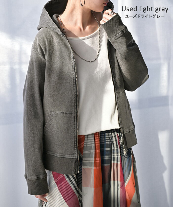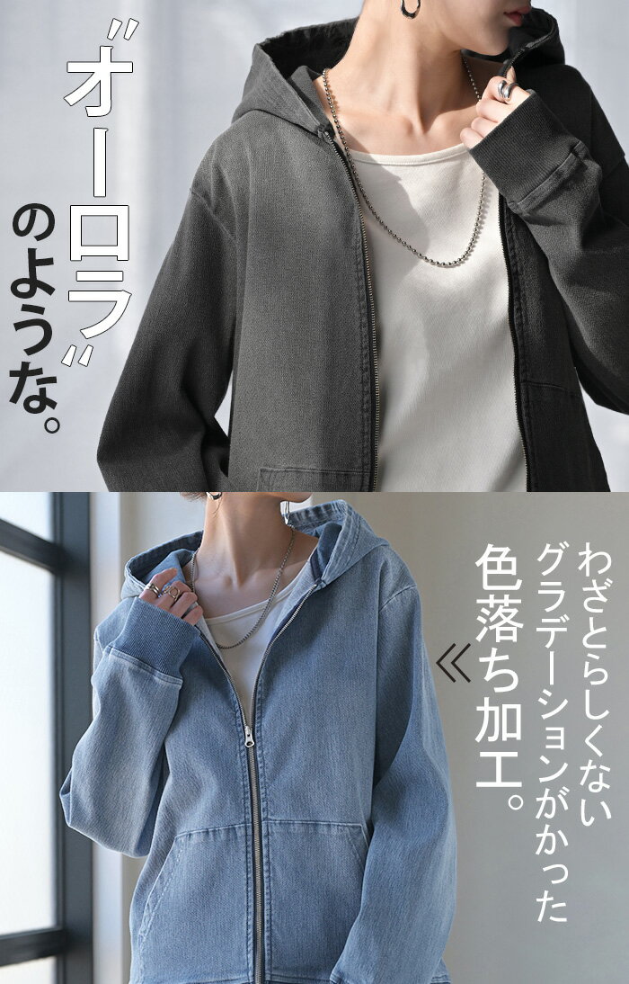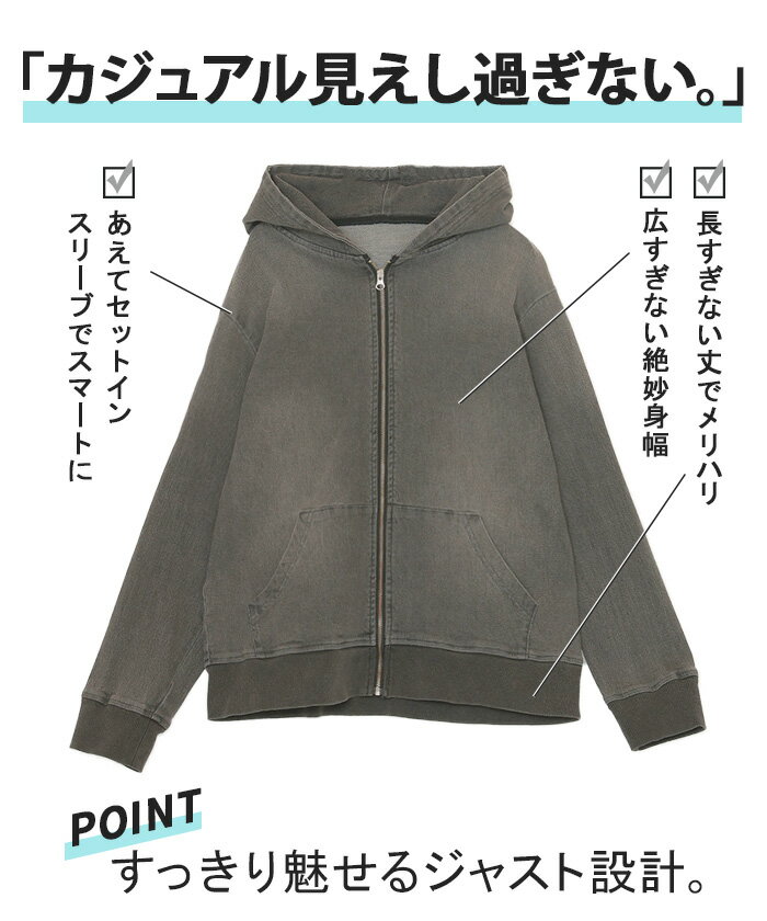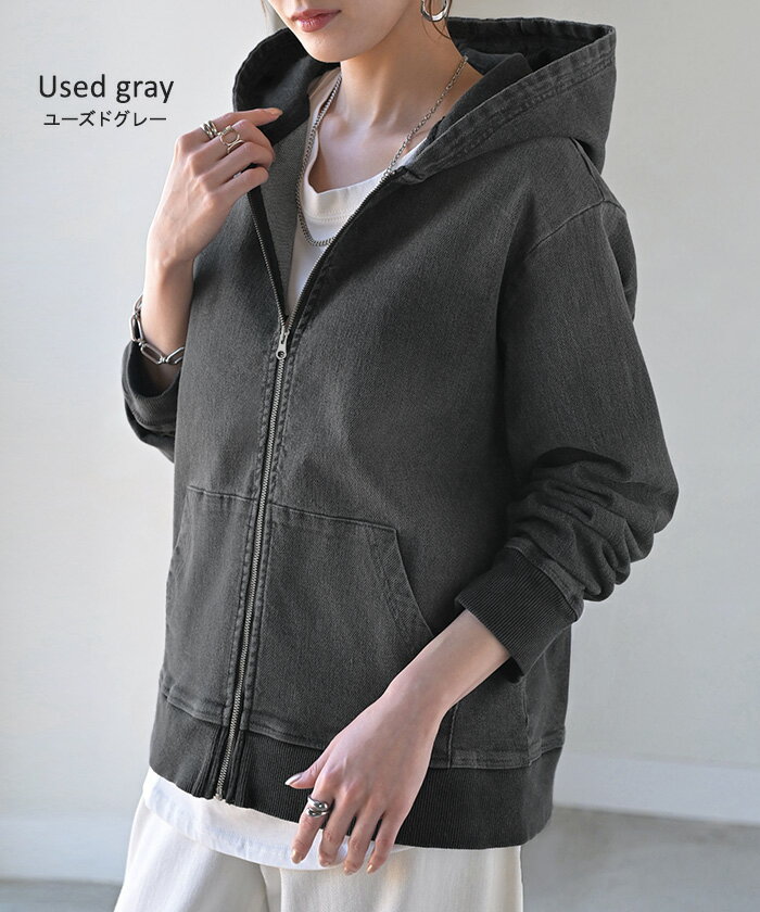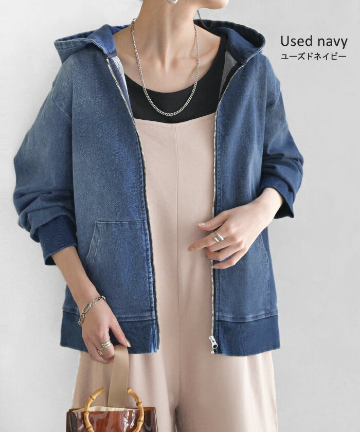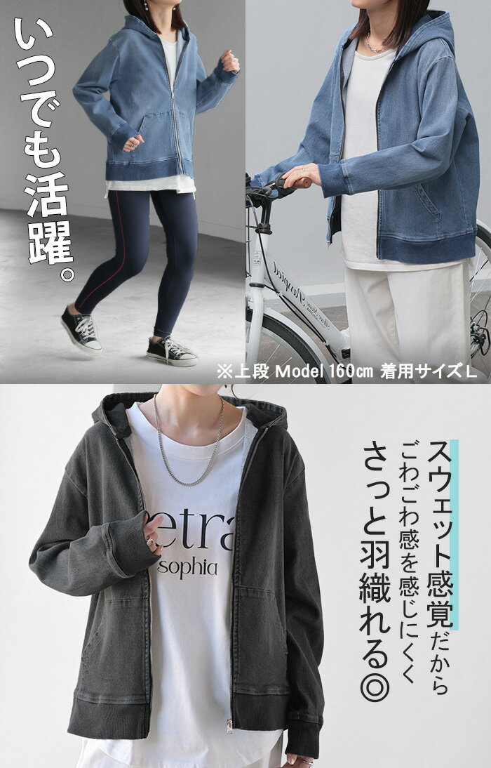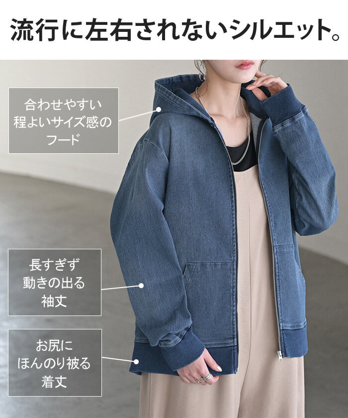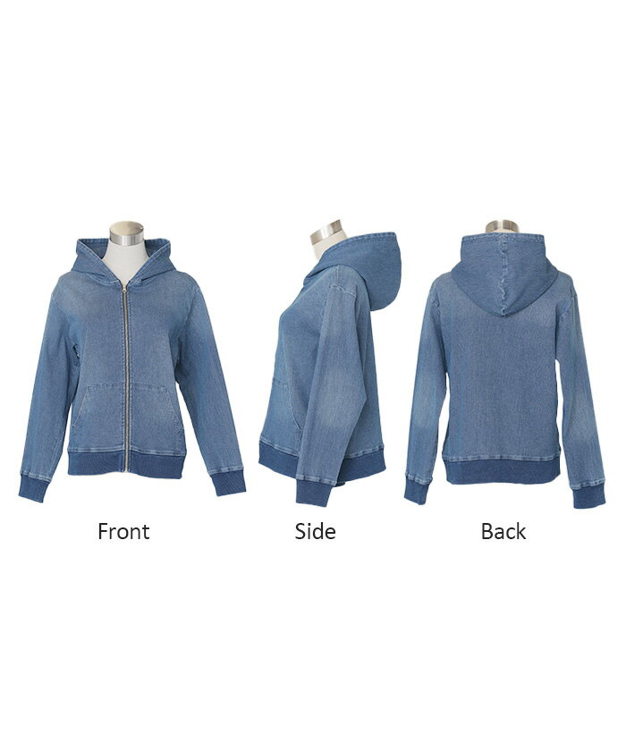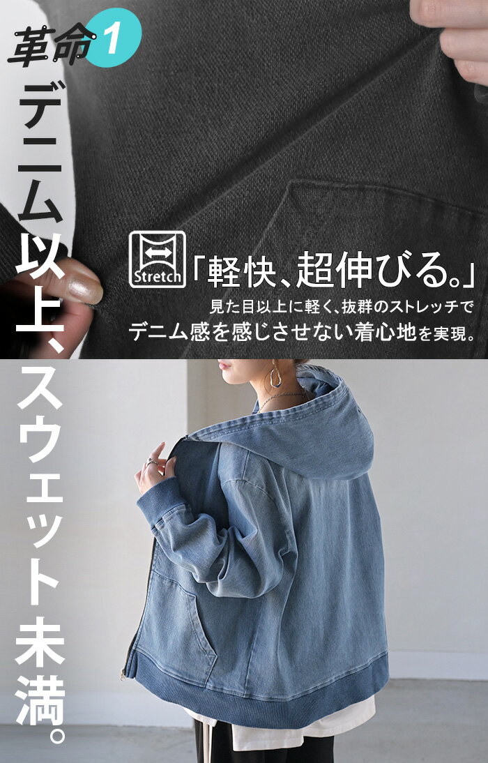早割クーポン有 パーカー 「 革命 デニム 」 デニムパーカー 【即納】 スポーティー アウター レディース ストレッチ ライトアウター トップス トレーナー 長袖 無地 フード フーディー ビッグ リブ ゆったり 羽織 体型カバー 大きいサイズ ブルー グレー 春 冬 HUG.U