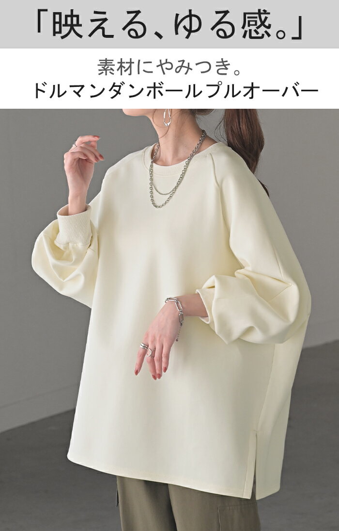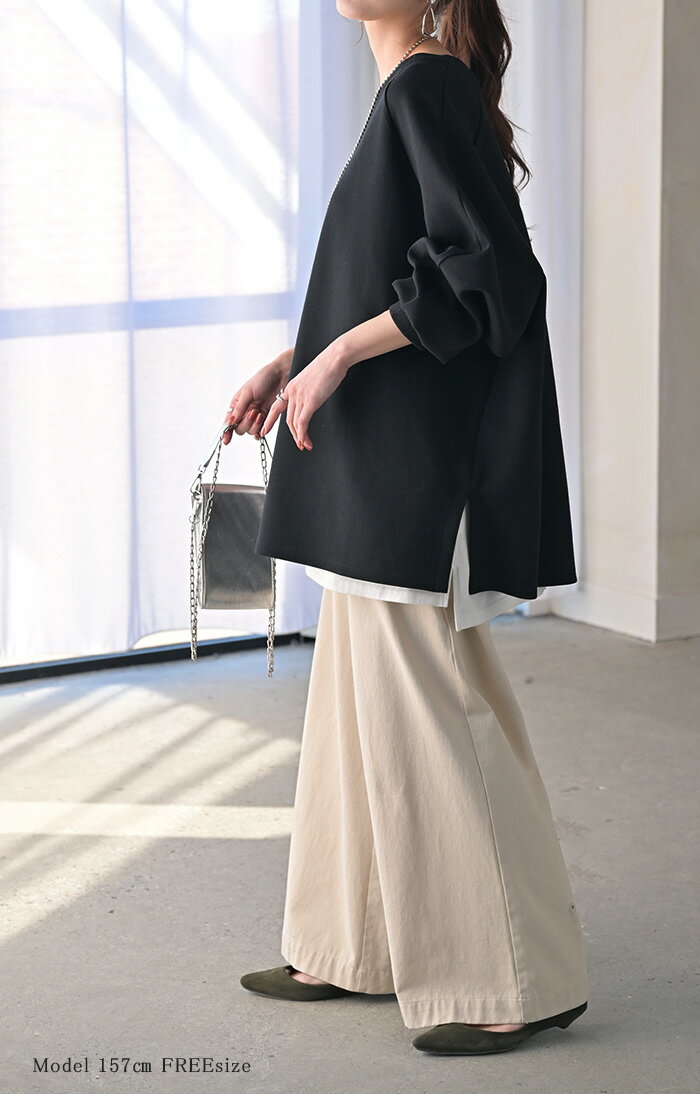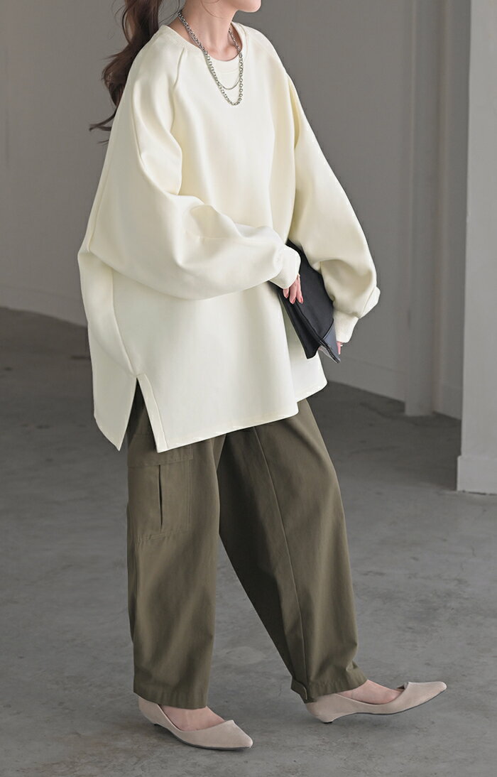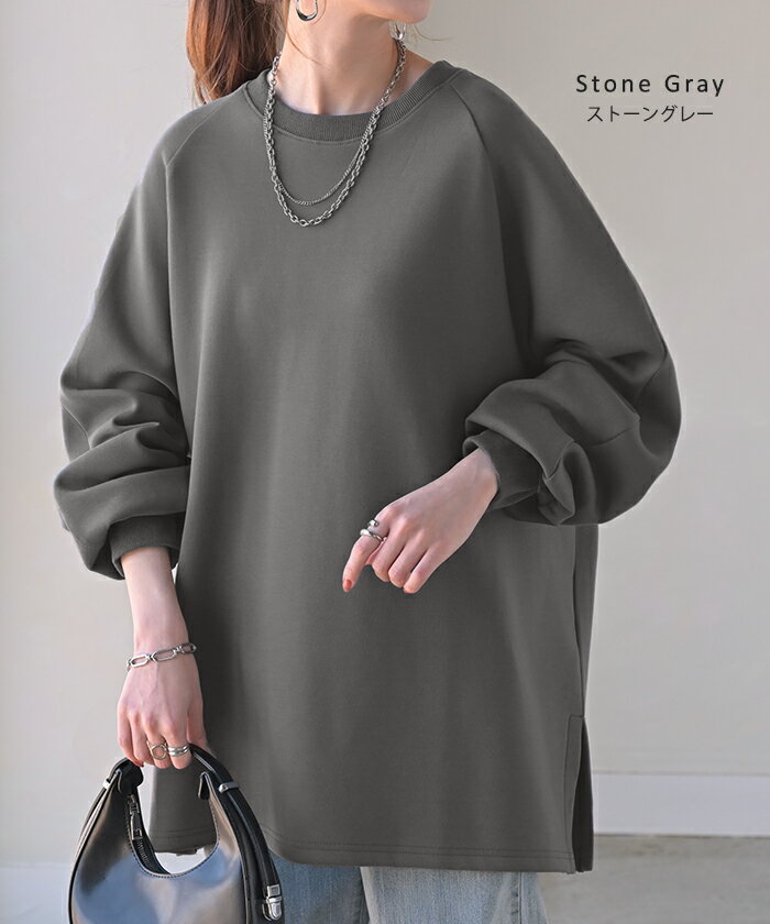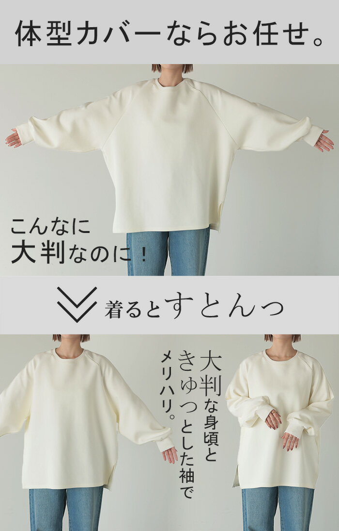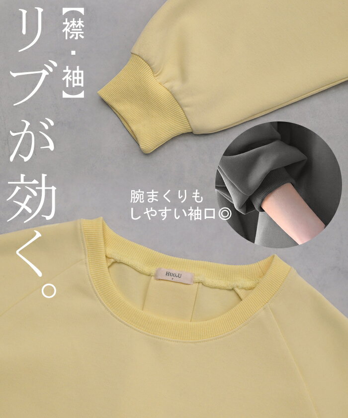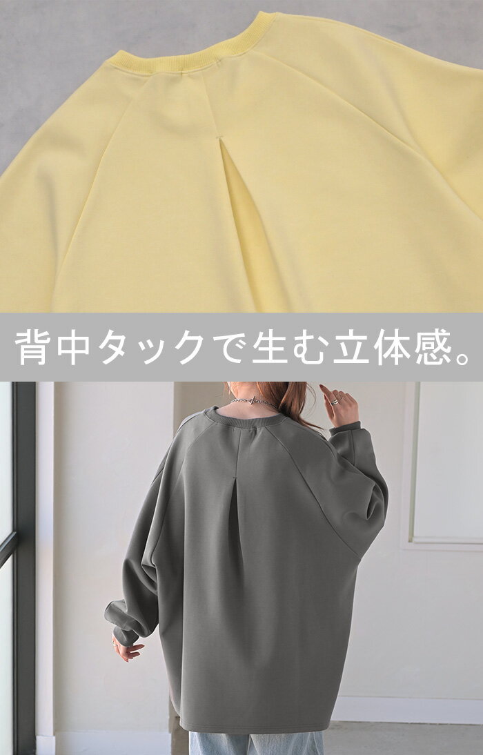 スウェット ダンボール チュニック 【即納】 シワになりにくい トップス レディース トレーナー プルオーバー 無地 長袖 長い ドルマン クルーネック ボリュームスリーブ オーバーサイズ 体型カバー 大きいサイズ お尻が隠れる 黒 イエロー 春 冬 HUG.U