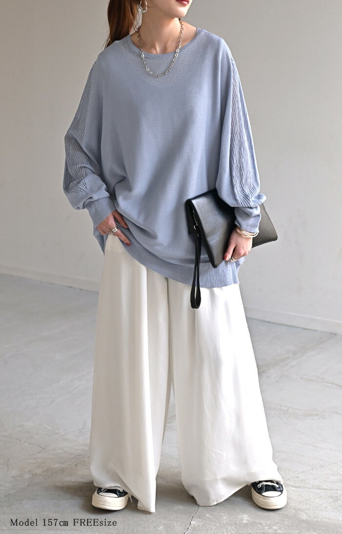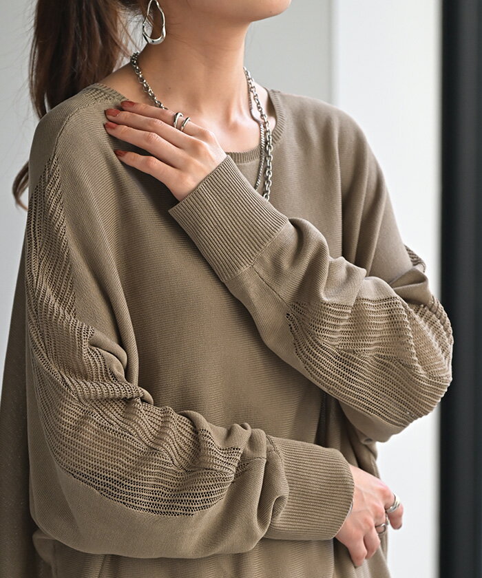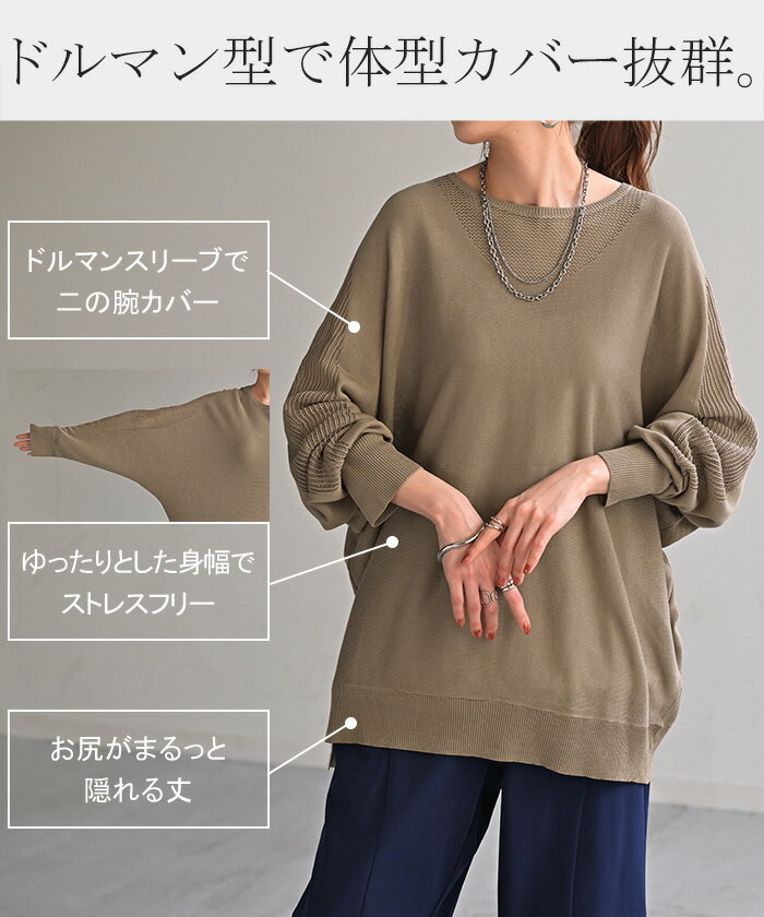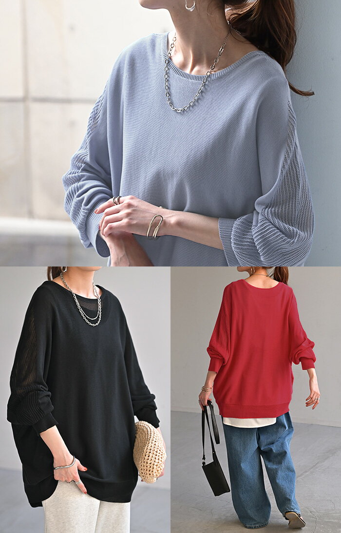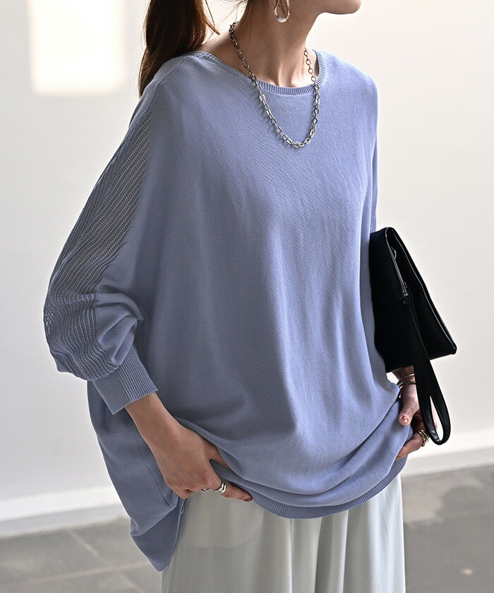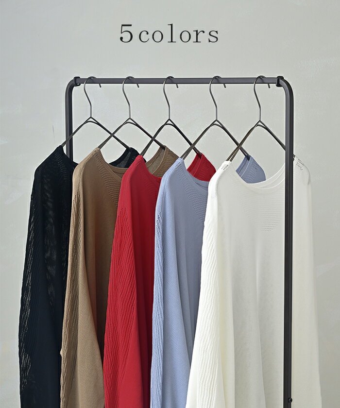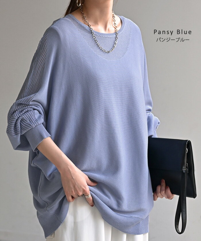 ニット 前後2WAY サマーニット 【即納】 レディース トップス セーター オーバー 透かし編み 涼しい メッシュ プルオーバー ロング 長袖 長い レイヤード 薄手 シアー チュニック ドルマン ゆったり 大きいサイズ 体型カバー お尻が隠れる 黒 春 夏 HUG.U