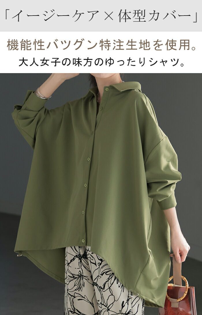 シャツ チュニック ロング 【即納】 レディース トップス ロングシャツ ブラウス ロングブラウス Vネック 長袖 無地 ドロスト ゆったり シンプル 大きいサイズ 体型カバー 前開き お尻が隠れる きれいめ 通勤 オフィスカジュアル 上品 黒 白 春 夏 HUG.U